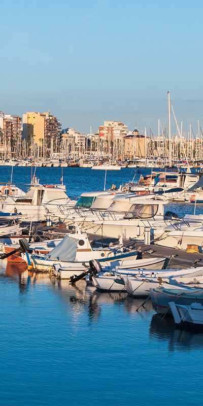 Torreviejas hamn ligger i hjärtat av staden och utgör en del av en av de mest charmiga platserna för att ta en promenad vid havet.