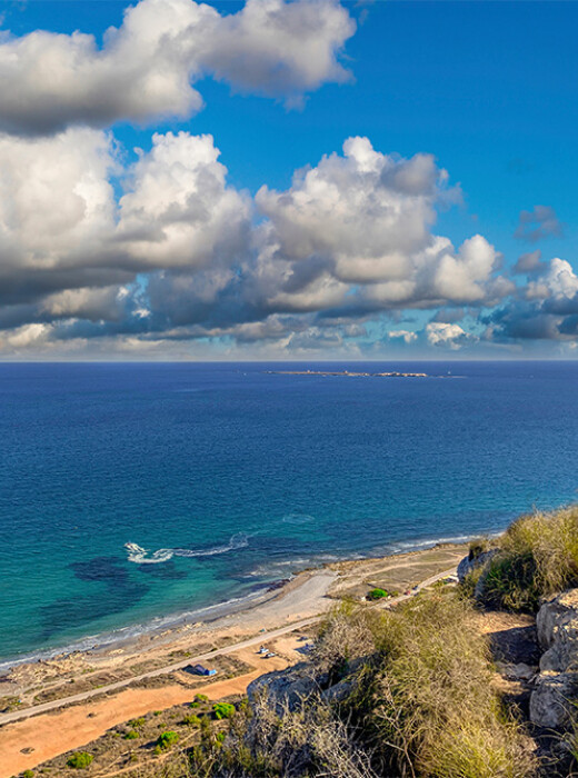 Om du har tur och det inte finns något molntäcke kan du till och med se Cape Cervera och Isla Grosa i söder och Peñón de Ifach, som ligger i Calpe, i öster.