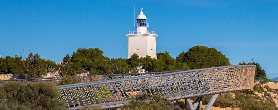 Fyren i Santa Pola ligger på udden med samma namn, på 1500-talets vakttorn som kallas Atalaya. Tack vare sitt läge, på toppen av en klippa, kan du njuta av panoramautsikt över hela Santa Pola-bukten, Alicante och till och med ön Tabarca.