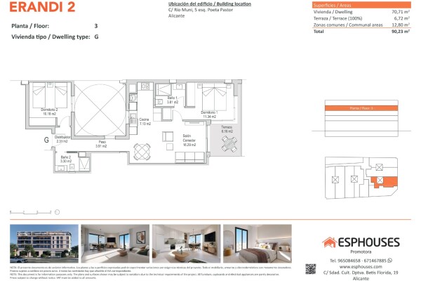 Denna nybyggda lägenhet på tredje våningen i Edificio ERANDI 2 har en modern och funktionell design med utmärkt söderläge som ger naturligt ljus hela dagen. Den är belägen i La Florida, ett av Alicantes mest emblematiska och välförbundna områden.