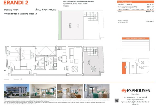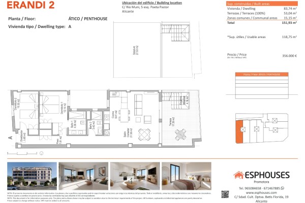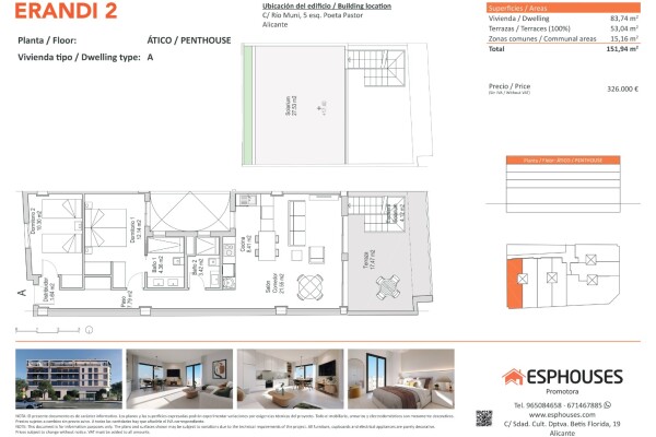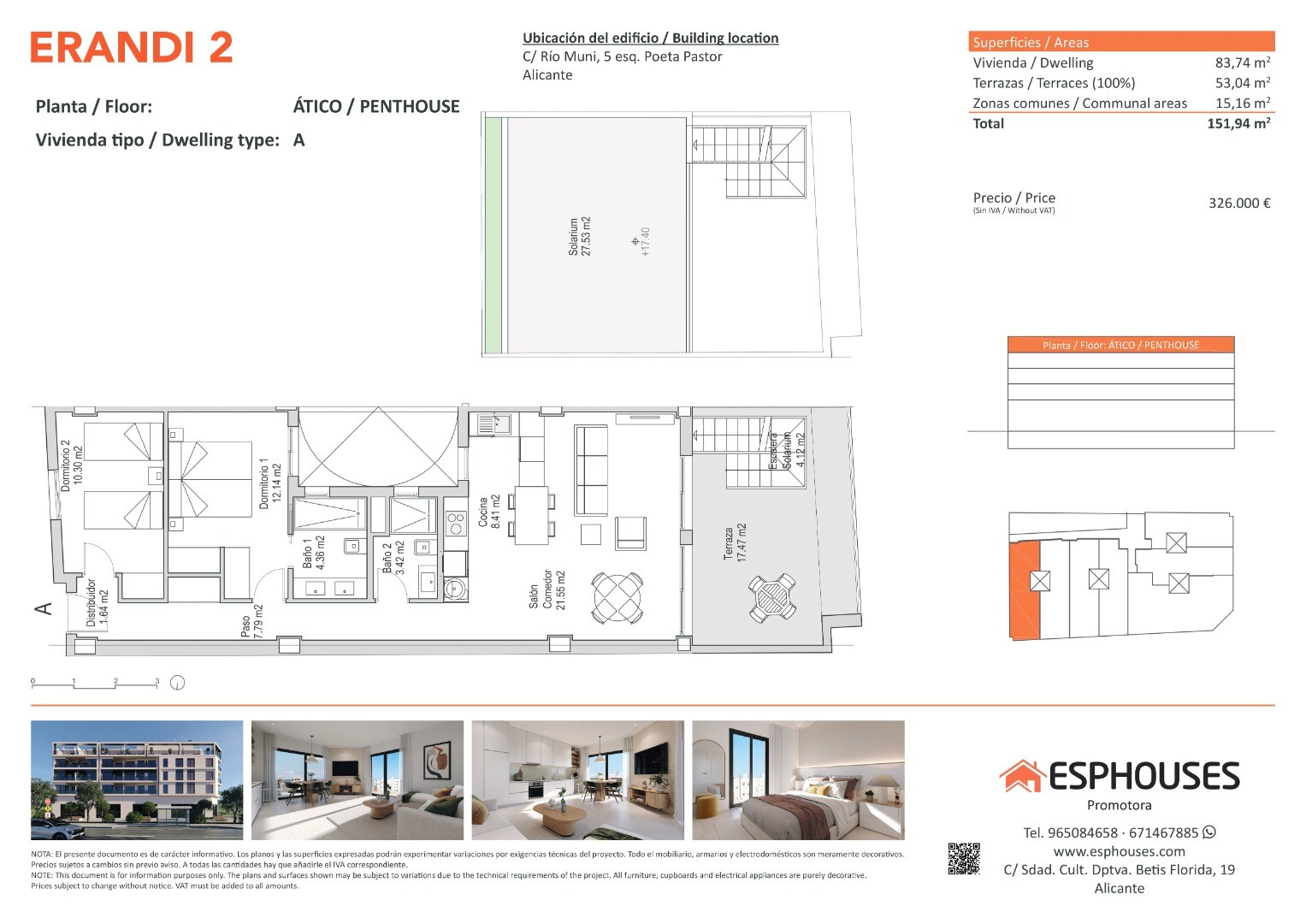 Denna exklusiva nybyggda penthouse ligger på fjärde våningen i byggnaden ERANDI 2 och utmärker sig med sina rymliga utomhusytor och västläge – perfekt för att njuta av eftermiddagssolen. Bostaden har en boyta på 85,52 m² och består av två sovrum med inbyggda garderober, två badrum samt ett ljust vardagsrum med matplats och ett öppet modernt kök.