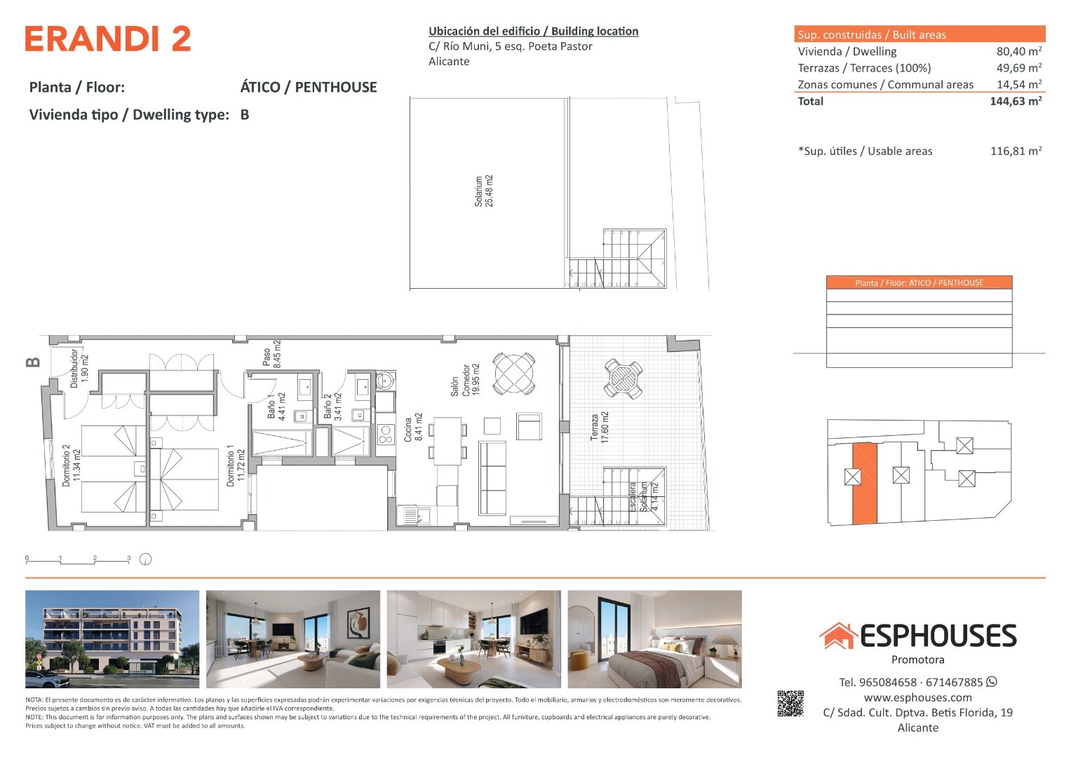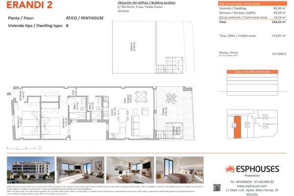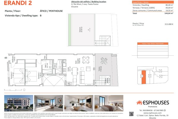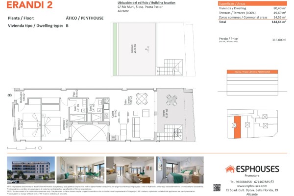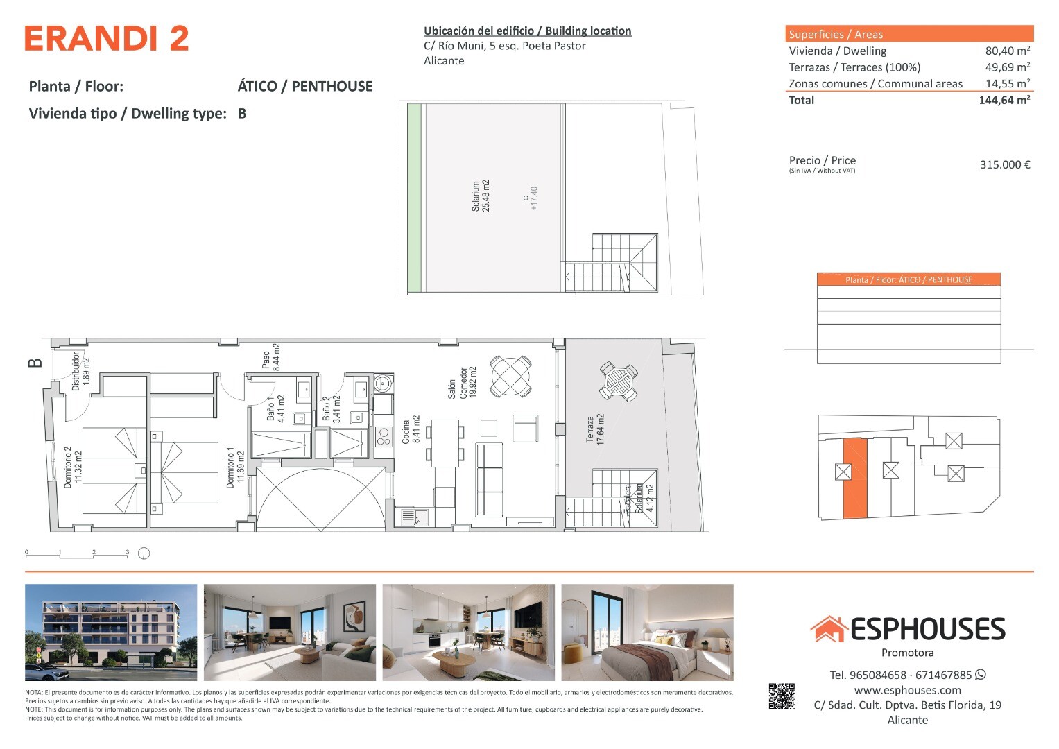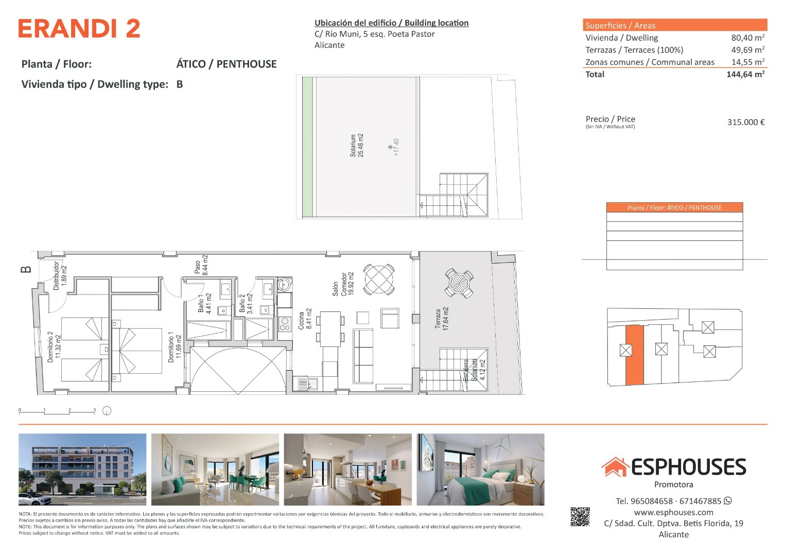 Upptäck denna fantastiska nyproducerade takvåning på fjärde våningen i byggnaden ERANDI 2 – en unik möjlighet att bo med stil och njuta av det medelhavsklimatet. Bostaden har en boyta på 80,40 m² och består av två sovrum med inbyggda garderober, två badrum samt ett rymligt vardagsrum med öppen planlösning och modernt kök.