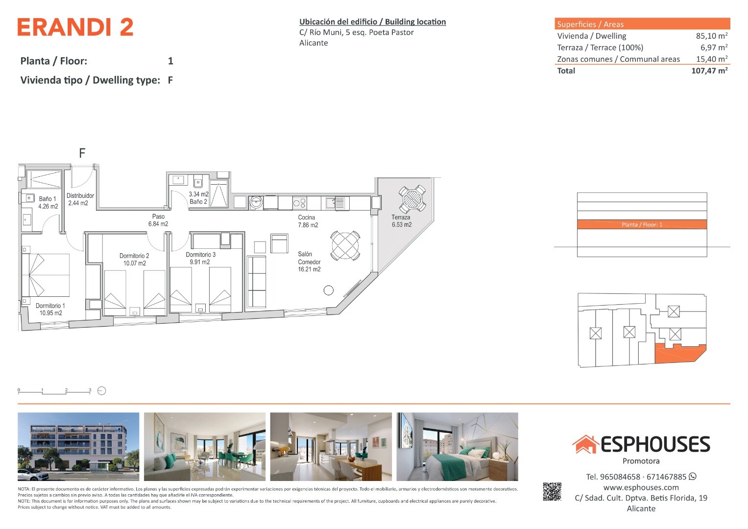 Belägen i det välkända och välförbundna området La Florida i Alicante, endast några minuter från köpcentret Puerta de Alicante, 10–15 minuter med kollektivtrafik till stadens centrum, bara 2 km till stranden och 12 km till flygplatsen. Ett utmärkt val för både boende och investering.