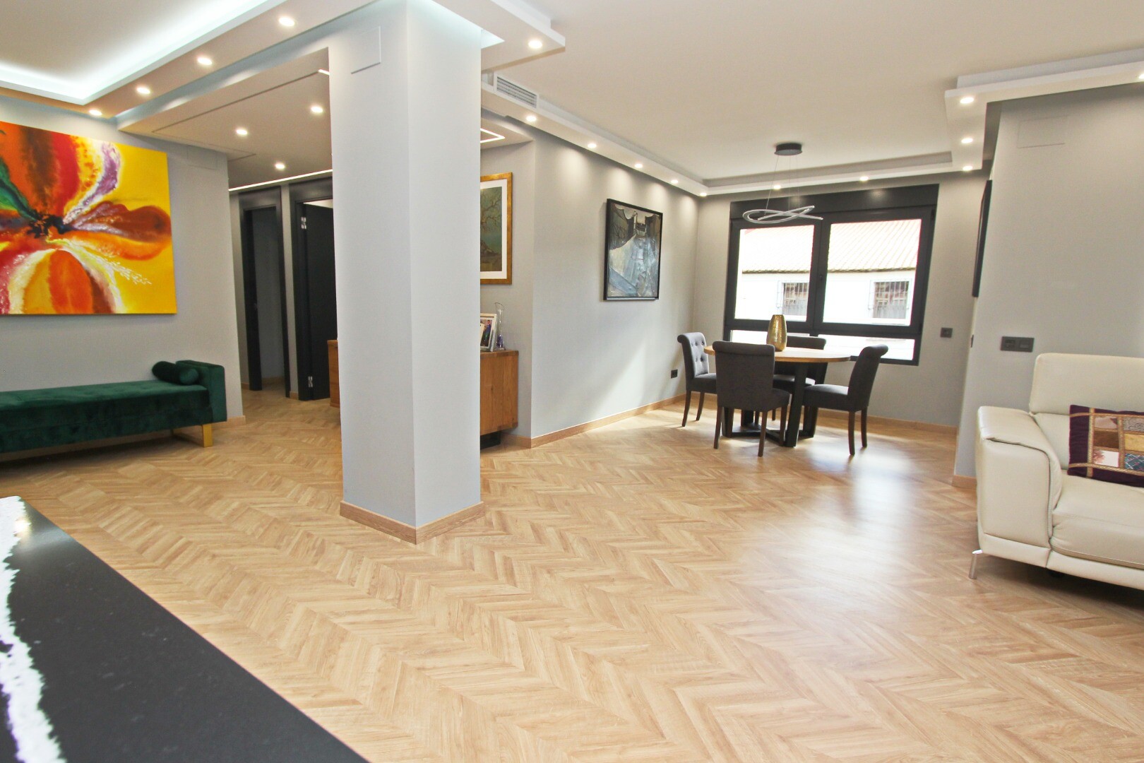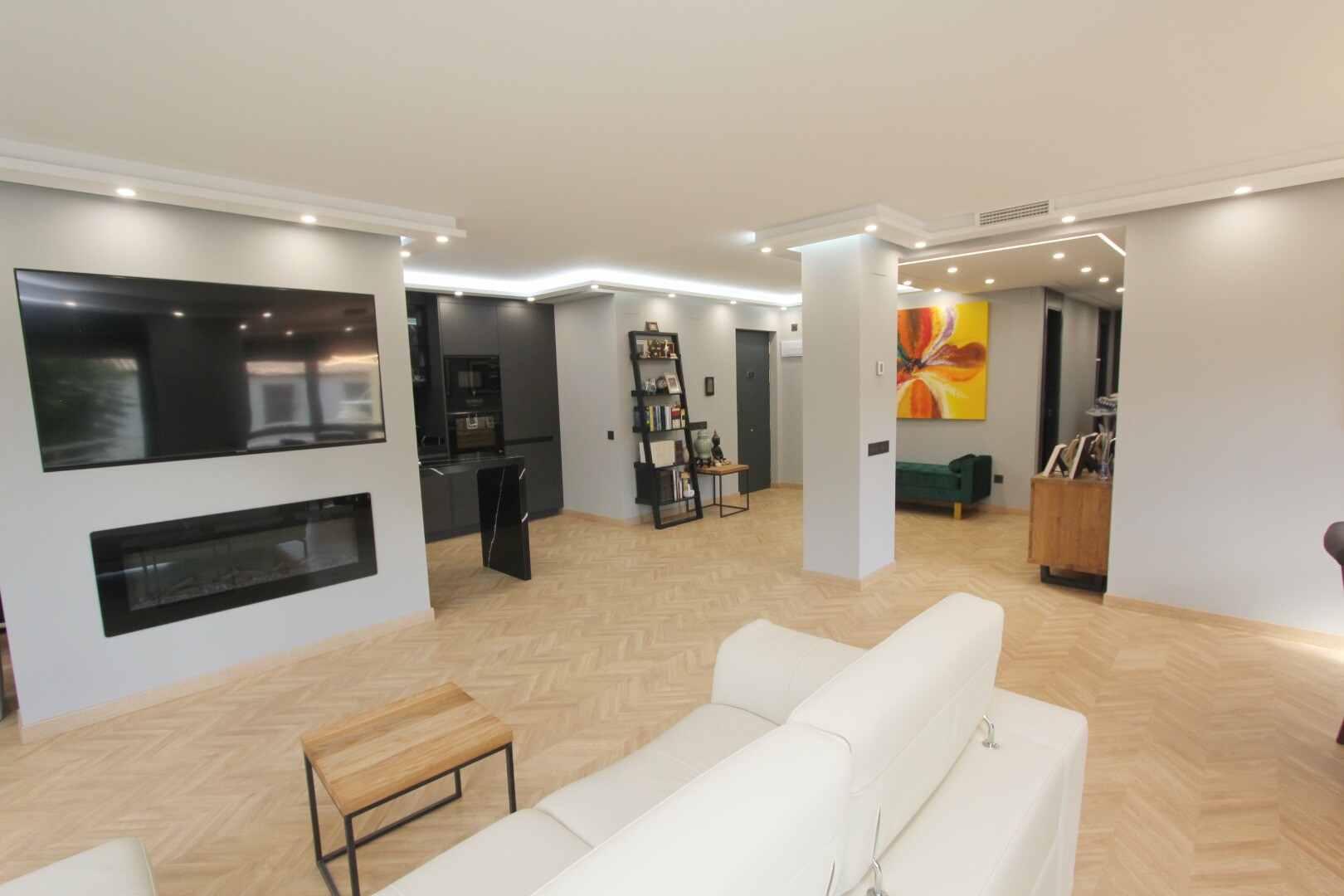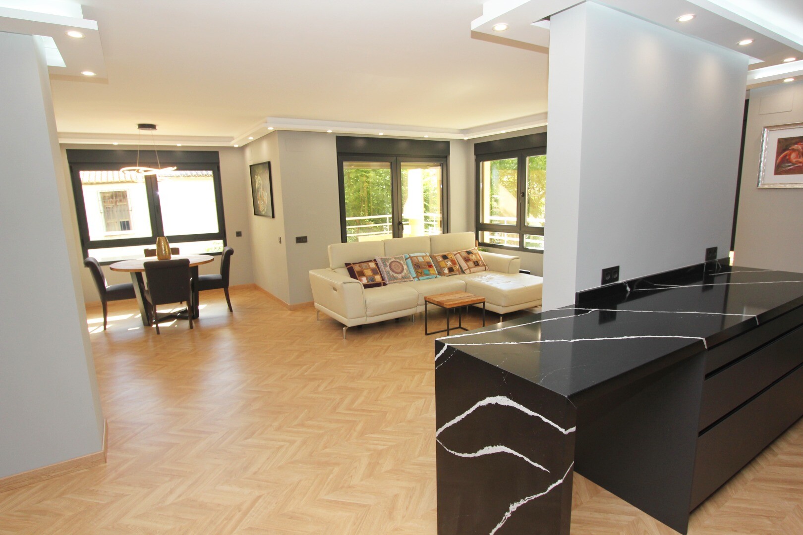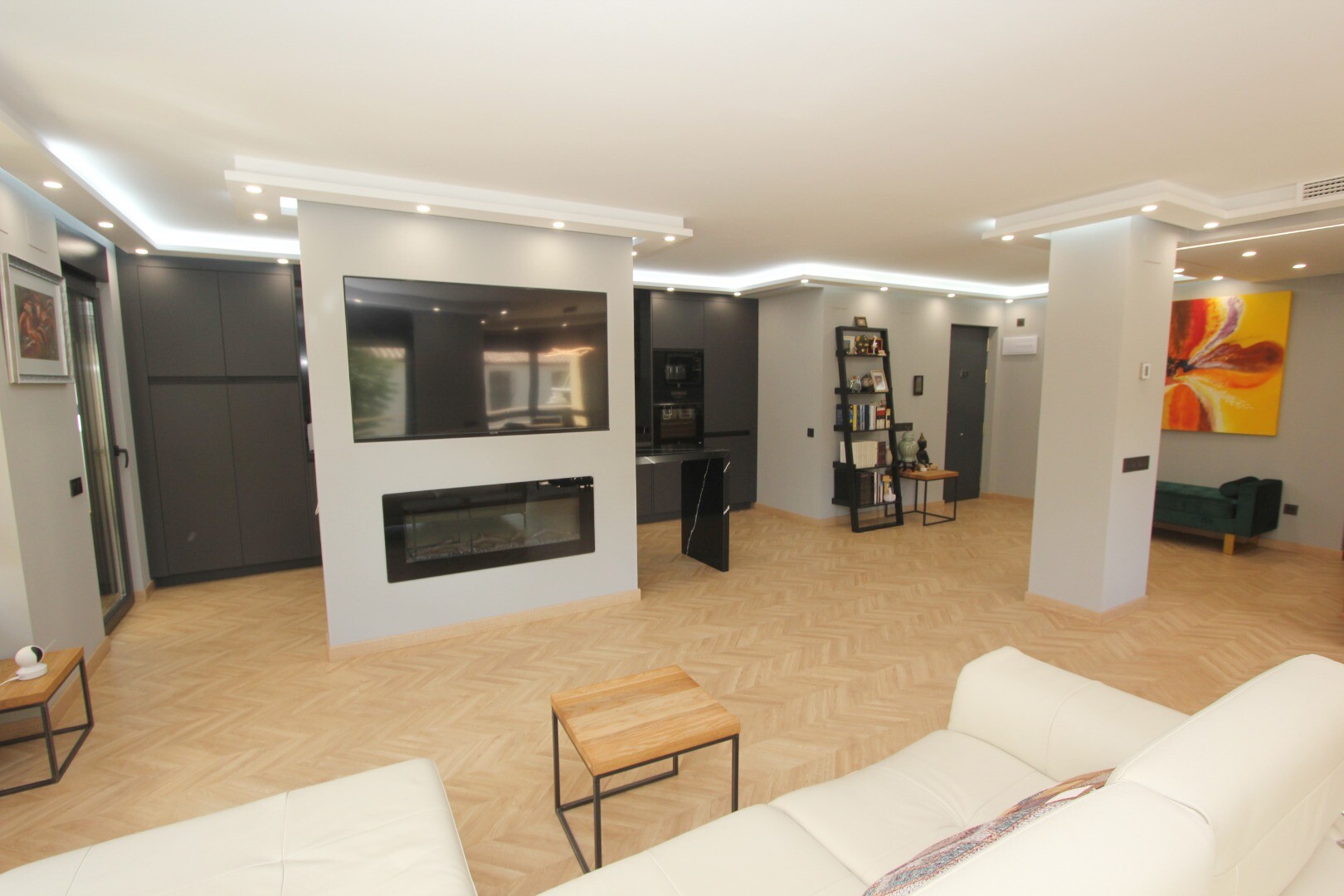 Den här fastigheten har blivit kärleksfullt och noggrant renoverad, inklusive alla nya installationer av el, VVS och luftkonditioneringssystem. Den inre fastigheten är helt ny i alla aspekter; Träparkettgolv, exklusiva ...dörrar och fönster, lyxigt designkök med bänkskivor i marmor och ö, mediavägg med öppen spis, fullt utrustade badrum och en stor klädkammare (fjärde sovrummet) är bara några av de många funktionerna i denna imponerande lägenhet.