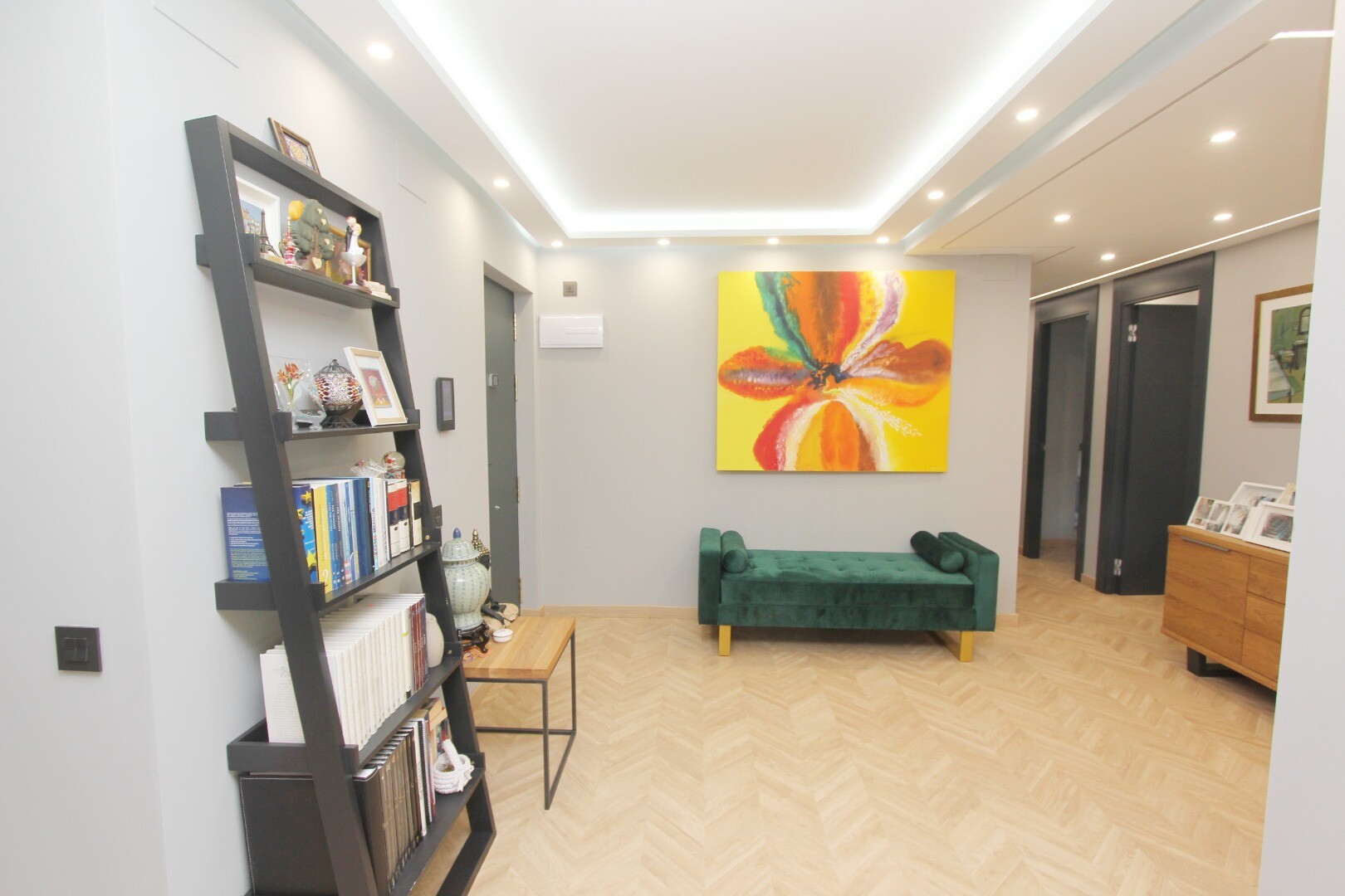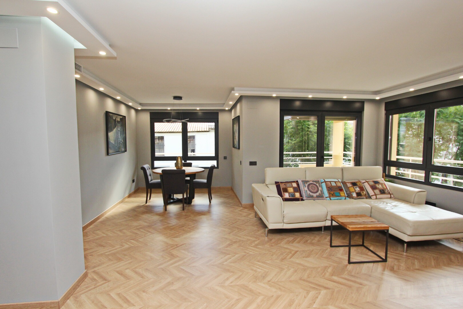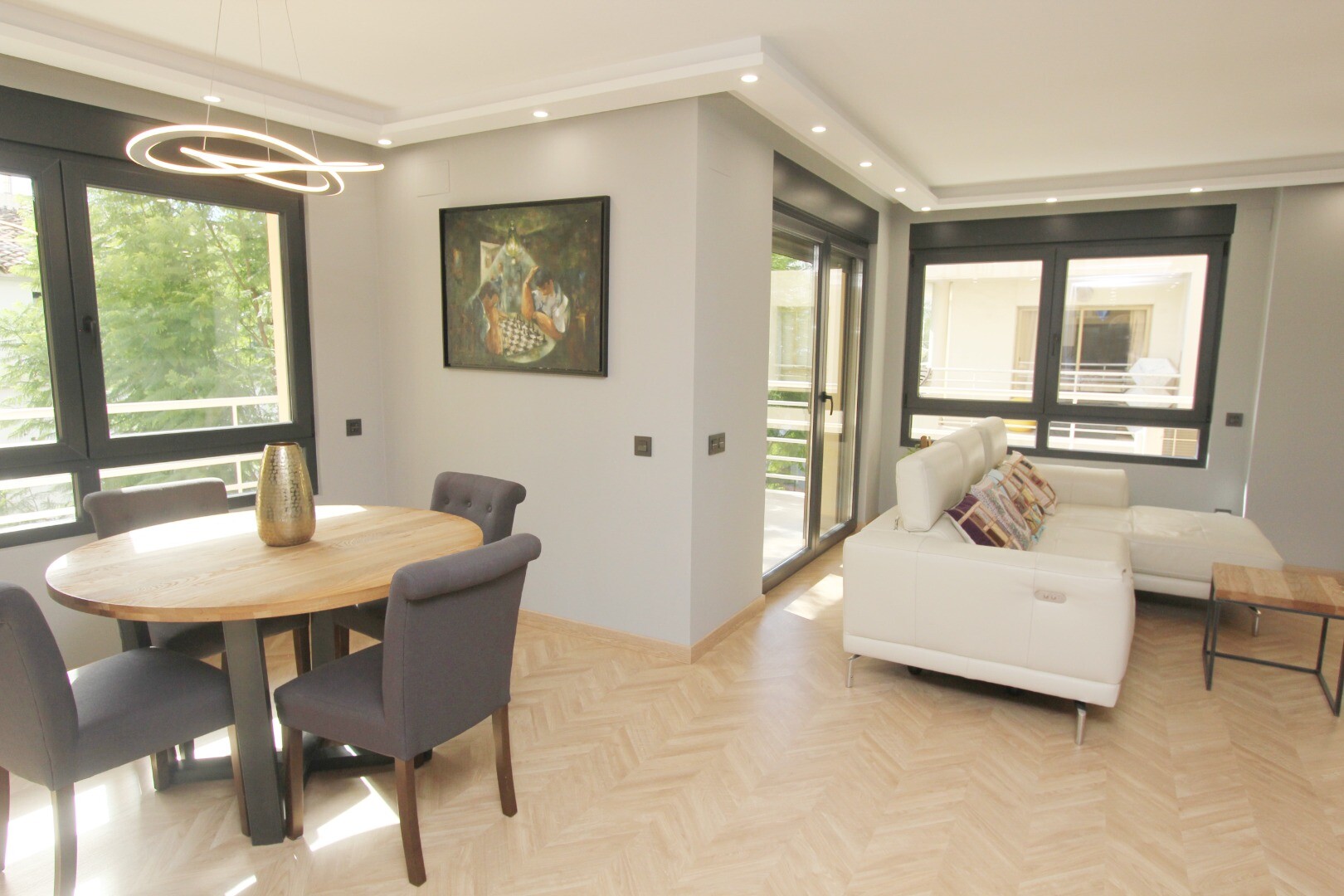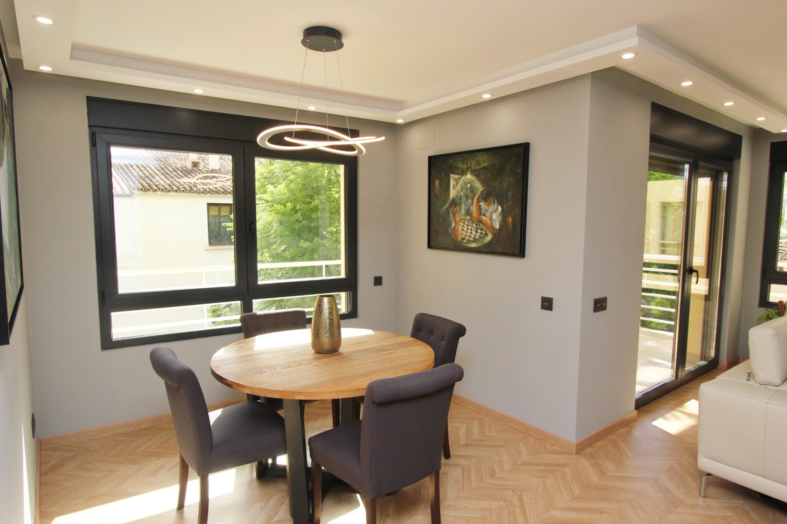 Den här fastigheten har blivit kärleksfullt och noggrant renoverad, inklusive alla nya installationer av el, VVS och luftkonditioneringssystem. Den inre fastigheten är helt ny i alla aspekter; Träparkettgolv, exklusiva ...dörrar och fönster, lyxigt designkök med bänkskivor i marmor och ö, mediavägg med öppen spis, fullt utrustade badrum och en stor klädkammare (fjärde sovrummet) är bara några av de många funktionerna i denna imponerande lägenhet.