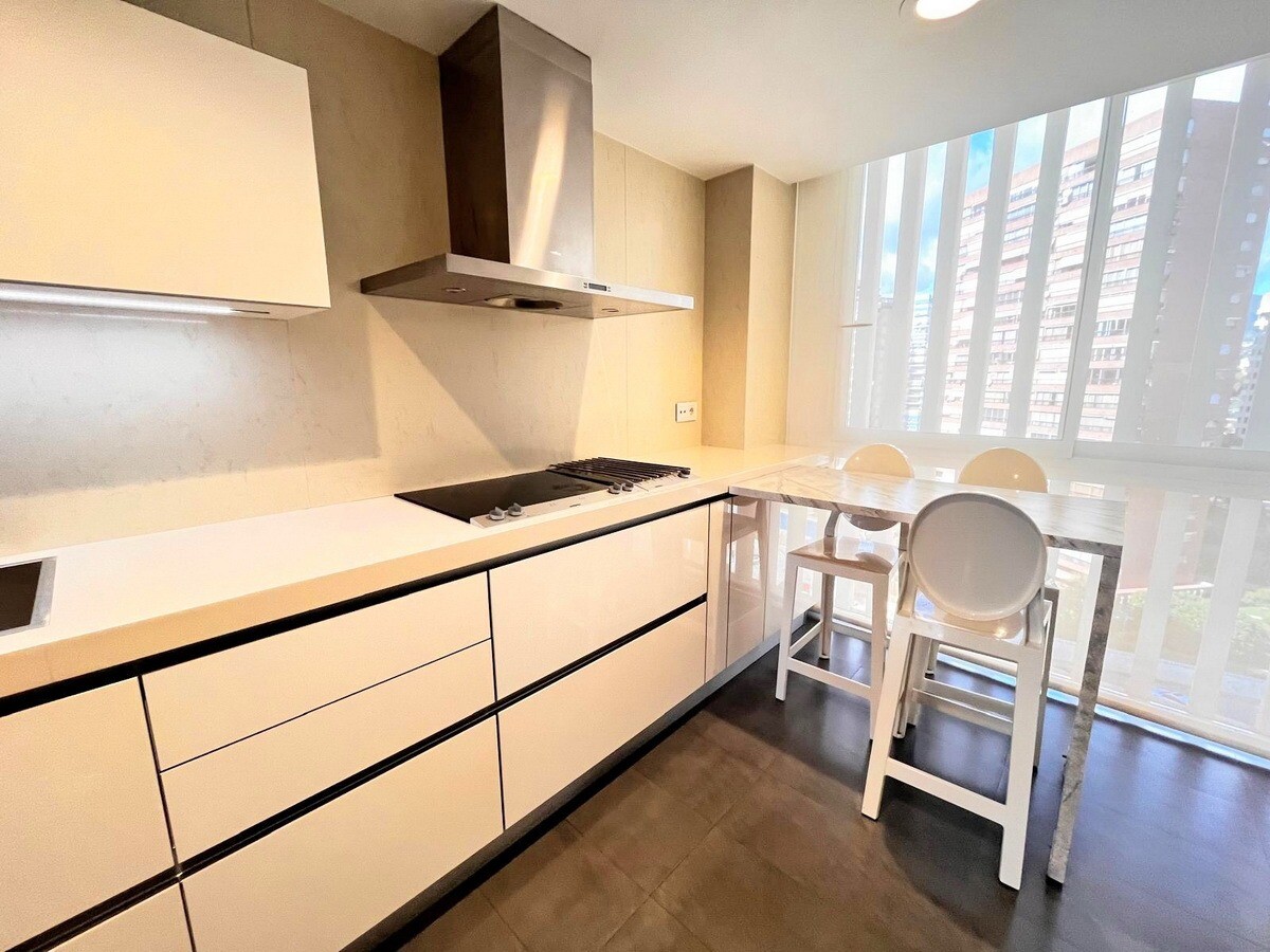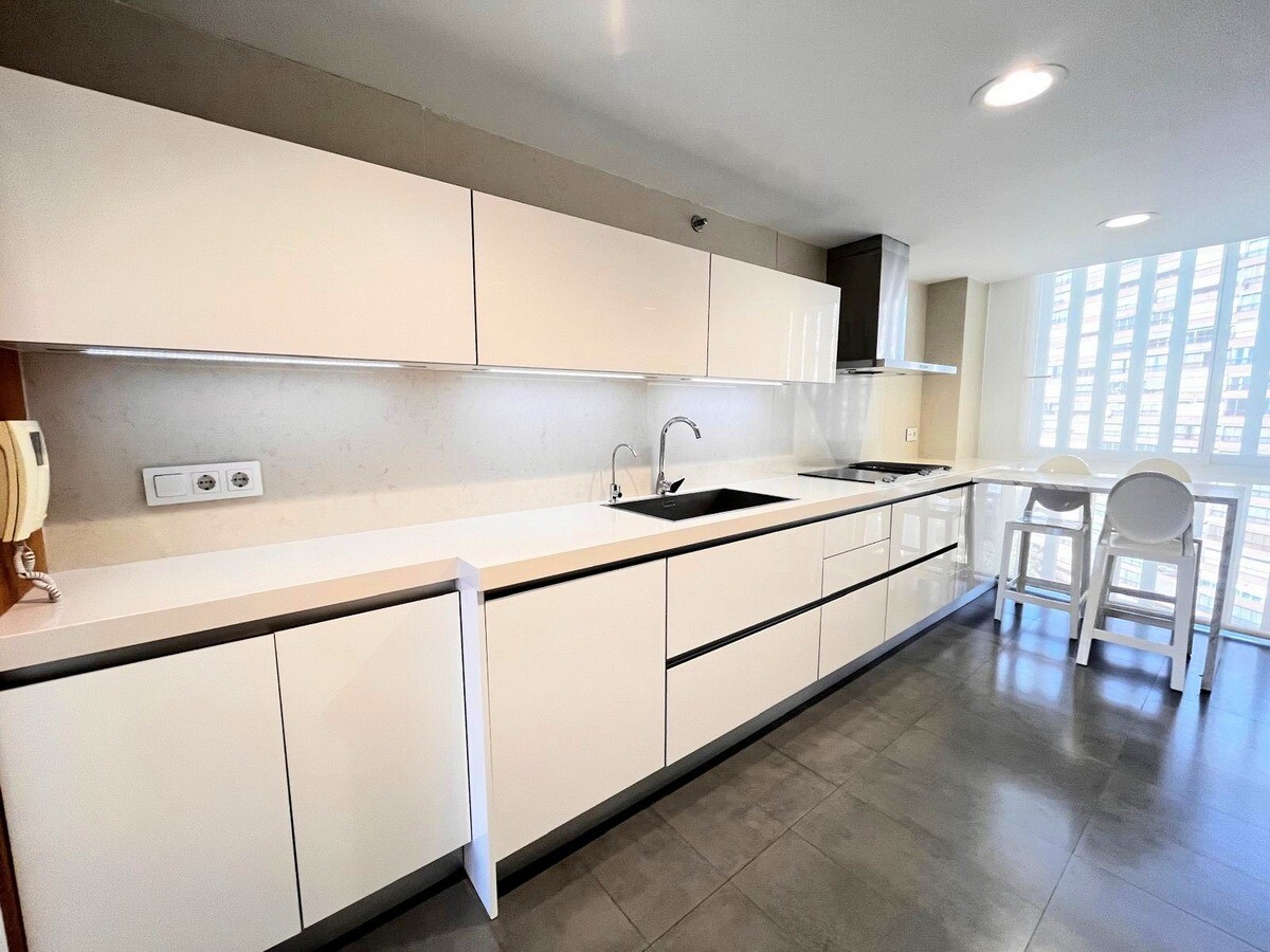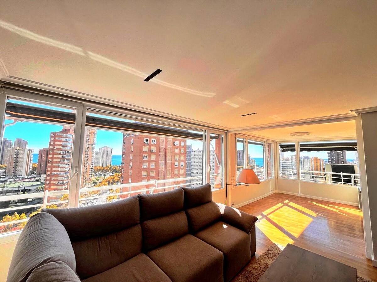 Upptäck denna rymliga lägenhet på 162 m² i Levante-området i Benidorm, bara några minuter från den berömda Levante-stranden. Belägen på 11:e våningen i en ikonisk byggnad, erbjuder den fri utsikt och en touch av havet.