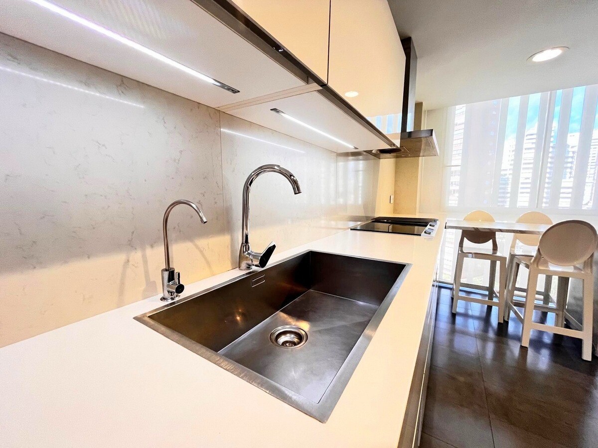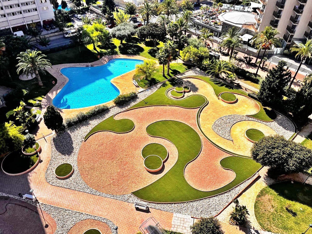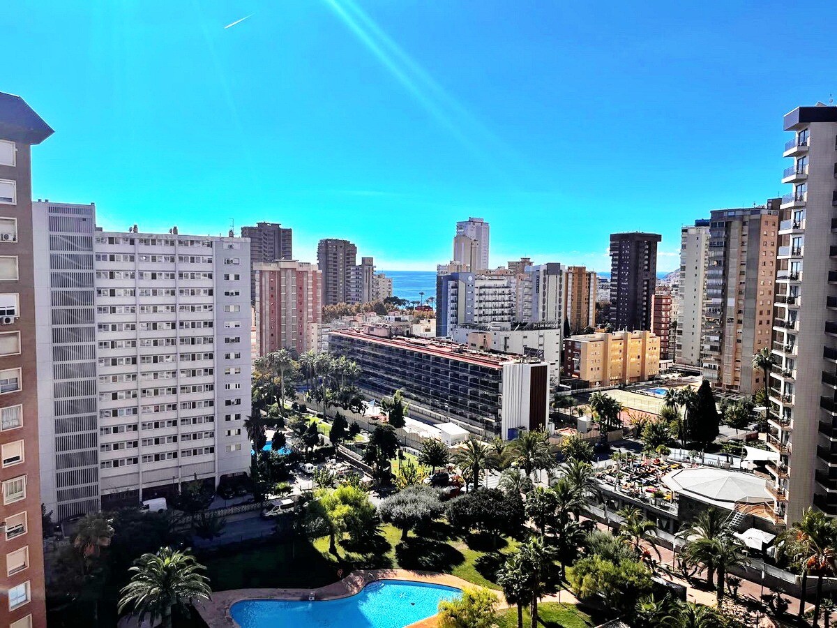 Upptäck denna rymliga lägenhet på 162 m² i Levante-området i Benidorm, bara några minuter från den berömda Levante-stranden. Belägen på 11:e våningen i en ikonisk byggnad, erbjuder den fri utsikt och en touch av havet.