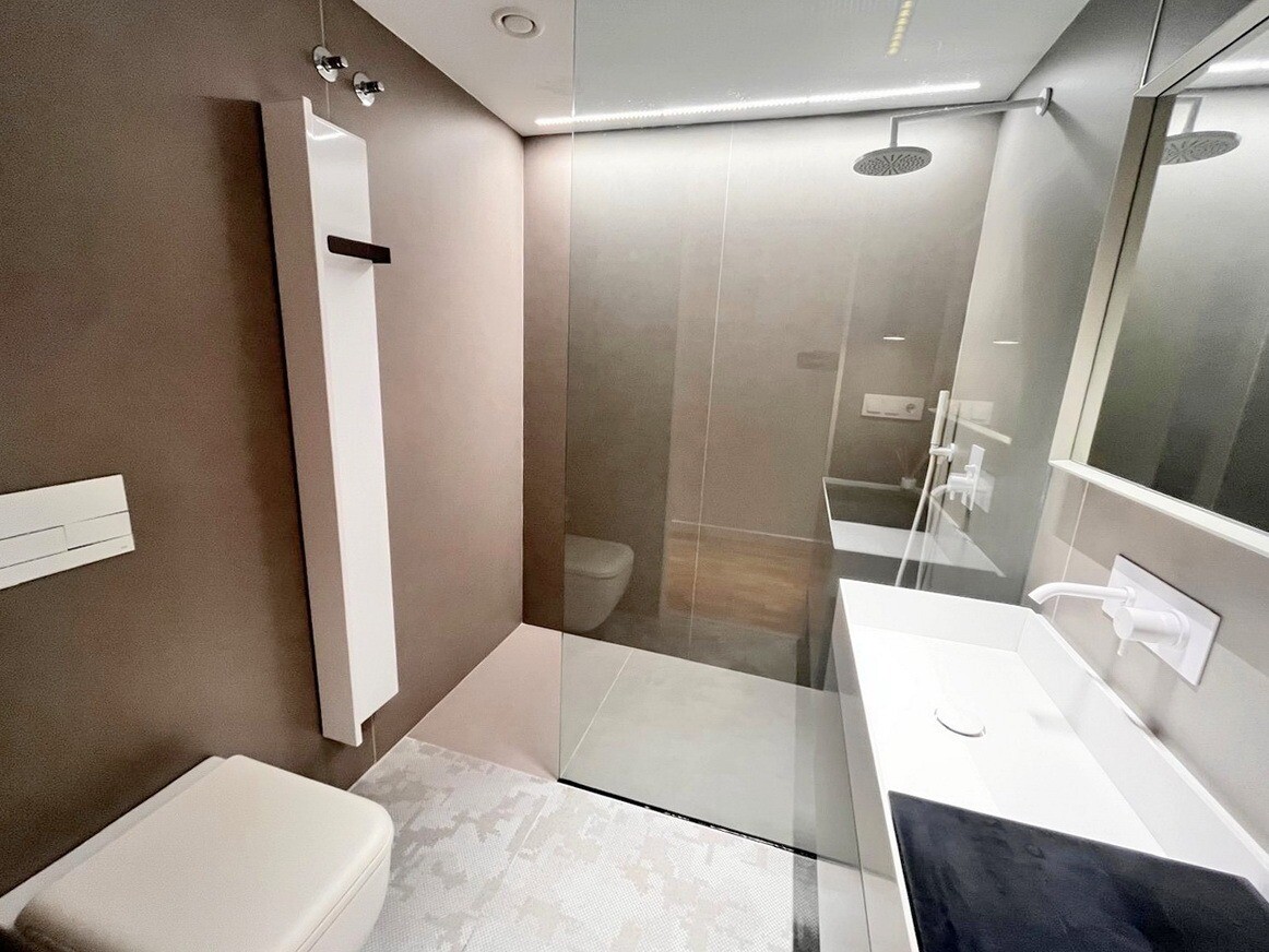 Den har också en inglasad terrass, varm/kall luftkonditionering, centralvärme, dubbelglasade fönster och automatiska persienner, markiser och rullgardiner.