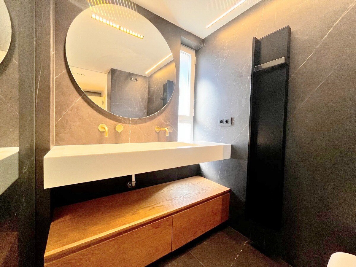 Byggnaden erbjuder concierge, en gemensam pool, en hiss och privat parkering.