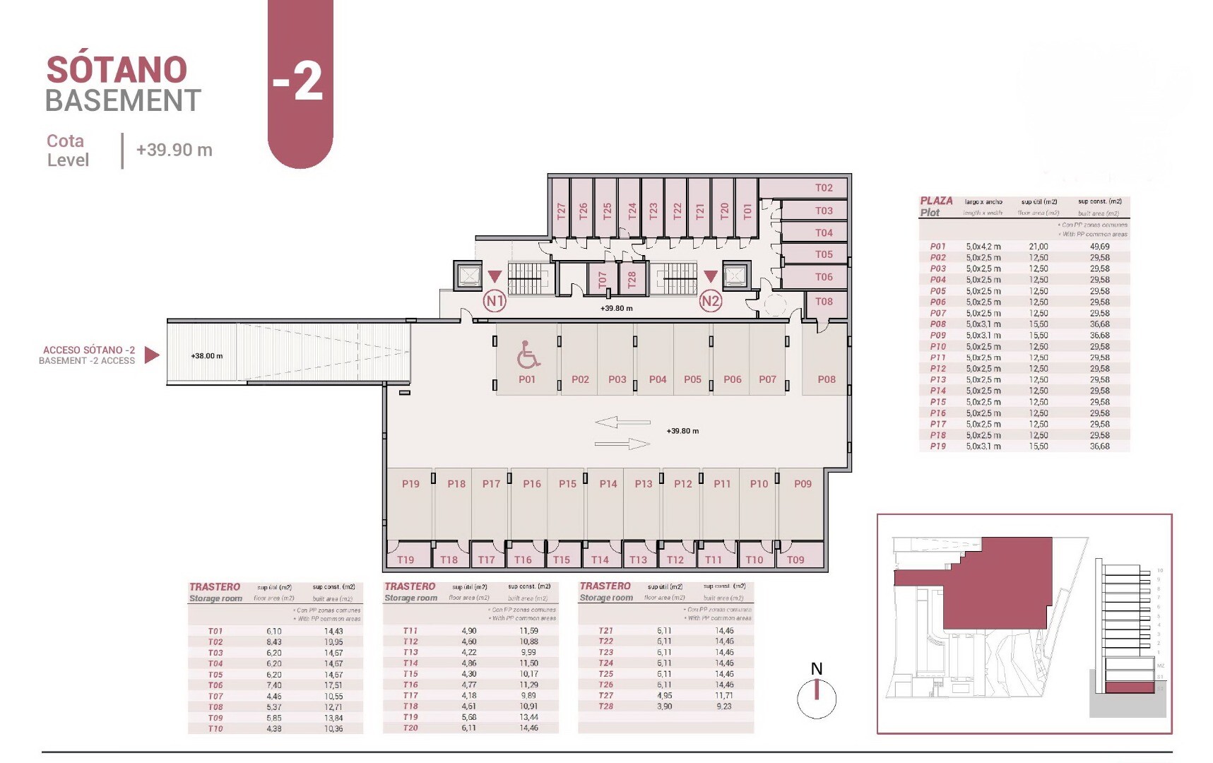 Varje lägenhet har egen parkeringsplats i källaren och förråd.