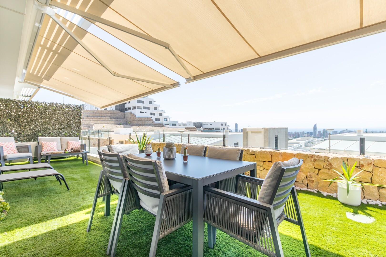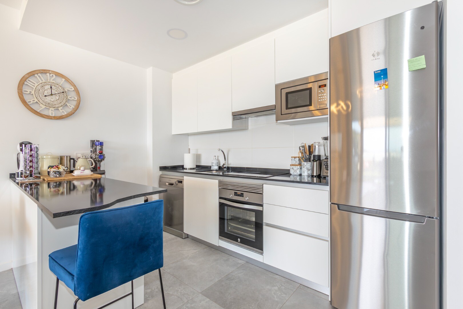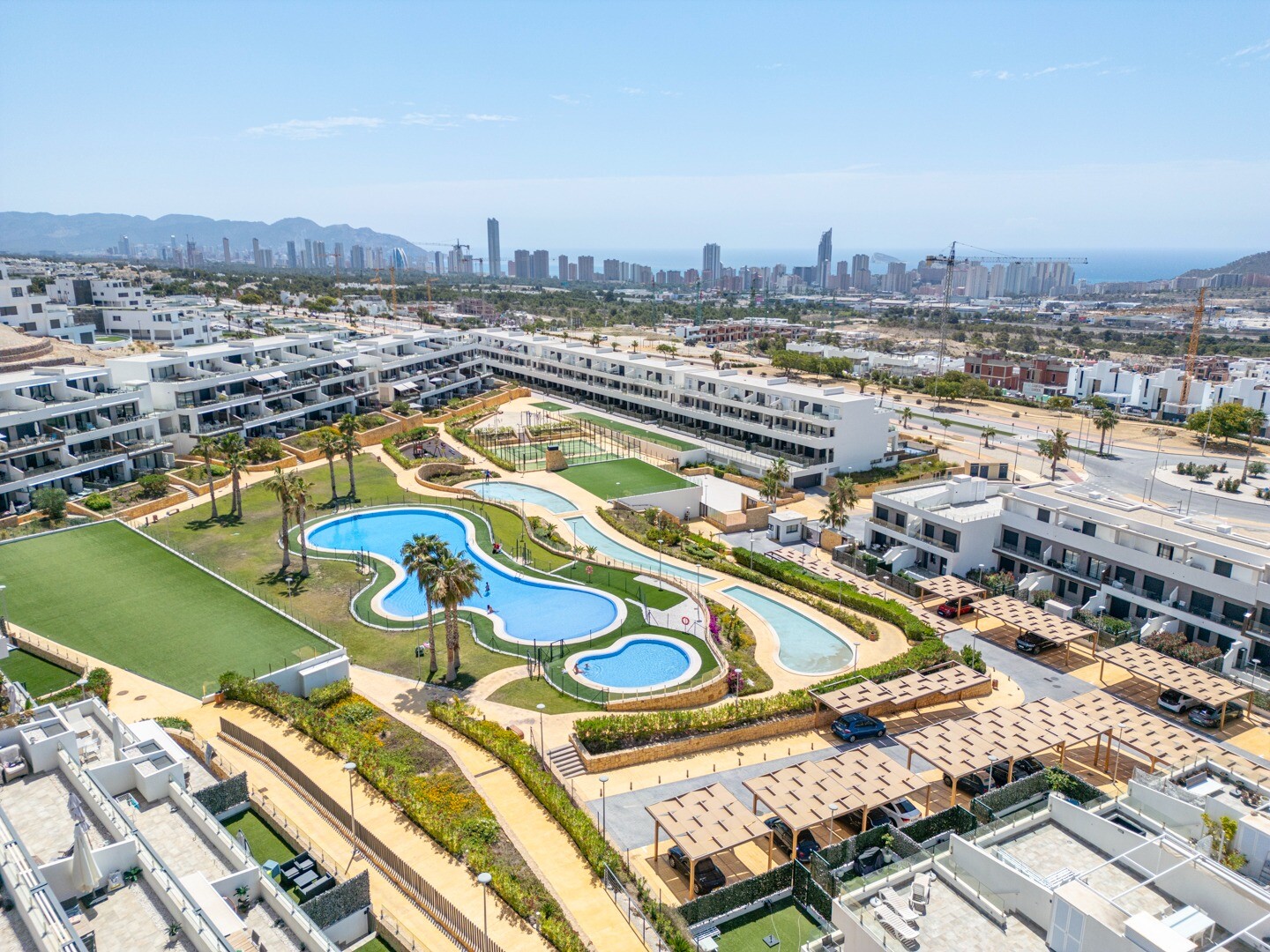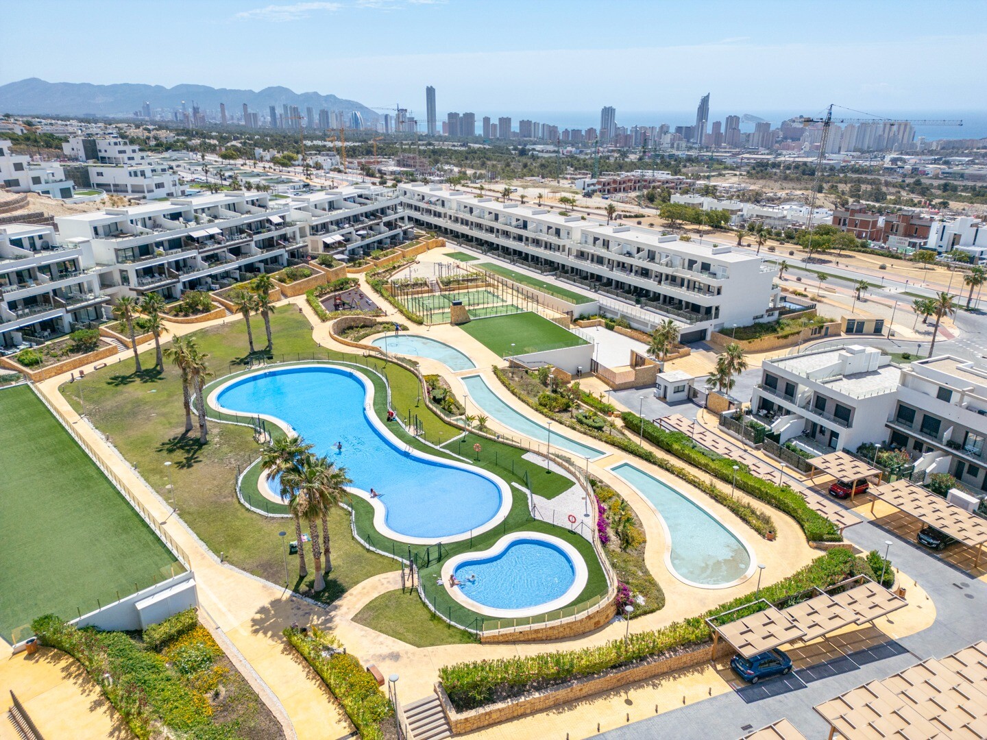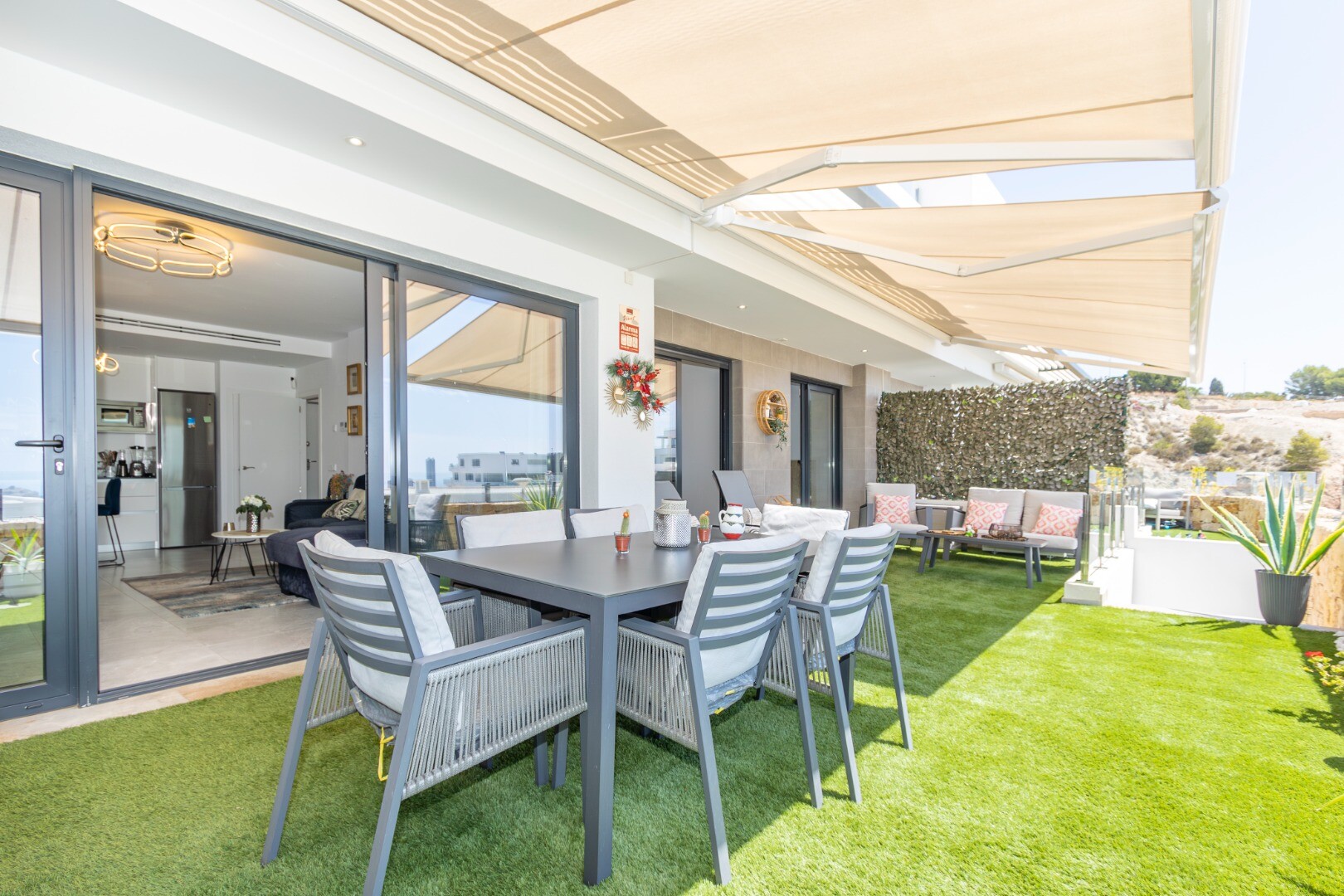 Denna moderna lägenhet i Finestrat, Alicante-provinsen, erbjuder ett liv i lyx och komfort. Byggd 2022, den har två rymliga sovrum, båda med direkt tillgång till en spektakulär terrass med fantastisk utsikt över havet och staden Benidorm. Sovrummen har inbyggda garderober och två kompletta badrum, varav ett en suite, båda med duschar. Det stora var...dagsrummet är anslutet till ett modernt kök som är fullt utrustat med de senaste apparaterna, vilket skapar en idealisk plats för familjeaktiviteter. Dessutom har fastigheten central luftkonditionering, avancerad hemautomation och ett intelligent larmsystem för ökad säkerhet.