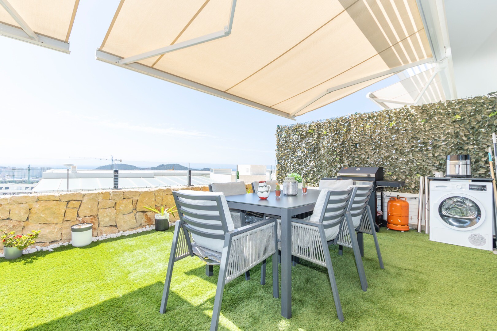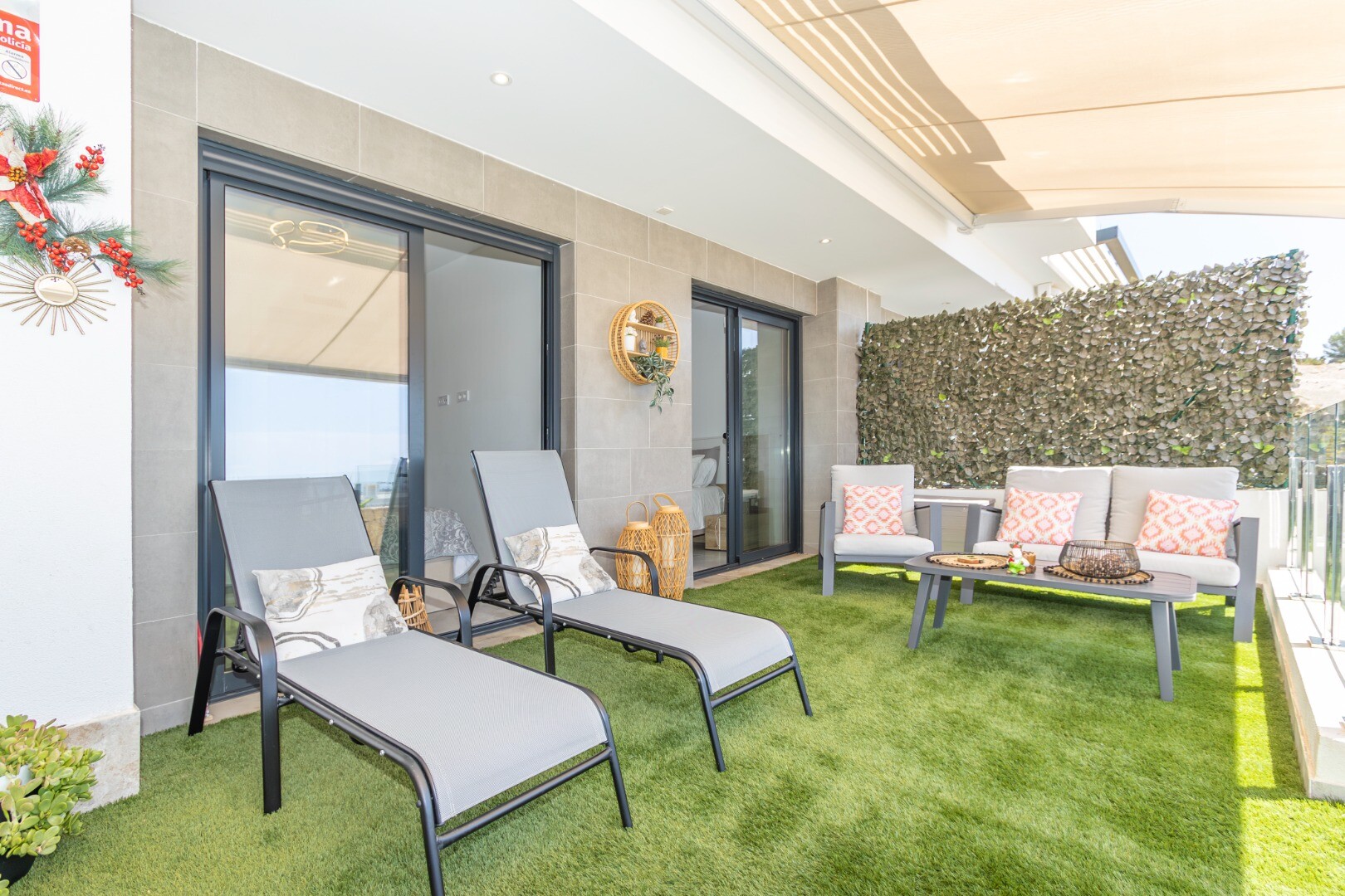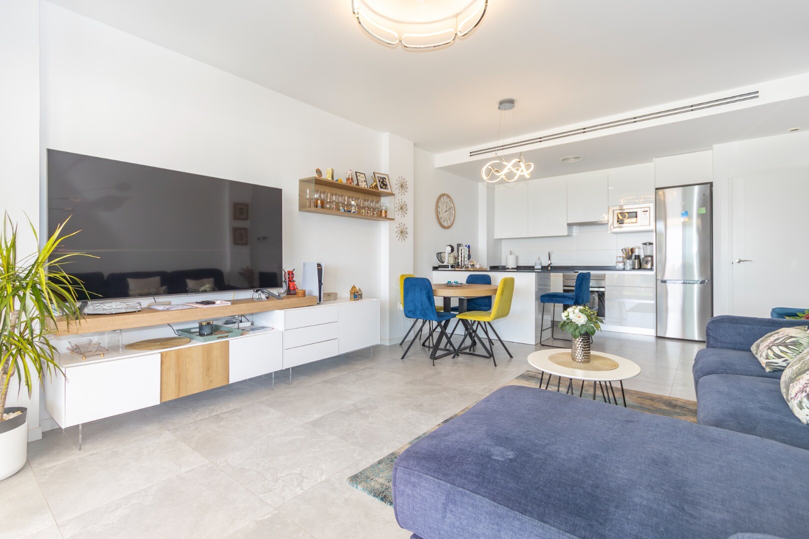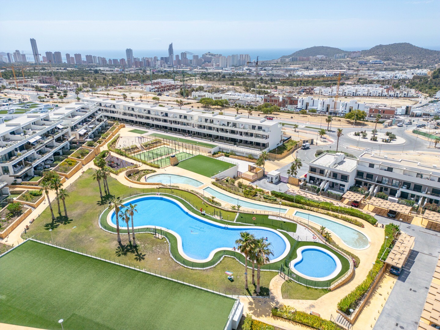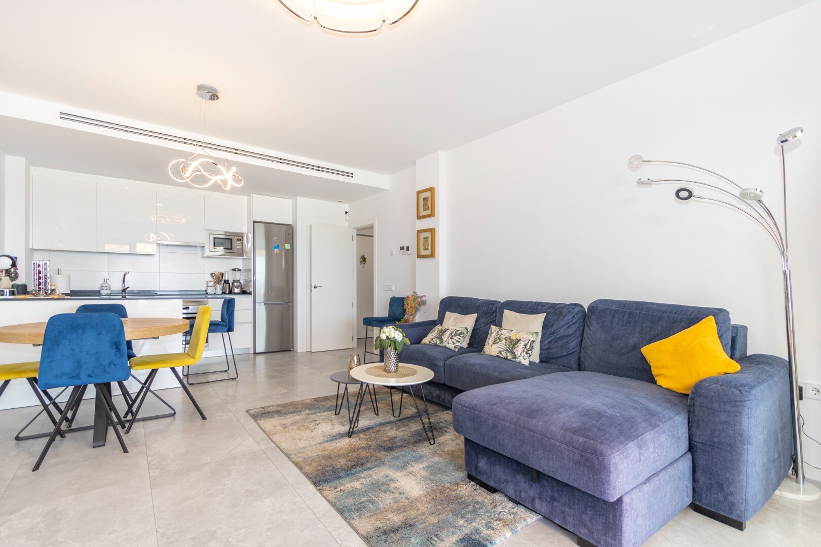 Denna moderna lägenhet i Finestrat, Alicante-provinsen, erbjuder ett liv i lyx och komfort. Byggd 2022, den har två rymliga sovrum, båda med direkt tillgång till en spektakulär terrass med fantastisk utsikt över havet och staden Benidorm. Sovrummen har inbyggda garderober och två kompletta badrum, varav ett en suite, båda med duschar. Det stora var...dagsrummet är anslutet till ett modernt kök som är fullt utrustat med de senaste apparaterna, vilket skapar en idealisk plats för familjeaktiviteter. Dessutom har fastigheten central luftkonditionering, avancerad hemautomation och ett intelligent larmsystem för ökad säkerhet.