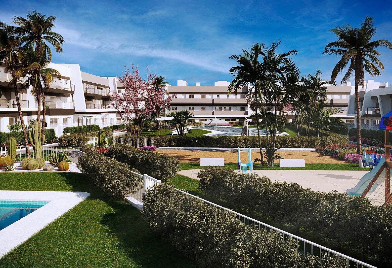 De framtida invånarna kommer att kunna njuta av olika gemensamma faciliteter, såsom pooler och lekplatser, vilket gör detta till en idealisk miljö för familjer. Denna lägenhet kommer att vara ett utmärkt val för dem som letar efter komfort och kvalitet i ett av de bästa områdena på Costa Blanca.