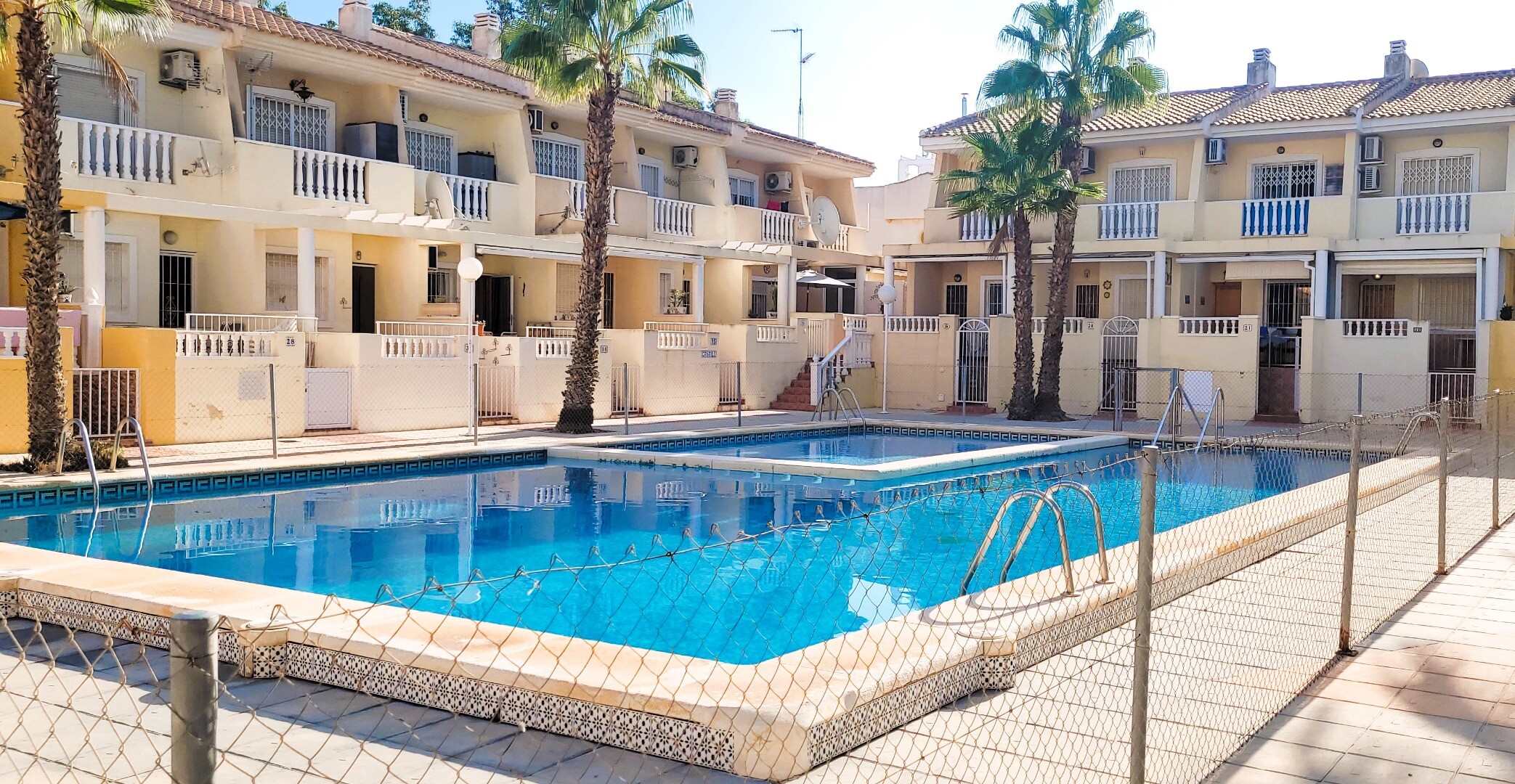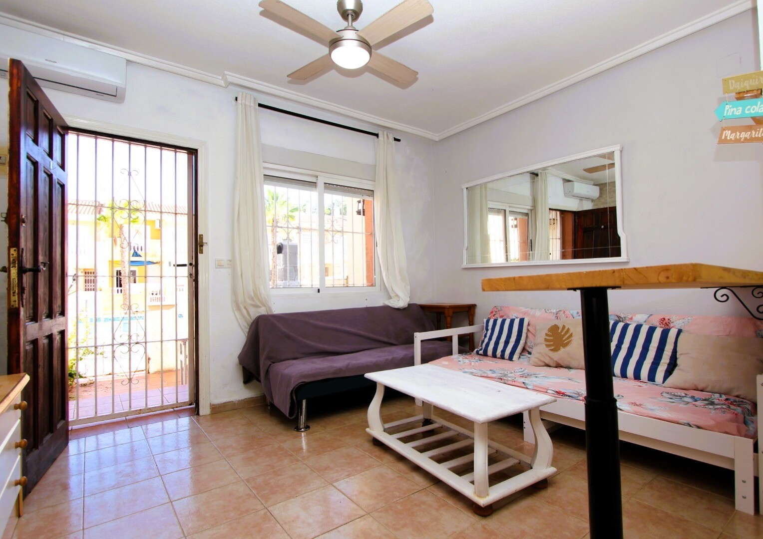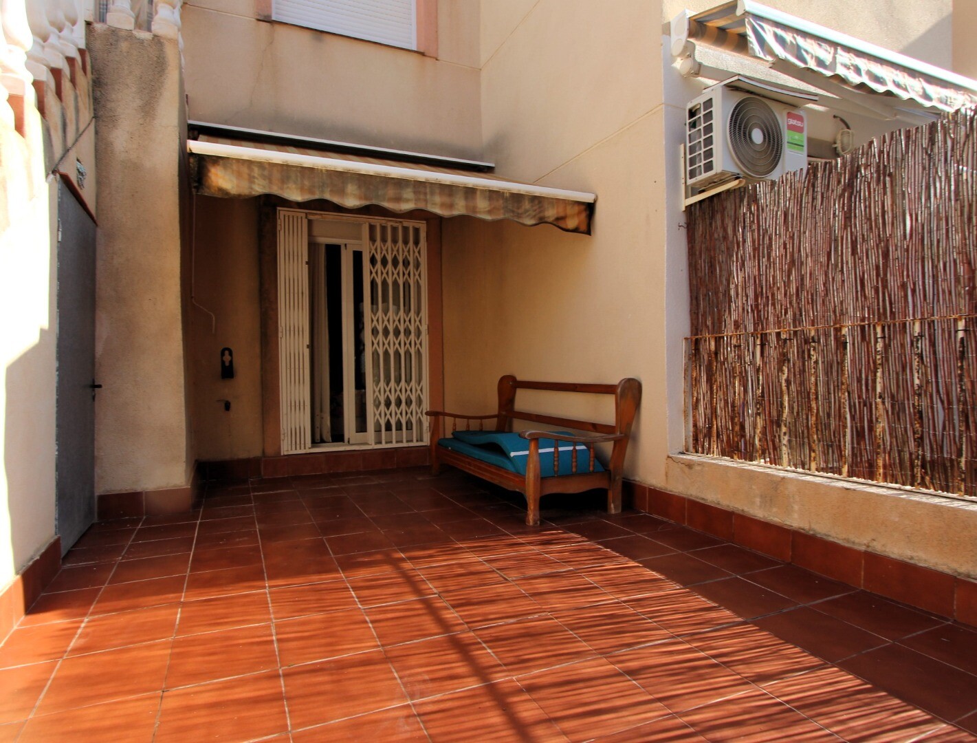 Vi presenterar denna bottenvåning i ett lugnt bostadsområde i Guardamar del Segura, bara 500 meter från Playa del Campo. Fastigheten har ett dubbelrum, ett badrum och ett kök som vetter mot vardagsrummet. En av dess stora attraktioner är de två privata terrasserna som gör det möjligt att njuta av utomhuslivet under större delen av dagen: en vetter ...mot nordost, perfekt för att äta frukost i det mjuka morgonljuset, och en annan mot sydväst, idealisk för att koppla av i solen på eftermiddagen eller äta middag utomhus. Bostadsområdet har en gemensam pool. Området har bra kommunikationer, bara 5 kilometer från Guardamars centrum, där du har alla typer av tjänster inom räckhåll. Kontakta oss för mer information eller för att boka en visning.