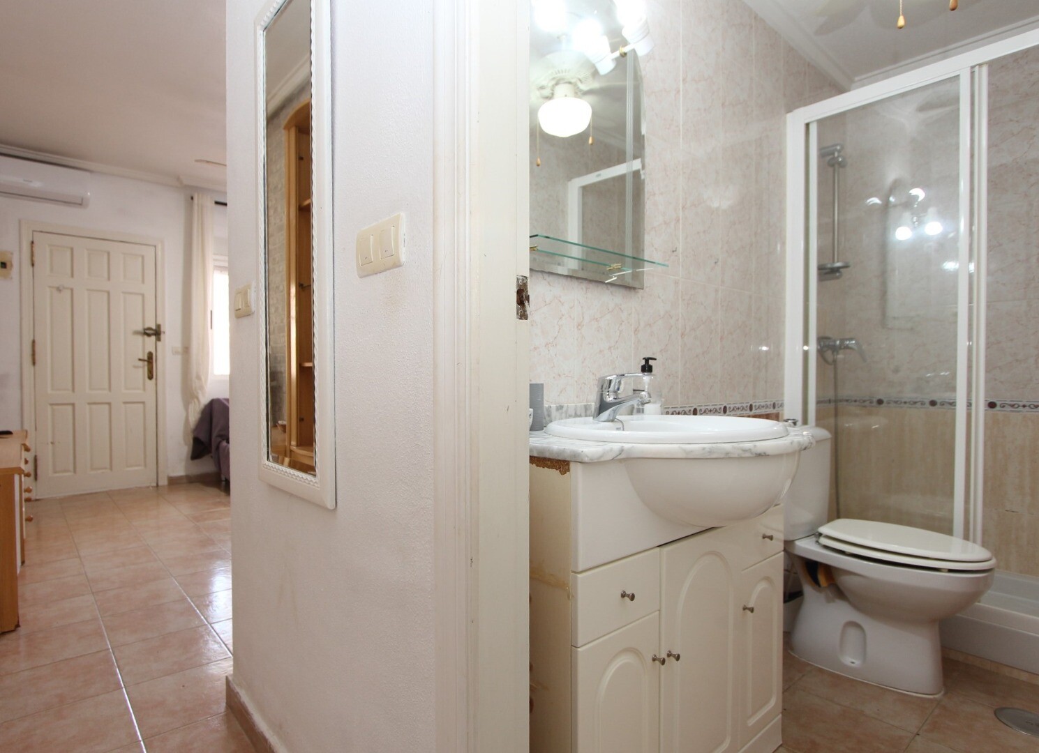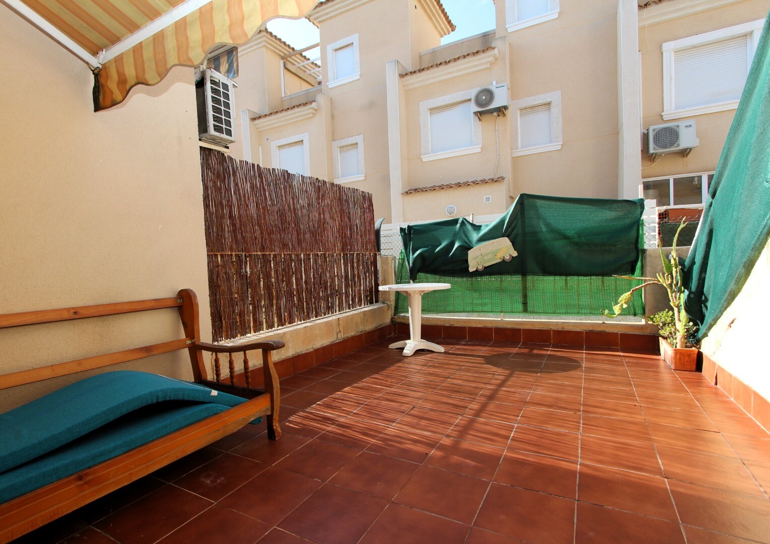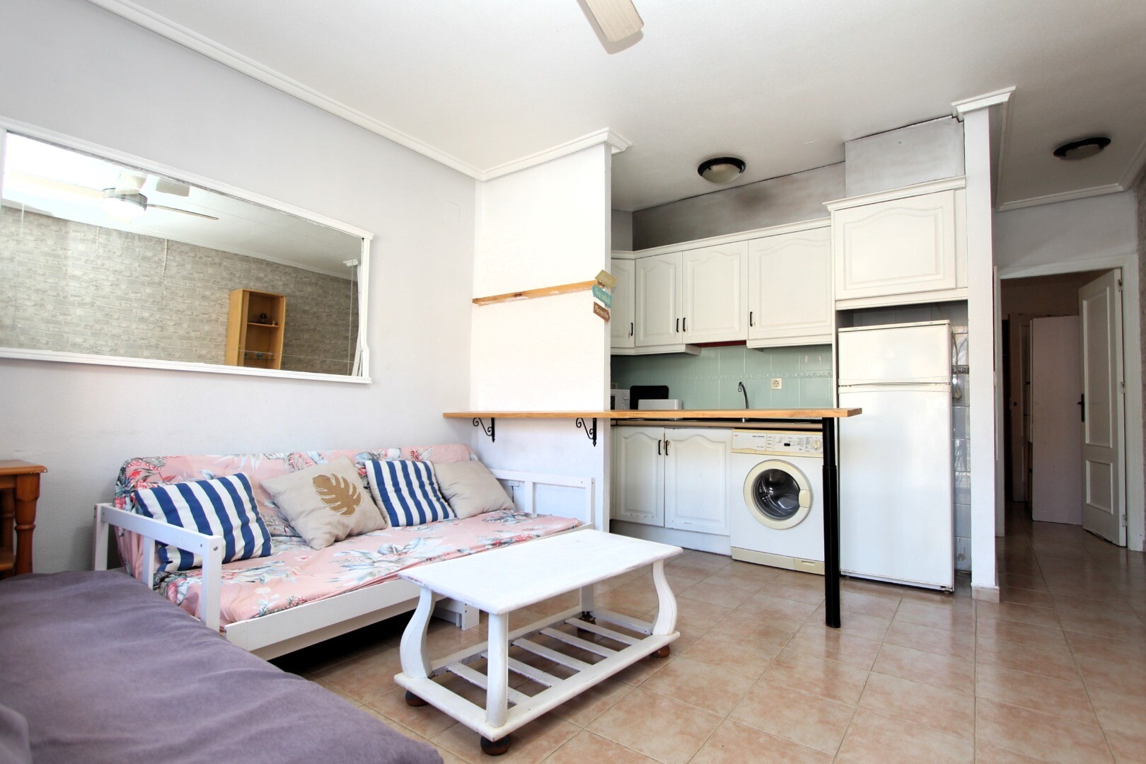 Vi presenterar denna bottenvåning i ett lugnt bostadsområde i Guardamar del Segura, bara 500 meter från Playa del Campo. Fastigheten har ett dubbelrum, ett badrum och ett kök som vetter mot vardagsrummet. En av dess stora attraktioner är de två privata terrasserna som gör det möjligt att njuta av utomhuslivet under större delen av dagen: en vetter ...mot nordost, perfekt för att äta frukost i det mjuka morgonljuset, och en annan mot sydväst, idealisk för att koppla av i solen på eftermiddagen eller äta middag utomhus. Bostadsområdet har en gemensam pool. Området har bra kommunikationer, bara 5 kilometer från Guardamars centrum, där du har alla typer av tjänster inom räckhåll. Kontakta oss för mer information eller för att boka en visning.