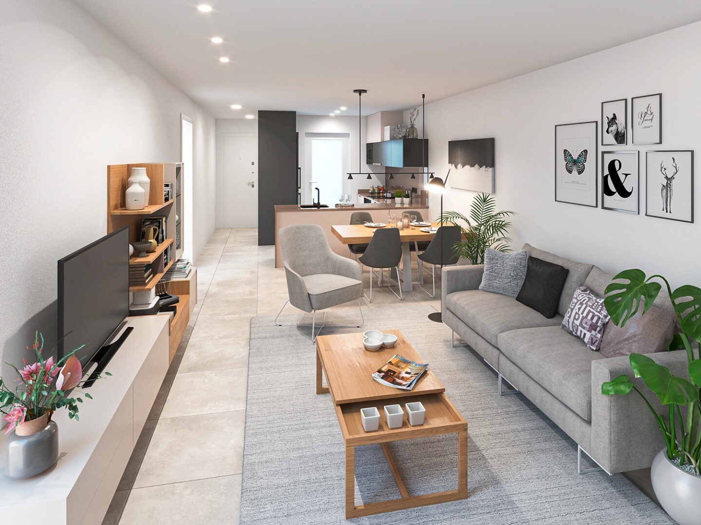 Med en total byggd yta på 81,56 kvadr...atmeter och en terrass på 12,02 kvadratmeter kommer detta rymliga bostadsområde att bestå av två sovrum, två badrum och ett stort vardagsrum/matsal med ett modernt kök i öppen planlösning som är utrustat med möbler av hög kvalitet och integrerade apparater, såsom keramikhäll, ugn och mikrovågsugn, idealisk för att förbereda måltider för familj och vänner.