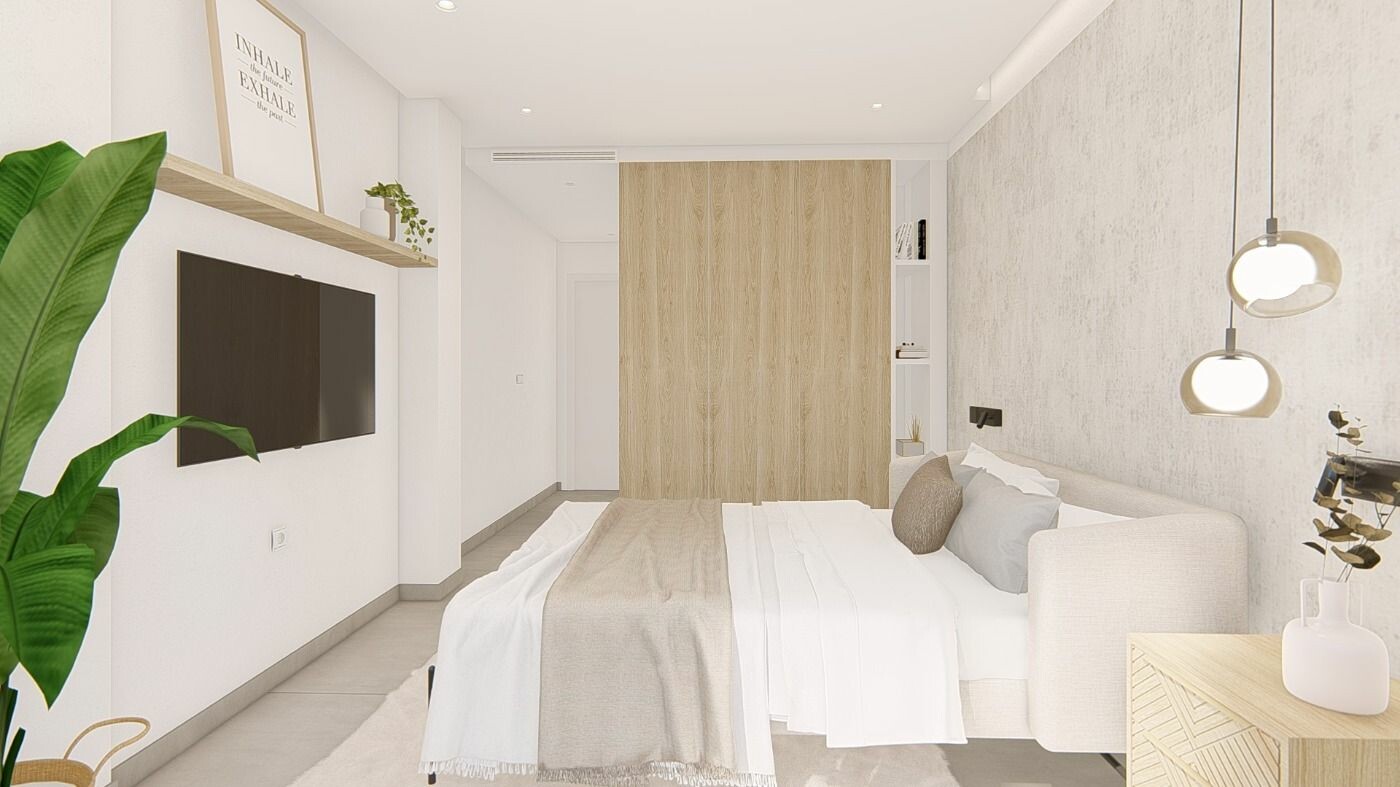 NYBYGGT BOSTADSOMRÅDE I EL RASO, GUARDAMAR DEL SEGURA Nybyggd privat bostadsområde med lägenheter i El Raso, Guardamar del Segura. Komplexet består av 135 bostäder med 2 eller 3 sovrum i block med 3 eller 5 våningar plus solarium, utformade på ett minimalistiskt sätt och med höga kvalitetsstandarder, dess moderna arkitektur harmonierar med våra st...ora öppna ytor, naturen och simbassängerna och erbjuder en unik och fridfull atmosfär. Vackra bostadskomplex, inklusive en glasad GYM-Spa-avdelning med utsikt över grönområden, simbassänger och från sin terrass med utsikt över saltlagunen La Mata, paddeltennisbana osv. Möbelpaket ingår i priset. Parkeringsplats ingår i priset. Utvecklingen är belägen på en unik och oöverträffad tomt, som gränsar till det naturliga landskapet i saltlagunen, njut av dess biologiska mångfald och unika miljö, i El Raso de Guardamar del Segura, med alla typer av tjänster och bekvämligheter och nära till de bästa stränderna i Medelhavet. Samtidigt kan du tack vare närheten till stranden El Moncayo ta en cykeltur och njuta av Costa Blancas bästa klimat. Dessutom och tack vare de fem nivåerna i vissa av de block som utgör bostadsområdet, alla i söderläge, inkluderar vi i våra lyxiga takvåningar, fullt utrustat kök på solariumet, utomhusdusch (varmt/kallt vatten) och jacuzziområde, för att fullborda den unika upplevelsen av att bo framför en unik och oöverträffad naturmiljö. El Raso är en del av Guardamar del Segura. Guardamar del Segura är en stad som ligger på Costa Blanca södra. Med sin 11 kilometer långa naturstrand och sin stora tallskog. Guardamar del Segura har en stor hamn med aktiviteter under hela året, den har ett stort sportcenter med paddeltennis, tennis, fotboll och en stor uppvärmd pool som fungerar året runt. Här finns också ett bibliotek där det finns gratis wifi och datorer. Guardamar del Segura ligger bara 20 km från flygplatsen Alicante - Elche (El Altet), där det finns många flygningar varje dag med förbindelser till de största europeiska städerna, på grund av efterfrågan på turister på Costa Blanca.