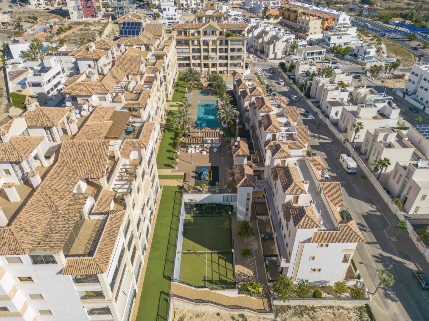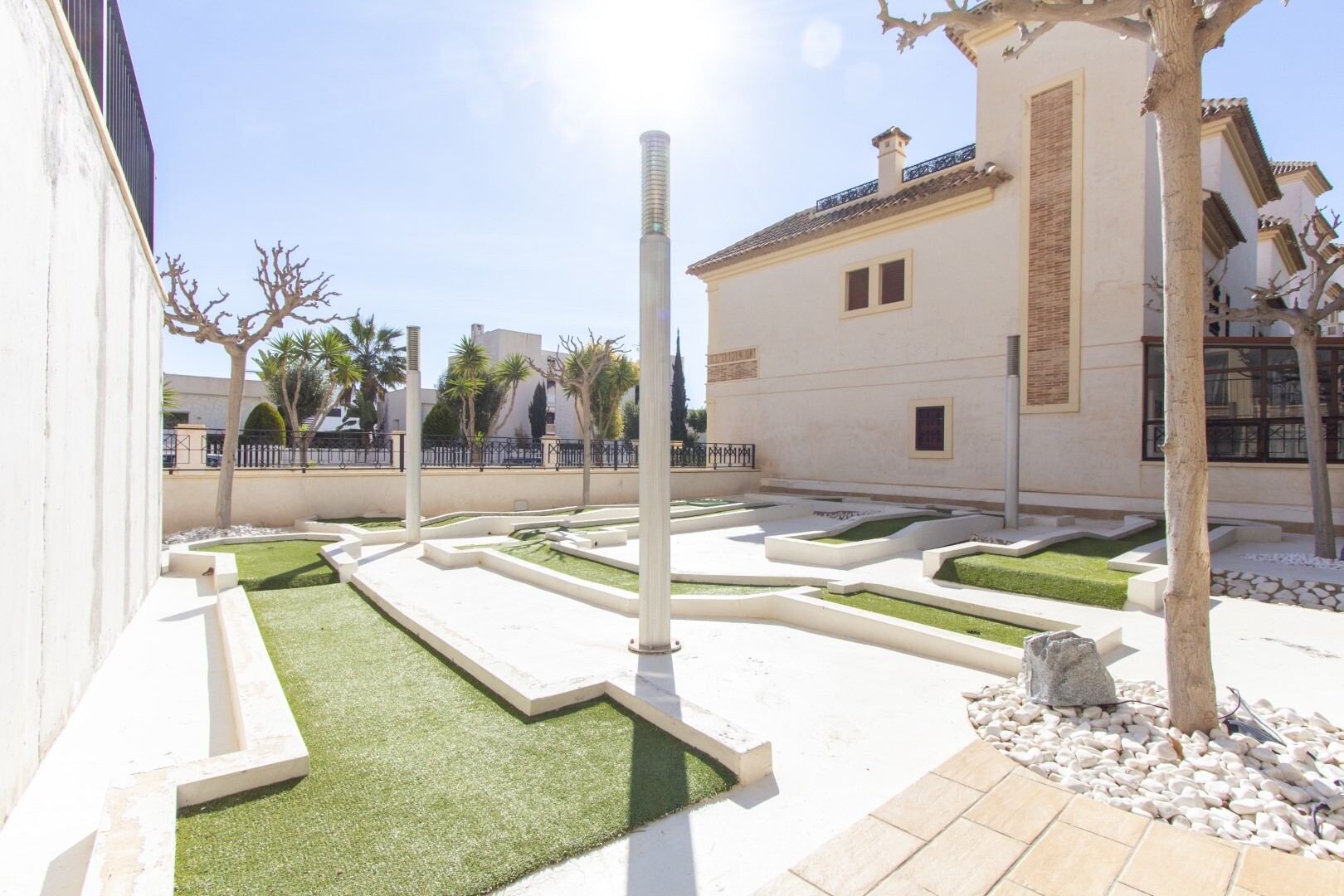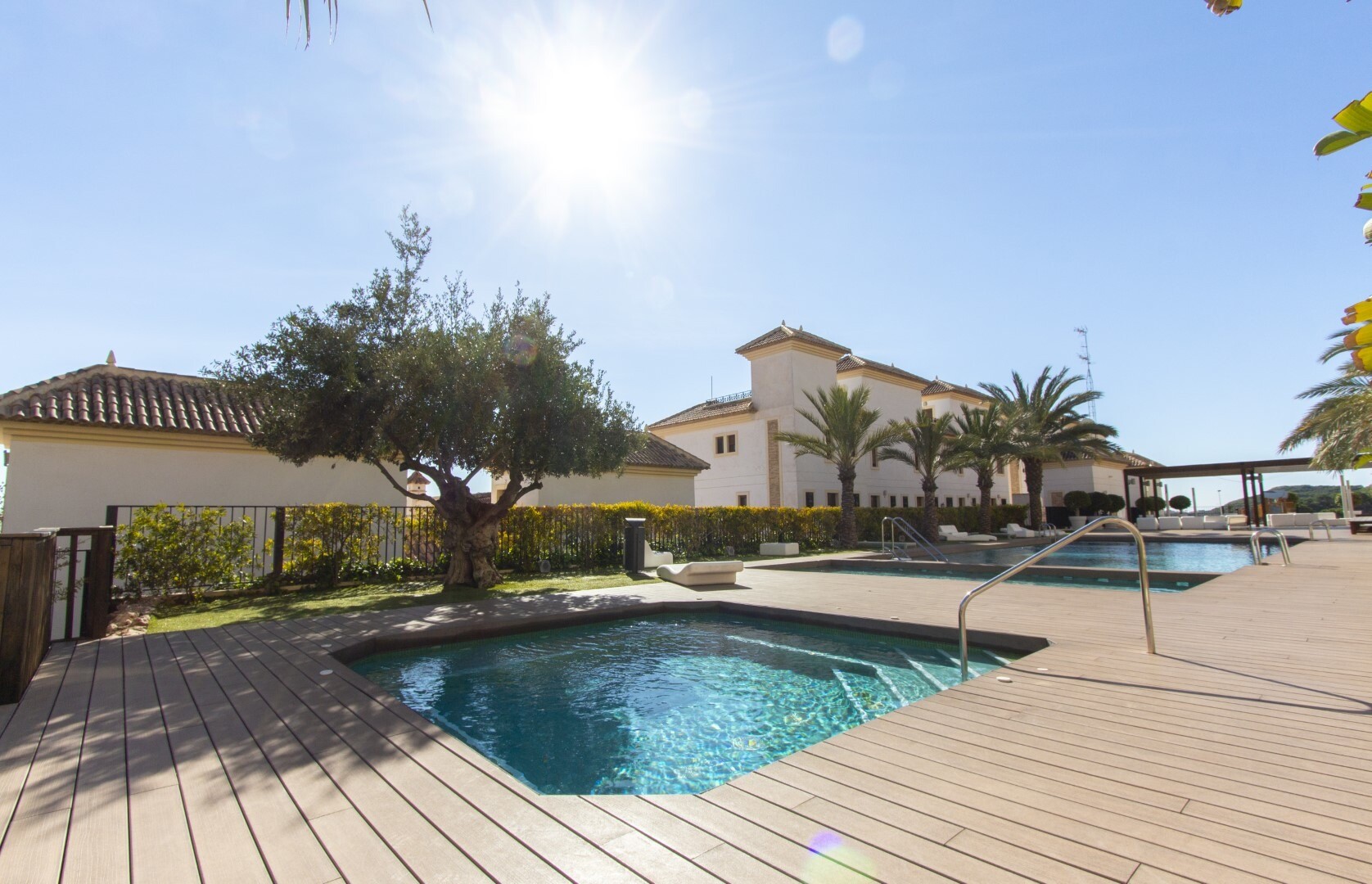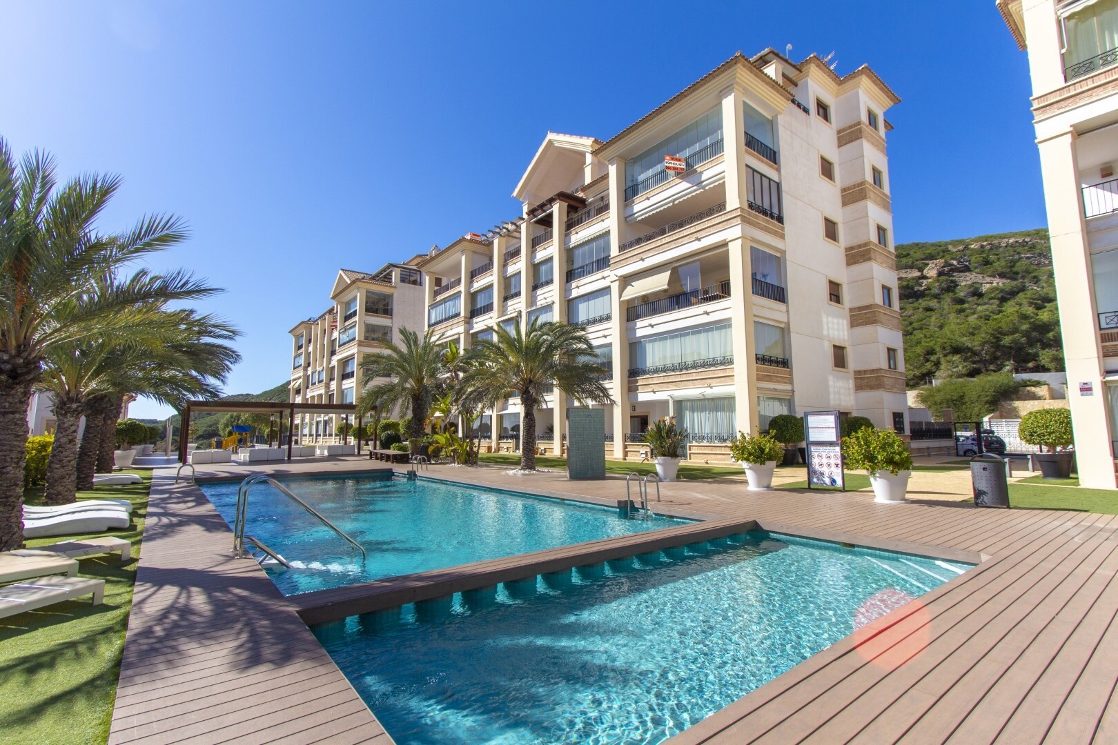 Bottenvåningslägenhet, i ett slutet bostadsområde, med direkt tillgång till trädgårdsområdet med pool och trädgårdar. Huset består av 2 sovrum och 2 badrum, med ett fristående kök med galleri och uteplats, vardagsrum och matsal samt de 2 sovrummen med tillgång till en stor inglasad terrass. Bostaden har byggts med material och ytbehandlingar av hög...sta kvalitet, hemmet har motoriserade persienner, hemautomationssystem, kassaskåp, luftkonditionering och många fler detaljer. Bostaden har en stor sommarpool och en vinterpool, bastu, gym, paddeltennisbana, minigolf och vackra trädgårdsområden som grannarna kan njuta av. I priset ingår en parkeringsplats i byggnadens källare. Huset säljs med alla möbler och vitvaror.