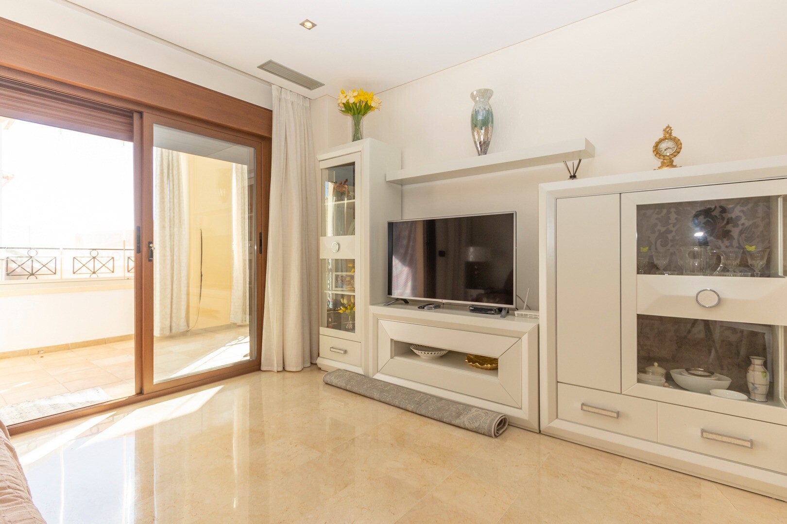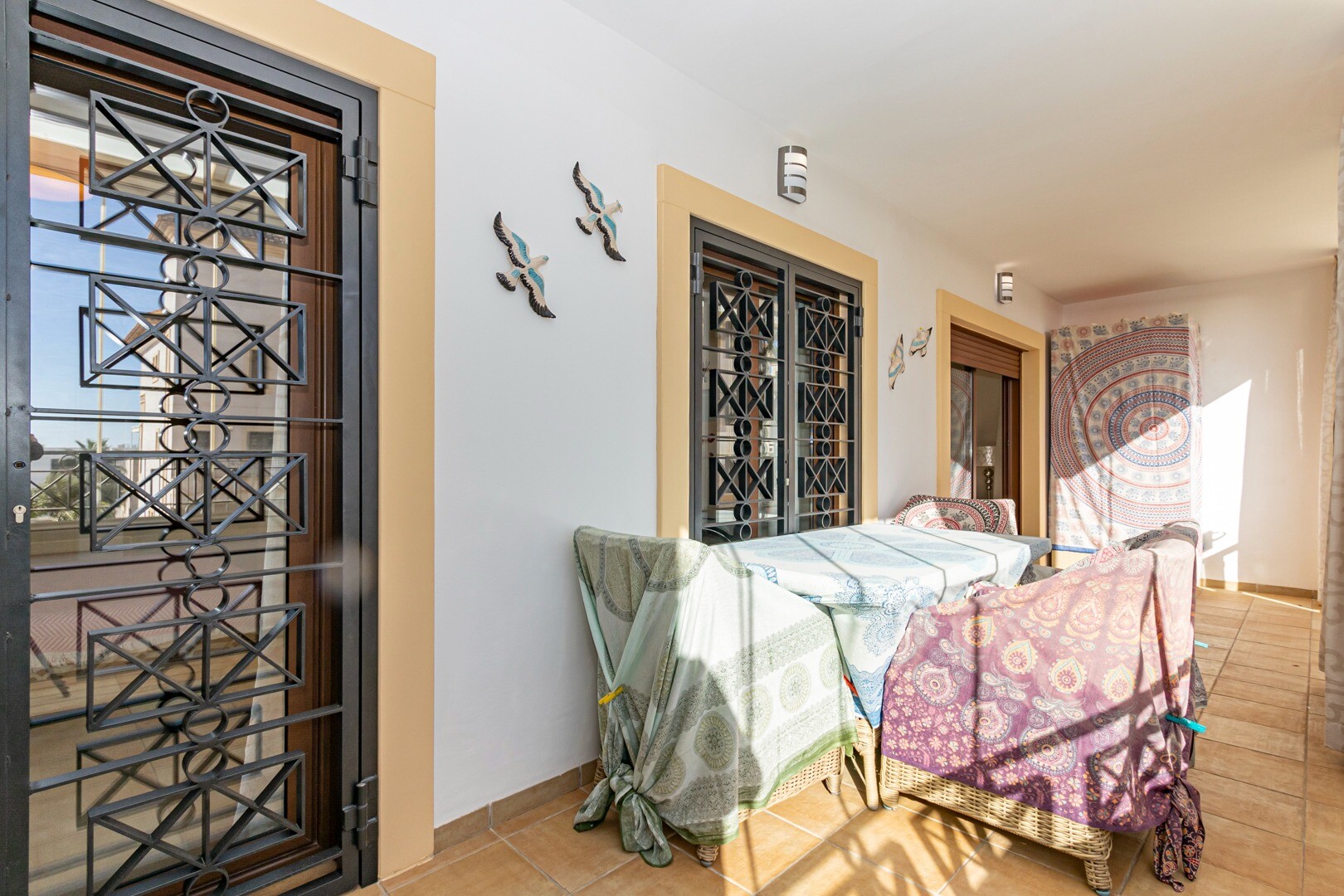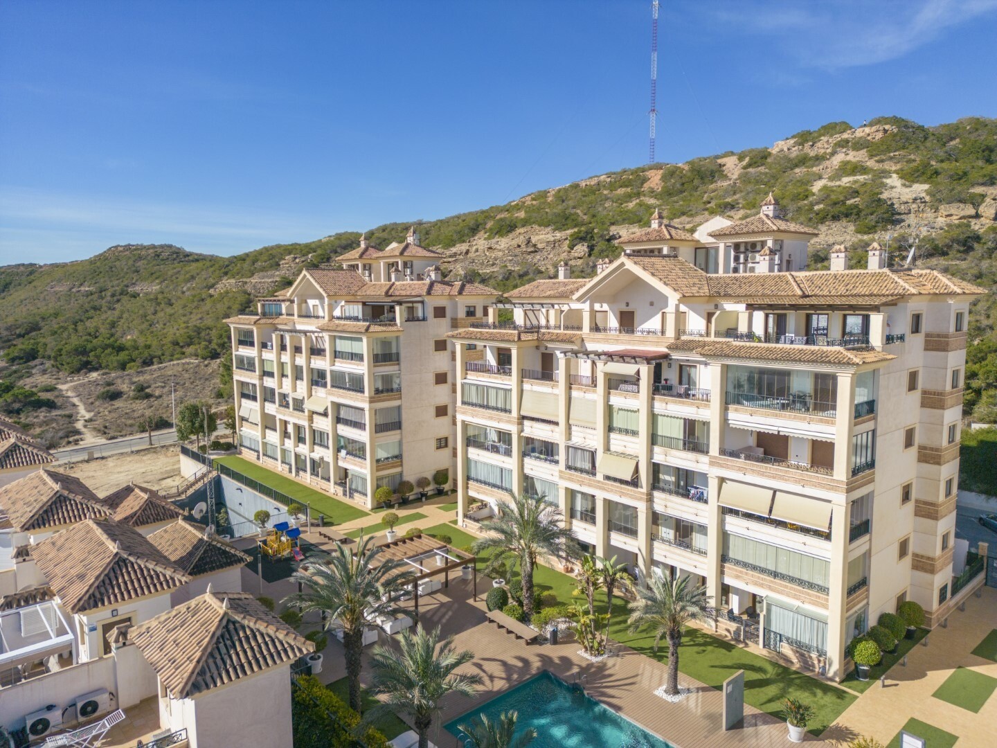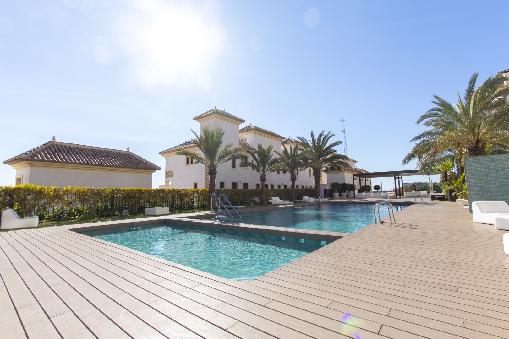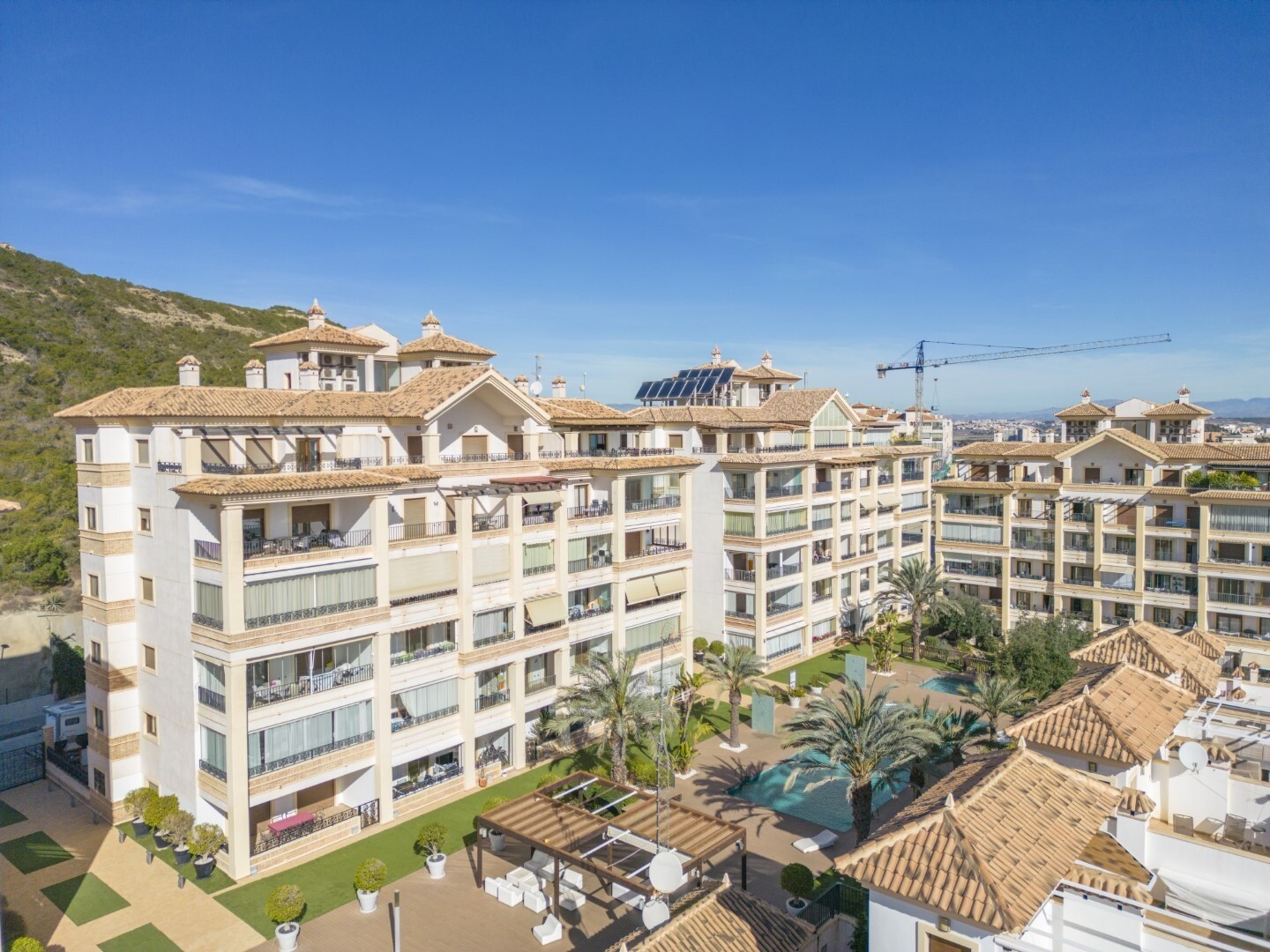 Bottenvåningslägenhet, i ett slutet bostadsområde, med direkt tillgång till trädgårdsområdet med pool och trädgårdar. Huset består av 2 sovrum och 2 badrum, med ett fristående kök med galleri och uteplats, vardagsrum och matsal samt de 2 sovrummen med tillgång till en stor inglasad terrass. Bostaden har byggts med material och ytbehandlingar av hög...sta kvalitet, hemmet har motoriserade persienner, hemautomationssystem, kassaskåp, luftkonditionering och många fler detaljer. Bostaden har en stor sommarpool och en vinterpool, bastu, gym, paddeltennisbana, minigolf och vackra trädgårdsområden som grannarna kan njuta av. I priset ingår en parkeringsplats i byggnadens källare. Huset säljs med alla möbler och vitvaror.