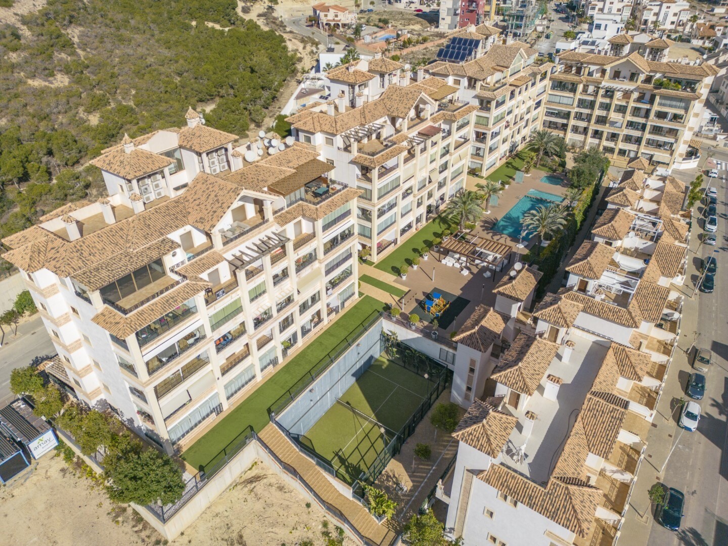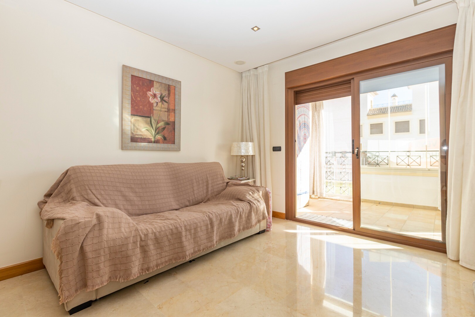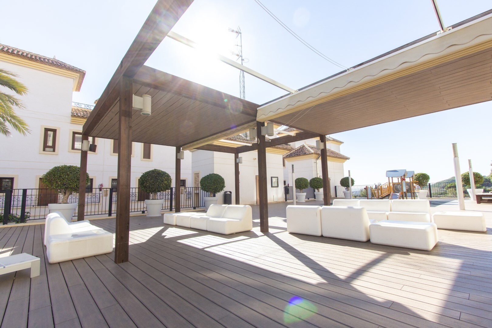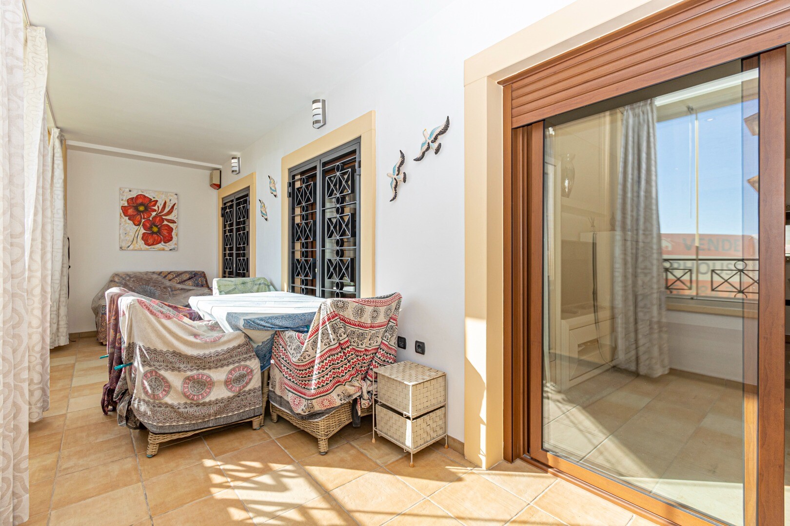 Bottenvåningslägenhet, i ett slutet bostadsområde, med direkt tillgång till trädgårdsområdet med pool och trädgårdar. Huset består av 2 sovrum och 2 badrum, med ett fristående kök med galleri och uteplats, vardagsrum och matsal samt de 2 sovrummen med tillgång till en stor inglasad terrass. Bostaden har byggts med material och ytbehandlingar av hög...sta kvalitet, hemmet har motoriserade persienner, hemautomationssystem, kassaskåp, luftkonditionering och många fler detaljer. Bostaden har en stor sommarpool och en vinterpool, bastu, gym, paddeltennisbana, minigolf och vackra trädgårdsområden som grannarna kan njuta av. I priset ingår en parkeringsplats i byggnadens källare. Huset säljs med alla möbler och vitvaror.