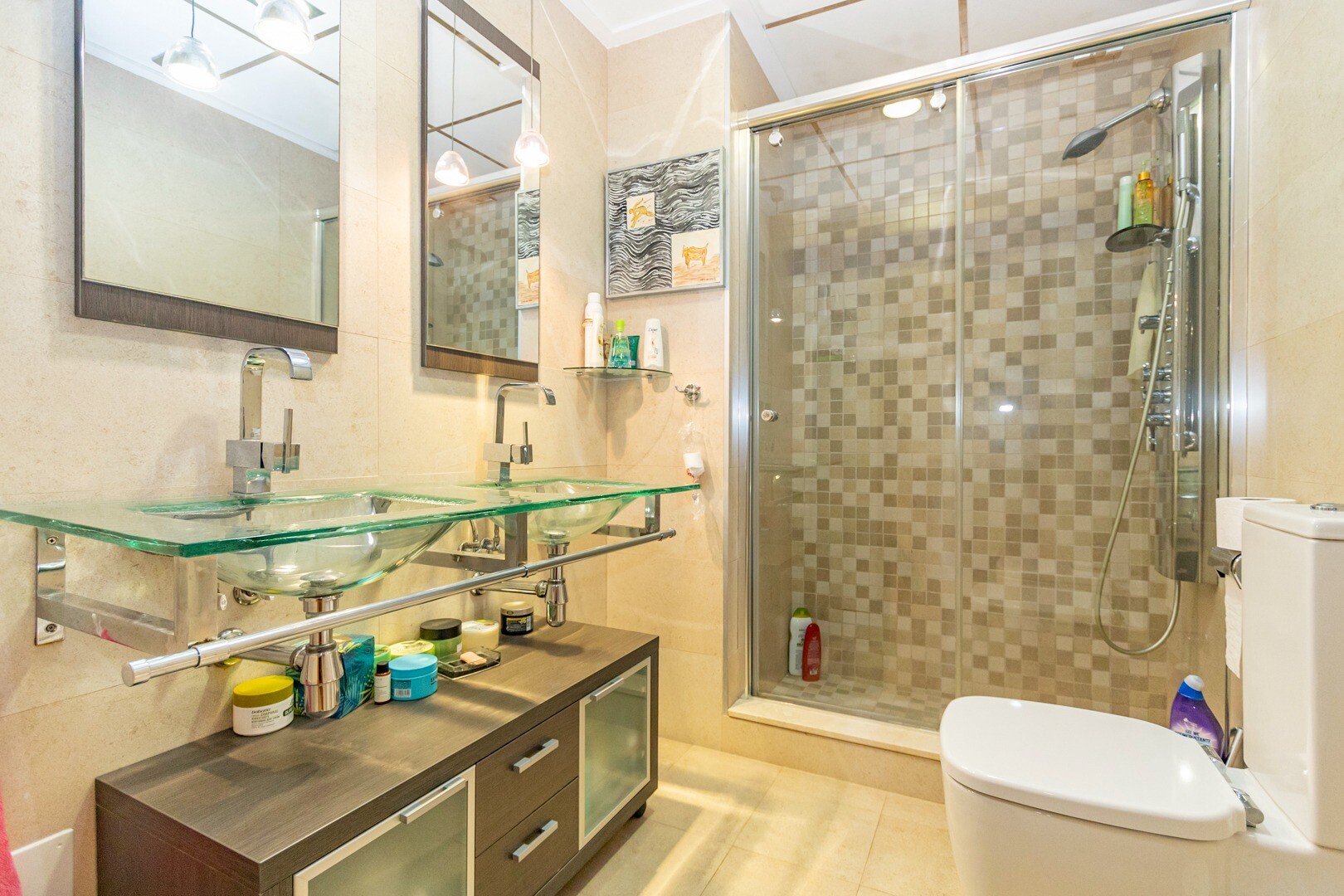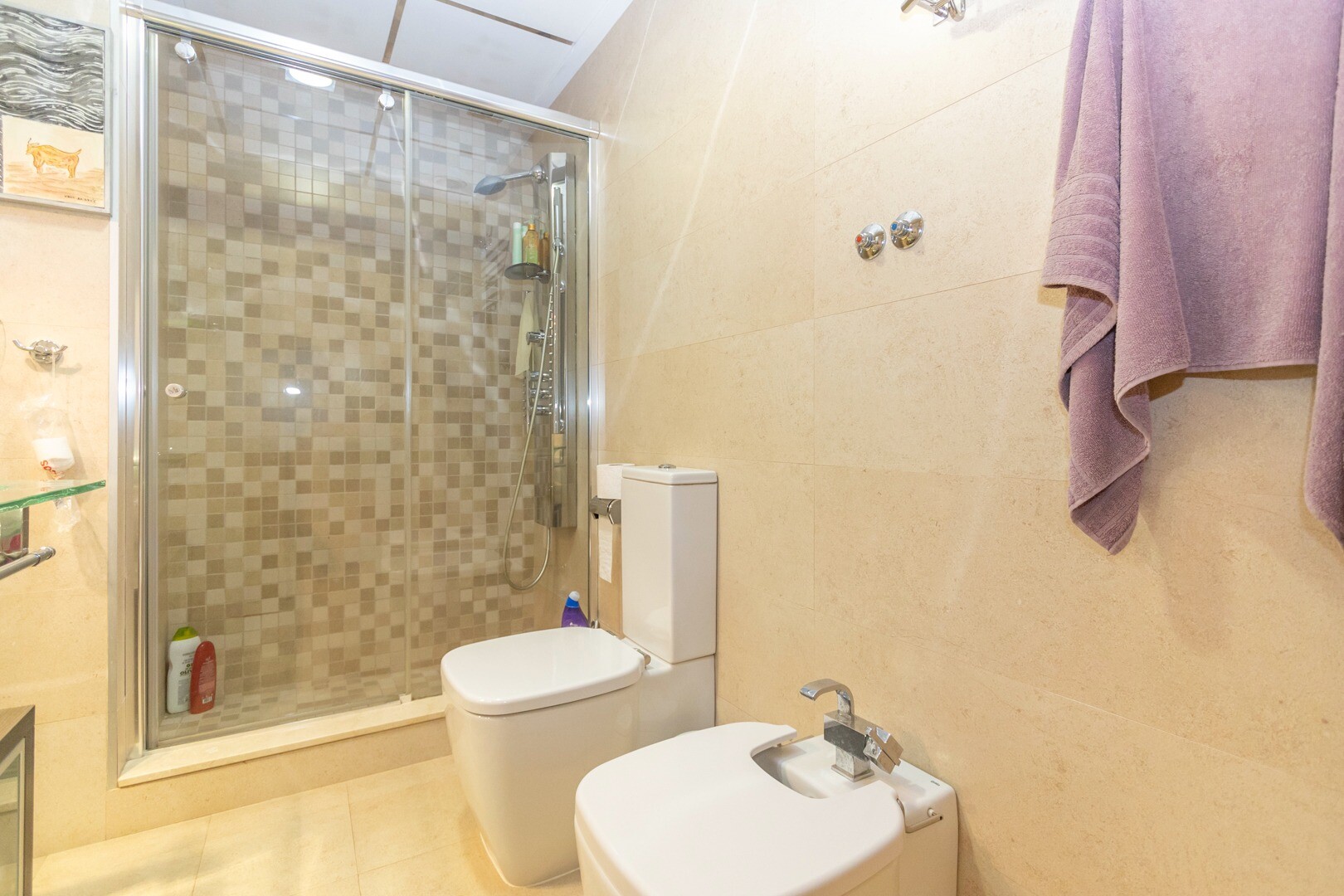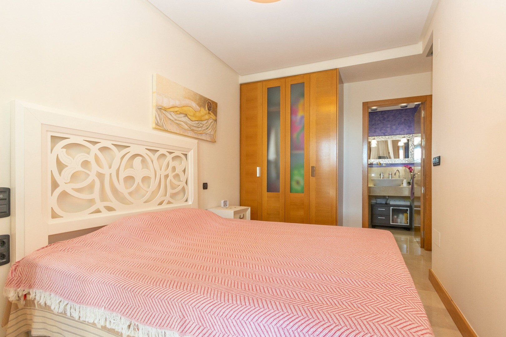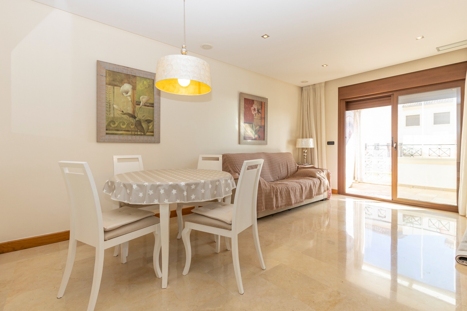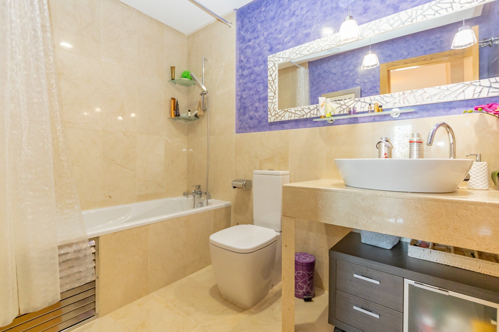 Bottenvåningslägenhet, i ett slutet bostadsområde, med direkt tillgång till trädgårdsområdet med pool och trädgårdar. Huset består av 2 sovrum och 2 badrum, med ett fristående kök med galleri och uteplats, vardagsrum och matsal samt de 2 sovrummen med tillgång till en stor inglasad terrass. Bostaden har byggts med material och ytbehandlingar av hög...sta kvalitet, hemmet har motoriserade persienner, hemautomationssystem, kassaskåp, luftkonditionering och många fler detaljer. Bostaden har en stor sommarpool och en vinterpool, bastu, gym, paddeltennisbana, minigolf och vackra trädgårdsområden som grannarna kan njuta av. I priset ingår en parkeringsplats i byggnadens källare. Huset säljs med alla möbler och vitvaror.