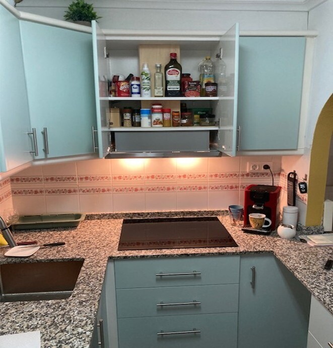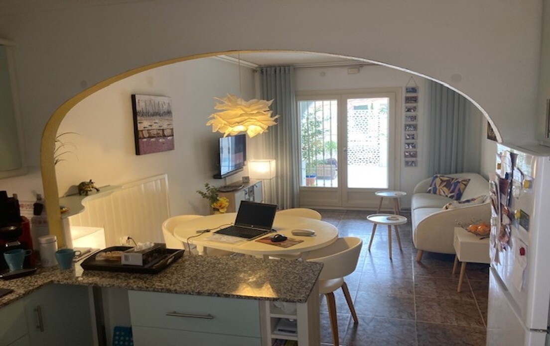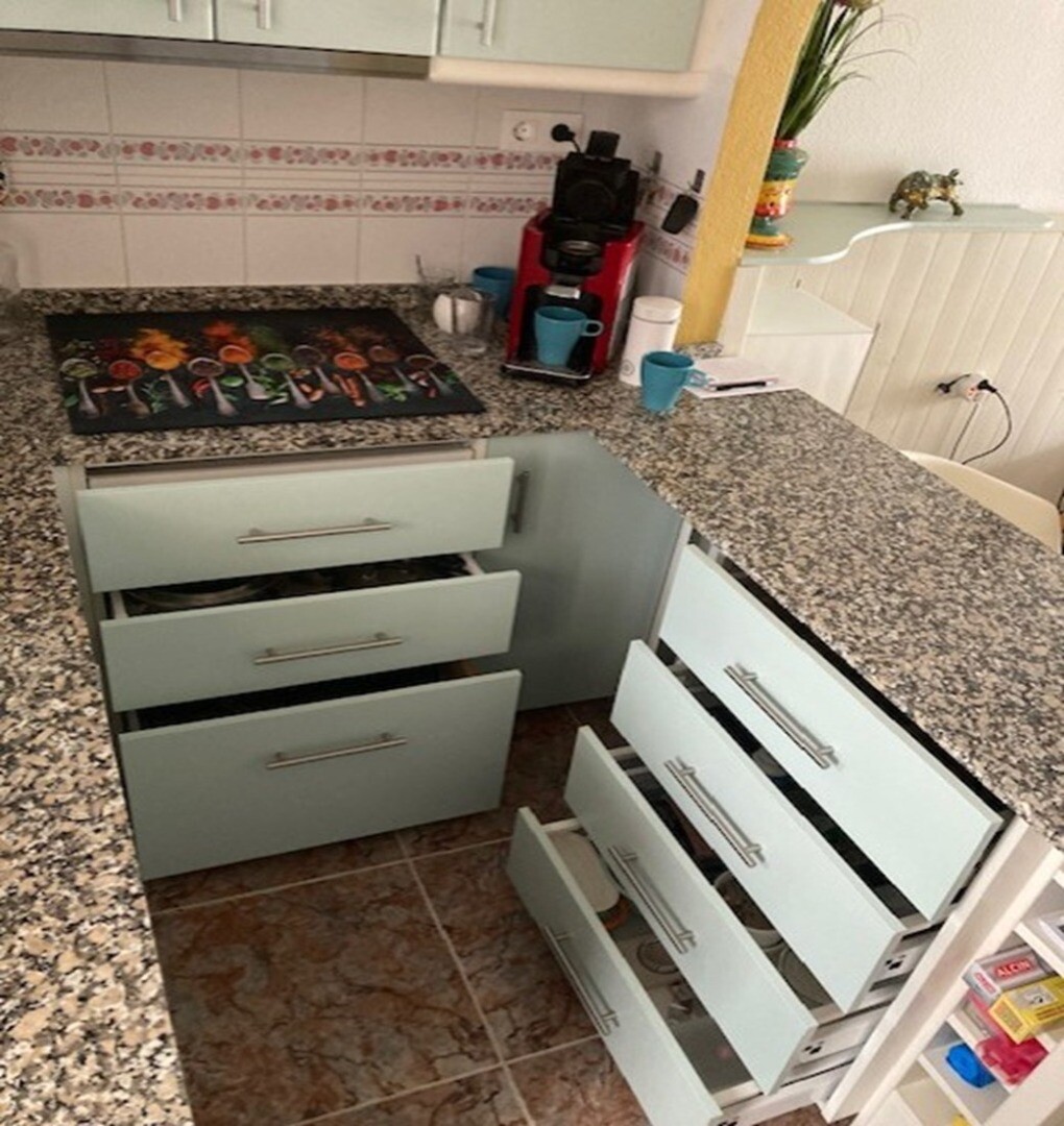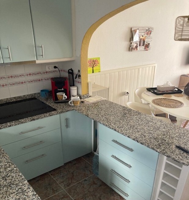 Lägenhet på bottenvåningen med två rymliga terrasser, bara 1 km från stranden. Komplexet har två gemensamma pooler. Lägenheten har nyligen utrustats med nya köksapparater och ett helt renoverat badrum. Rummen har också målats om helt.