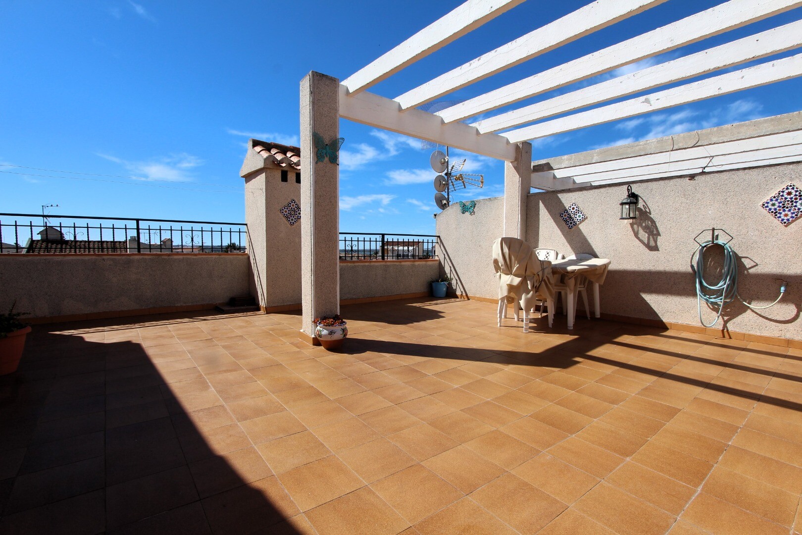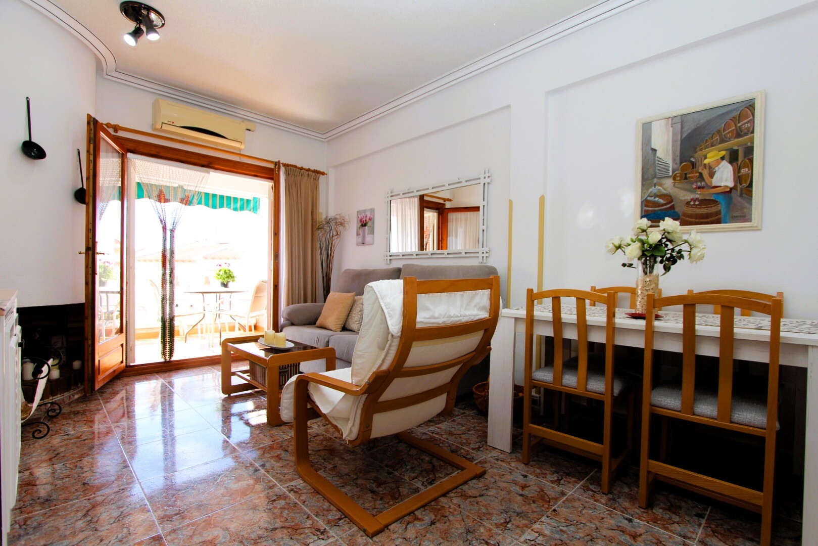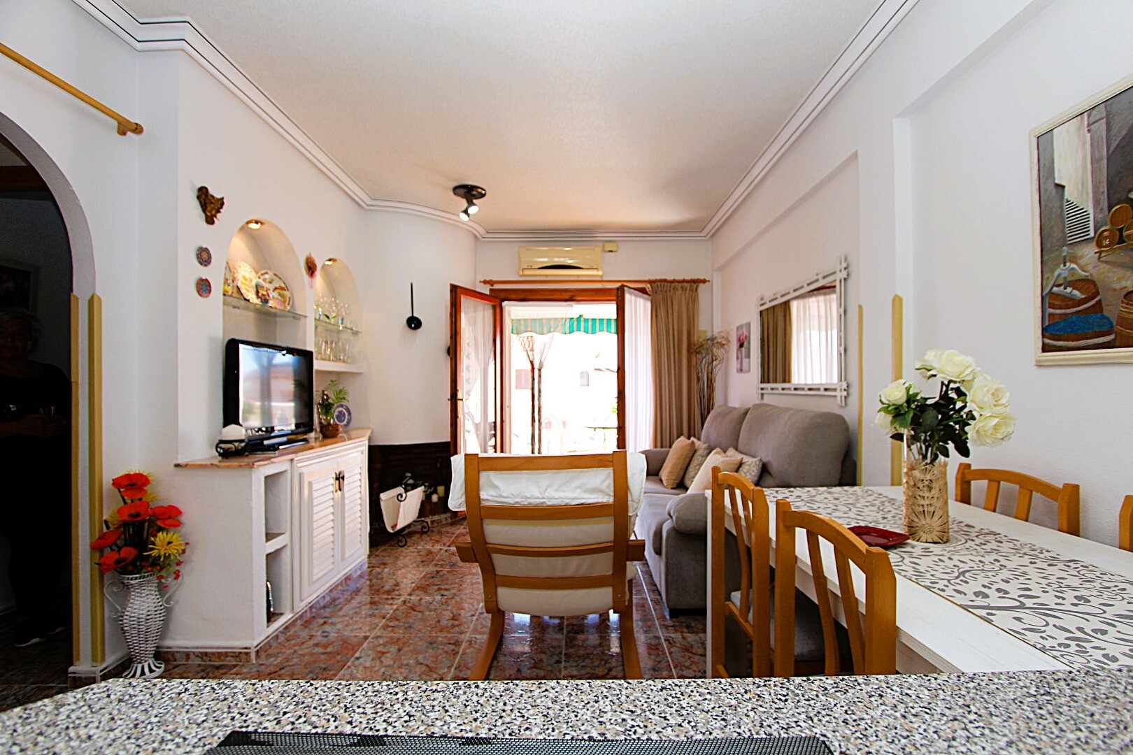 Kan du tänka dig att bo i en lugn miljö där du kan njuta av den medelhavssolen året runt? Vi erbjuder dig denna mysiga lägenhet på första våningen, belägen i bostadsområdet El Moncayo i Guardamar del Segura, provinsen Alicante, Spanien. Fastigheten är mycket välskött och i perfekt skick för inflyttning, så du behöver inte oroa dig för renoveringar.... Bostaden har två sovrum, ett badrum, en terrass vid ingången i söderläge och en rymlig solterrass på övervåningen, där du kan koppla av utan några som helst bekymmer. Bostadsområdet har två gemensamma pooler, där du kan njuta av sköna stunder under de varmaste dagarna. De välkända stränderna i Guardamar del Segura ligger cirka 5 minuters bilresa bort. Kontakta oss för mer information och för att boka en visning! Vi hjälper dig gärna!