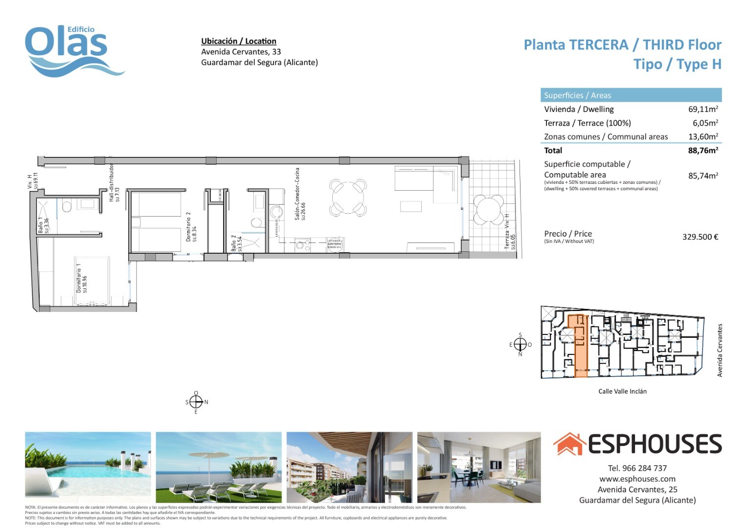 Beläget i ett eftertraktat läge i Guardamar del Segura, på den populära Avenida de Cervantes, hittar du Edificio Olas, ett perfekt val på grund av dess närhet till stranden och ett brett utbud av bekvämligheter. Denna speciella byggnad kommer att erbjuda en pool och en takterrass, vilket ger den perfekta miljön för att njuta av solen och koppla av.... Lägenheten i fråga kommer att ha två sovrum, två badrum, ett vardagsrum med matplats och ett integrerat kök samt en härlig terrass. Lägenhetens byggyta är 85,74 kvadratmeter och terrassen är 6,05 kvadratmeter, vilket ger ett bekvämt och mysigt utrymme. Förutom den attraktiva designen kommer lägenheten att vara utrustad med luftkonditionering och hemautomatisering, vilket ger effektiv och bekväm kontroll av olika aspekter av hemmet. Köket kommer att vara utrustat med högkvalitativa apparater, inklusive ugn, diskmaskin, kyl och frys, fläktkåpa och induktionshäll, vilket garanterar funktionalitet och stil. Som en extra bonus finns det möjlighet att förvärva en parkeringsplats och ett förråd i själva byggnaden, vilket underlättar säker förvaring av tillhörigheter och erbjuder bekvämligheten med att ha din egen parkeringsplats. Edificio Olas presenterar sig som ett unikt tillfälle att njuta av ett bekvämt och bekvämt liv i ett av de mest eftertraktade områdena i Guardamar del Segura. Det privilegierade läget, tillsammans med lägenhetens funktioner och fördelar, gör detta till ett idealiskt val för dem som letar efter ett modernt och elegant hem i en kustnära miljö.
