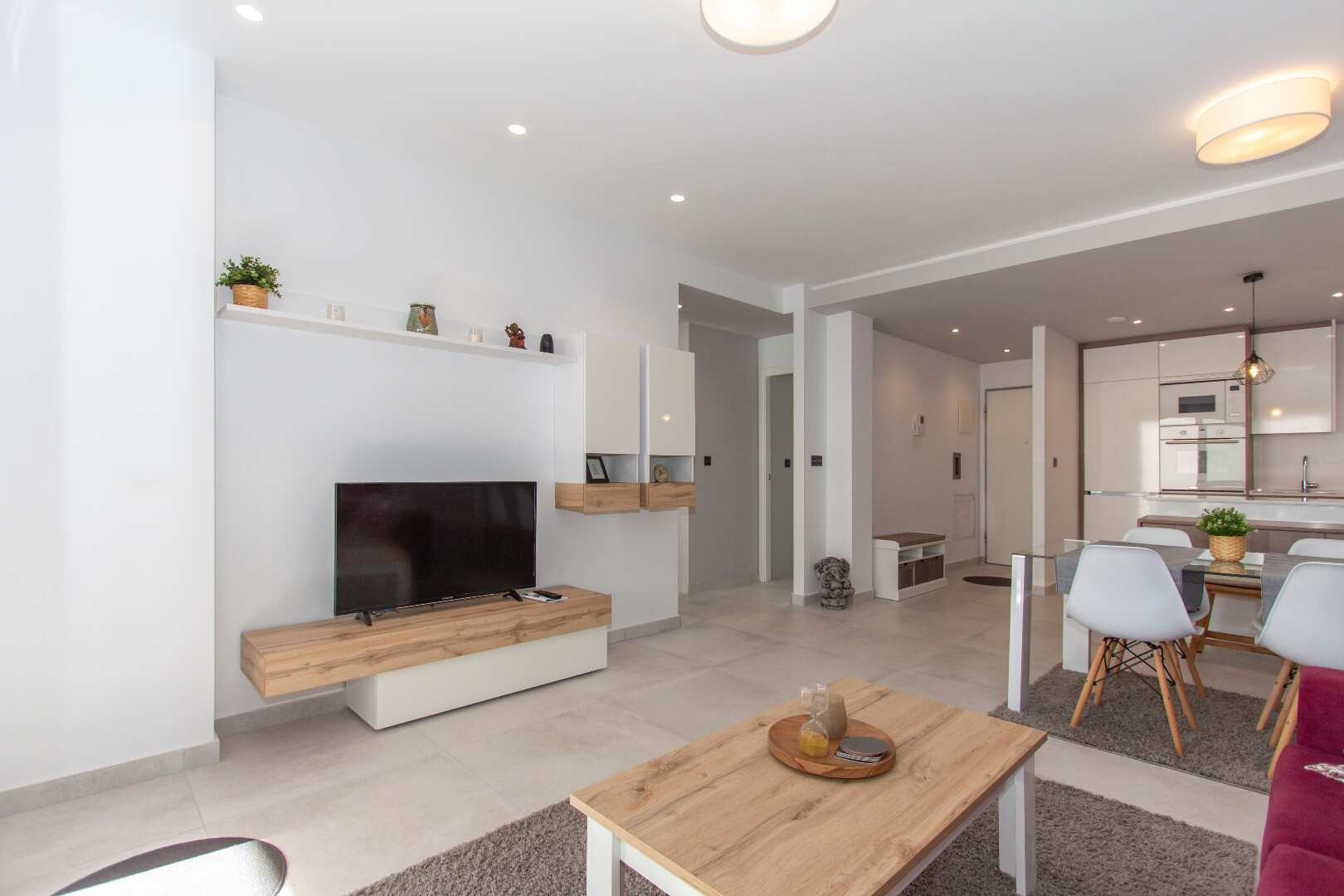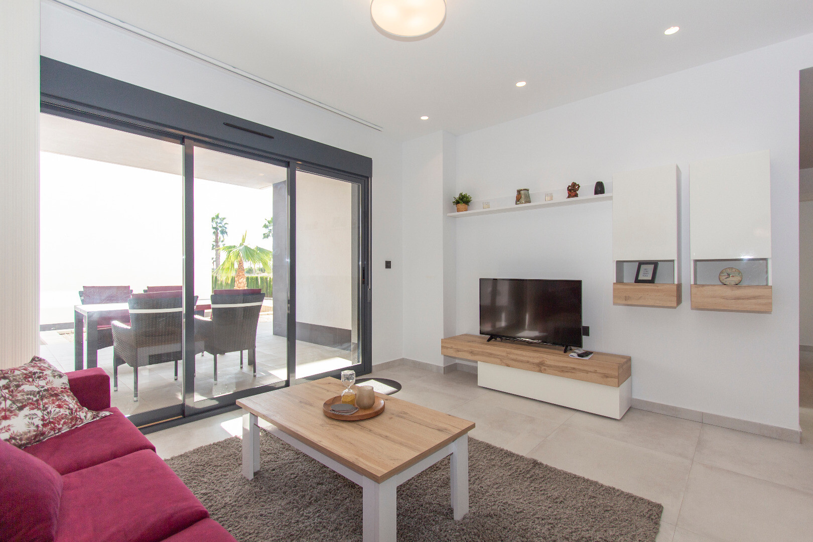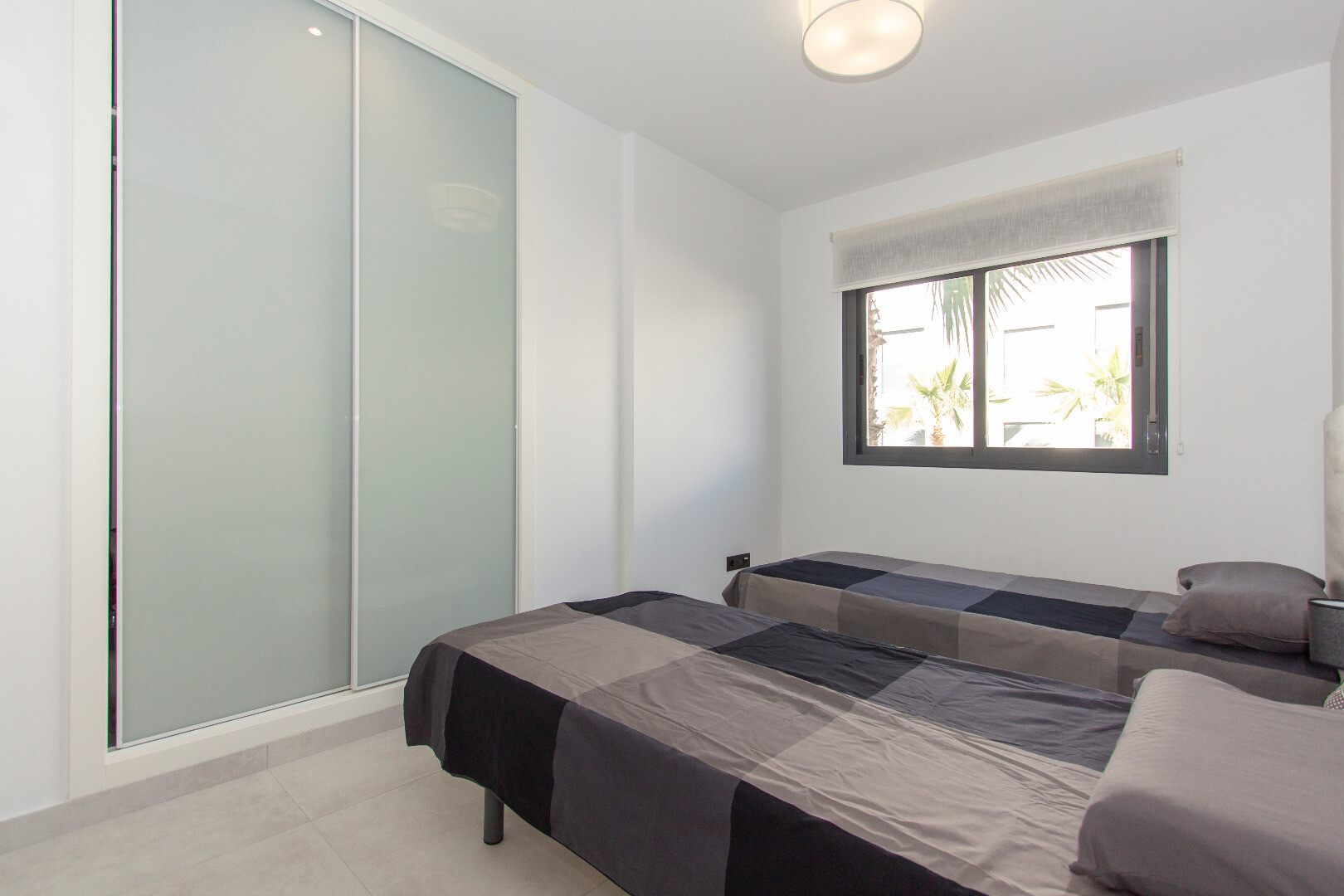 Mycket välskött lägenhet på bottenvåningen i urbaniseringen El Raso. På gångavstånd till alla tänkbara bekvämligheter. Superette, restauranger, tapasbarer, veterinär, apotek, bankomat, Chino Bazar, söndagsmarknaden 'Lemon Tree Market'. I början av urbaniseringen finns en busshållplats där du kan ta dig till strandpromenaden i Guardamar del Segura m...ed pendelbussen, som går hela dagen till alla stadsdelar. Lägenheten har en rymlig underjordisk parkeringsplats som ingår i priset. Den säljs med kompletta möbler och dekorationer, förutom dina egna personliga föremål som kläder och vårdprodukter.