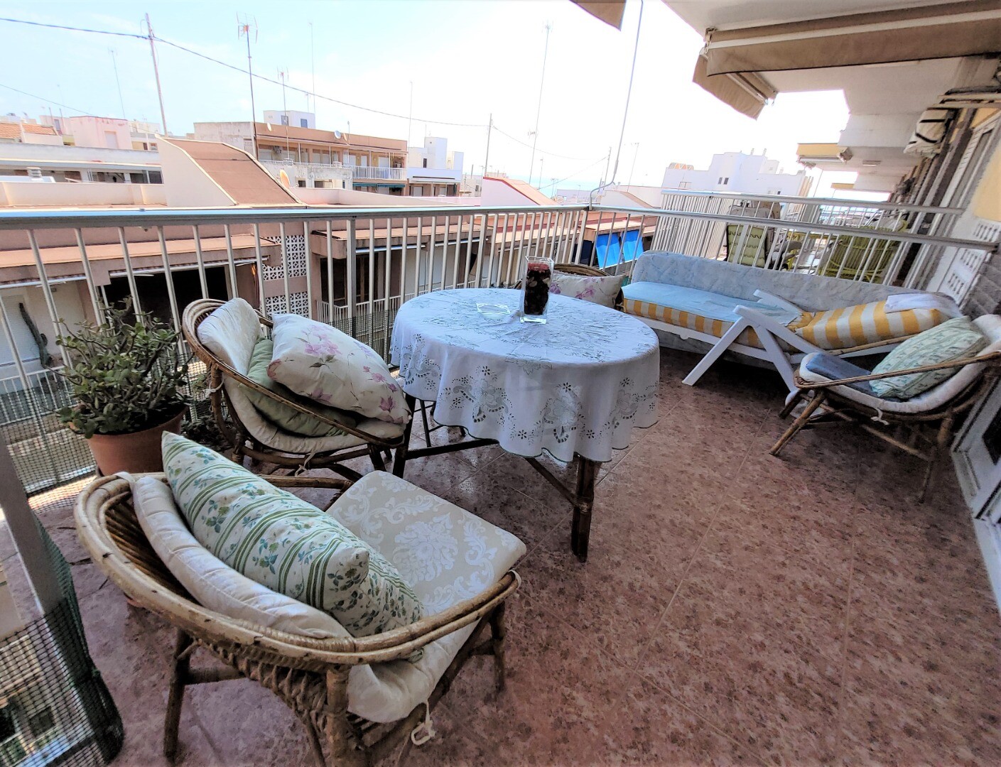 Vi presenterar denna mysiga lägenhet med 3 sovrum, stor terrass och havsutsikt, bara några steg från stranden i Guardamar del Segura, Alicante, Spanien.