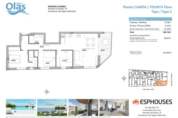 Beläget i ett av de mest eftertraktade områdena i Guardamar del Segura, på den prestigefyllda Avenida de Cervantes, kommer Edificio Olas att vara ett perfekt alternativ på grund av dess närhet till stranden och ett brett utbud av tjänster. Denna magnifika byggnad kommer att erbjuda sina invånare en unik upplevelse, med bekvämligheten av en pool och... ett takterrass.