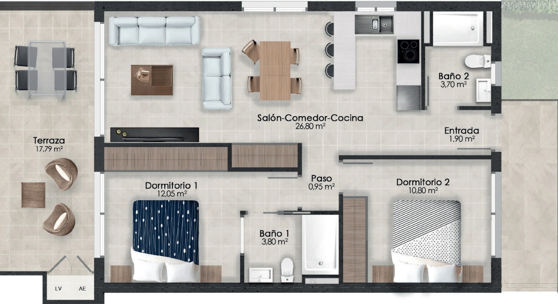 Nybyggda lägenheter med utsikt över golfbanan. Valfritt kan lägenheten kompletteras med: möbel- och inredningspaket och köksmaskiner från 10 950 €, luftkonditioneringsmaskin från 2 900 € och golvvärme i badrummen från 550 €/badrum. Residenset har en bra förbindelse till Murcia-Corveras flygplats på bara 30 minuter.