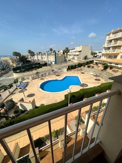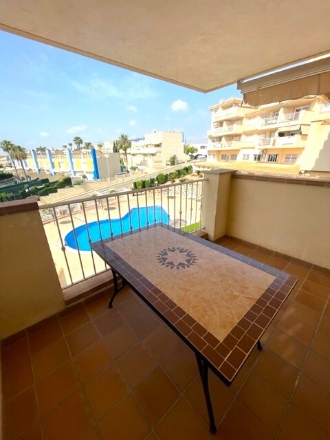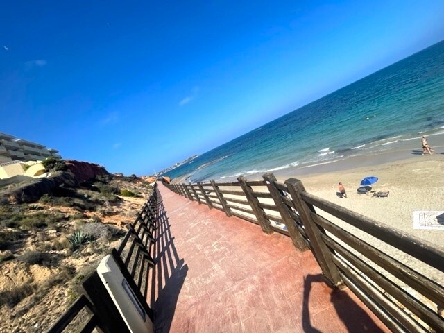 Spektakulär lägenhet med öppen havsutsikt i urbaniseringen Aguamarina i Dehesa de Campoamor. Huset ligger några meter från vackra Playa Aquamarina och från alla tänkbara bekvämligheter och tjänster (konsumera snabbköp, apotek, vårdcentral, franskt bageri, busshållplats, barer och restauranger på "STRIP" i Cabo Roig inom gångavstånd.