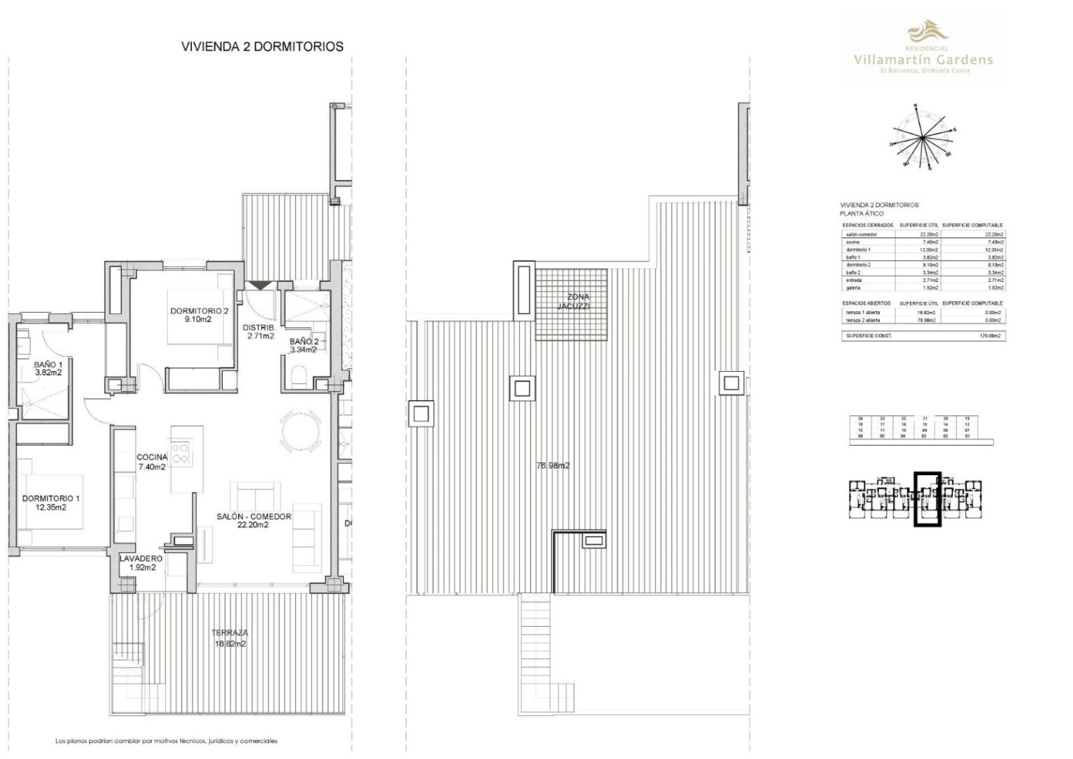 Solarium 77m2. Lägenheten är strategiskt belägen i hjärtat av Villamartín, bara 3 km från stranden och med gångavstånd till alla tänkbara bekvämligheter som apotek, stormarknader och restauranger. Dessutom ligger det bara 1,5 km