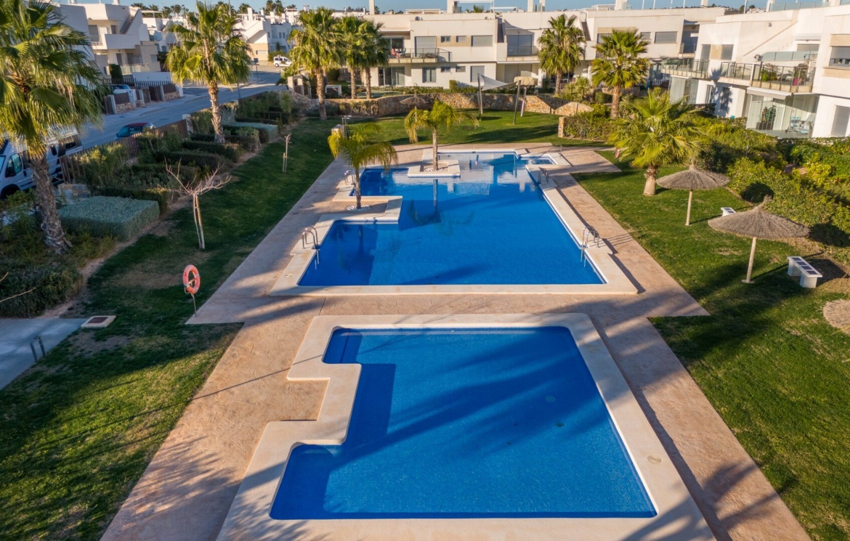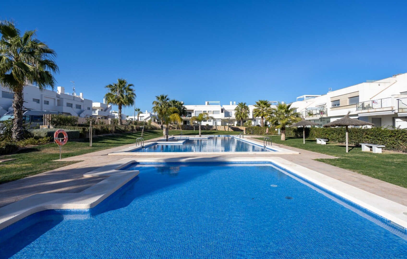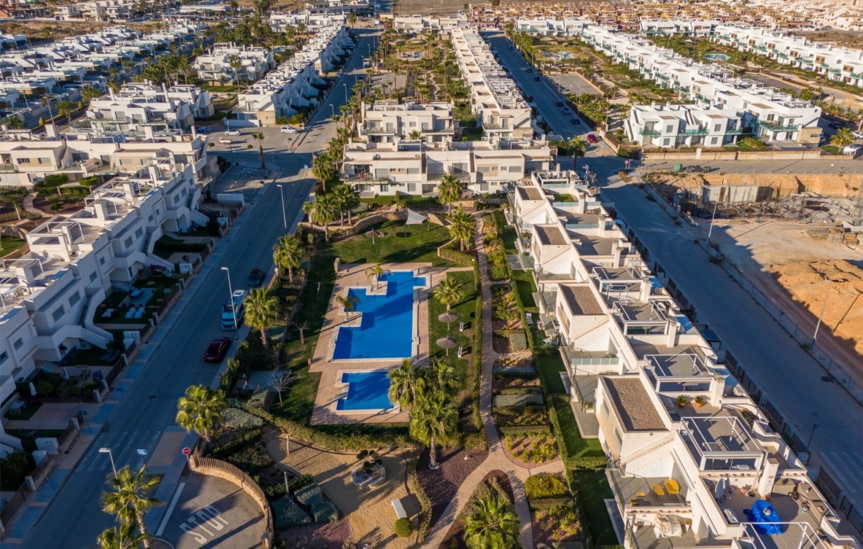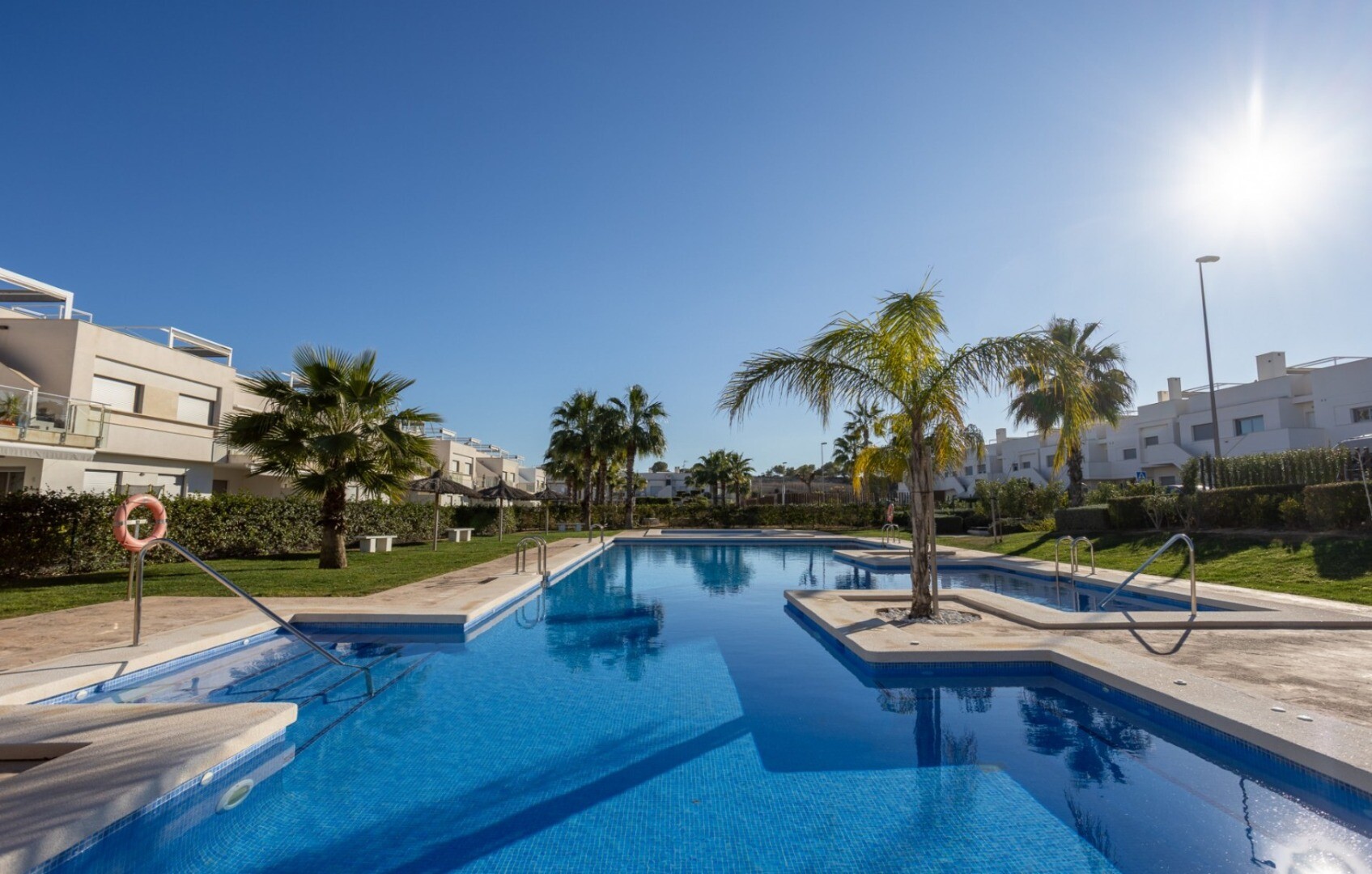 Denna lägenhet ligger bara 500 m från det kommersiella centrumet med barer, restauranger, en bankomat och ett snabbköp och 1000 m från golfbanan, engelska bowls och Padelbanor. Vistabella Golf ska mer ses som en liten Pueblo med alla bekvämligheter som bankautomat, snabbköp, olika barer och restauranger, apotek....med fördelen att det är en helt sä...ker zon med 1 ingång och utgång via en säkerhetspost där varje bils registreringsskylt registreras elektroniskt. Kostnaderna för säkerheten står helt och hållet för Vistabella Golf och arrangören själv. Härifrån går det en fast bussförbindelse varje torsdag mellan Vistabella och La Zenia Shopping Boulevard. Det finns även en fast busslinje mellan Orihuela och Torrevieja. Från Vistabella Golf kan alla kuststäder i Orihuela Costa nås på cirka 15 minuter med bil. Alicantes flygplats kan nås på cirka 40 minuter och Corvera (Murcia) på cirka en timme.