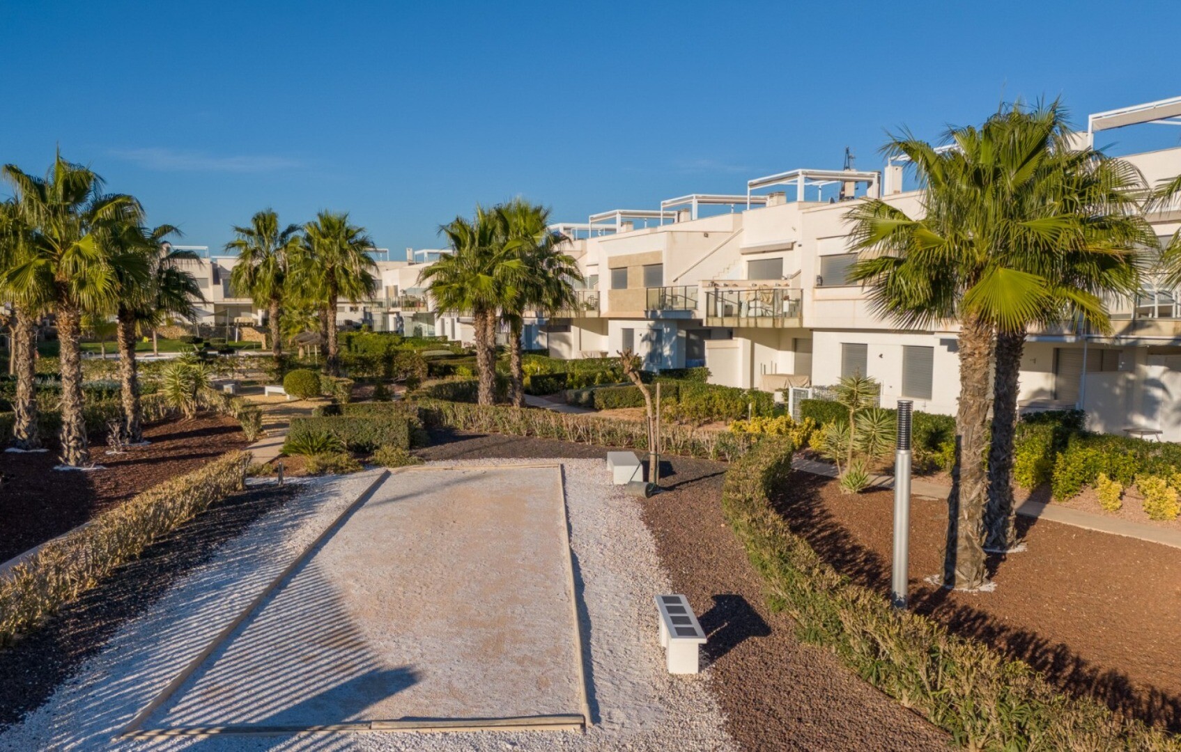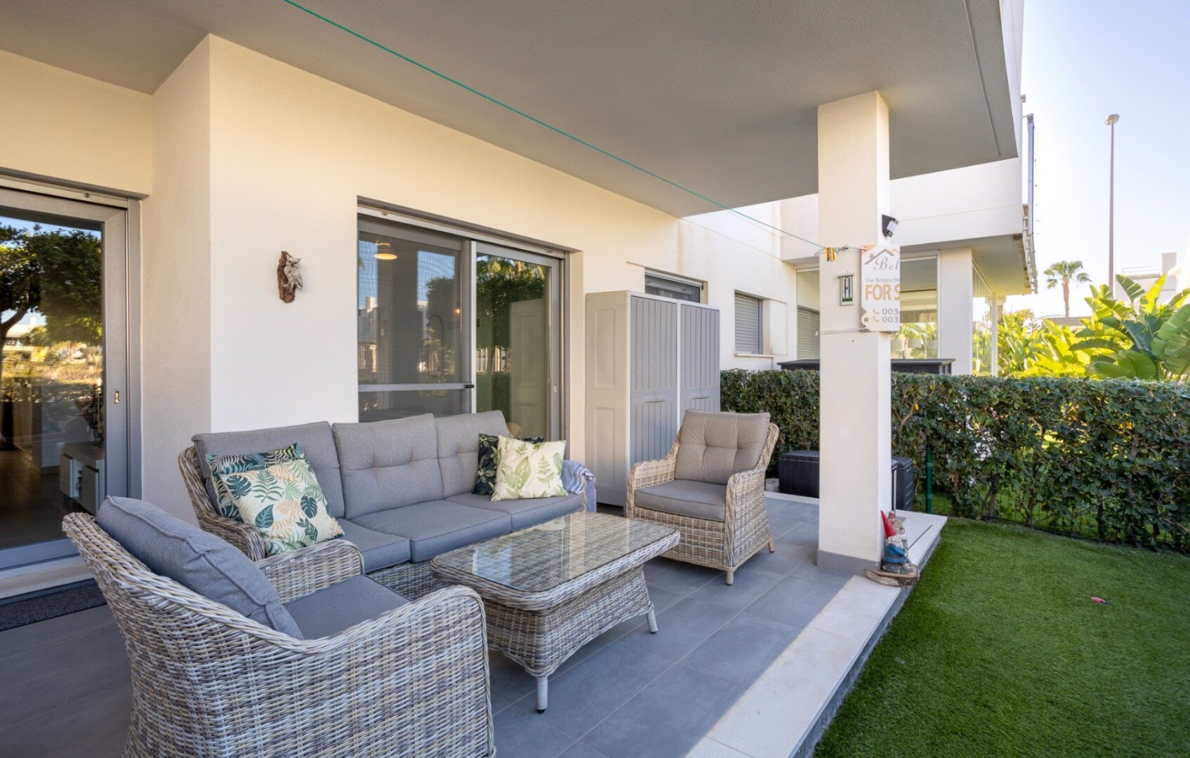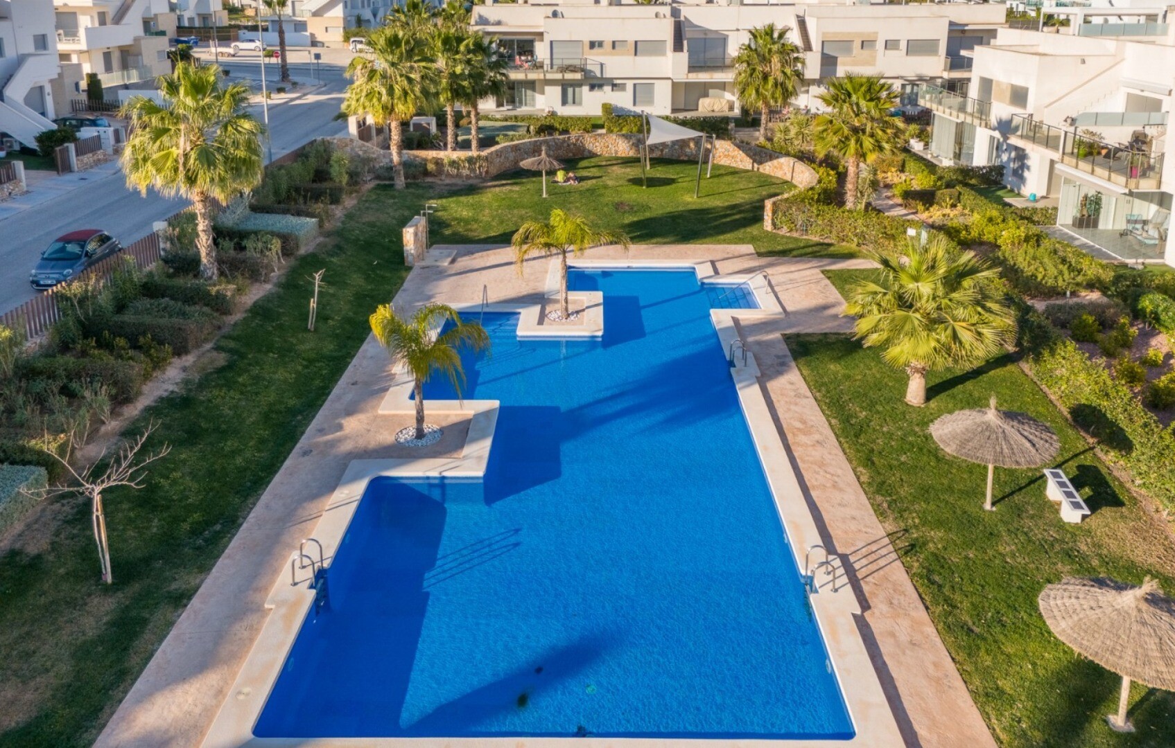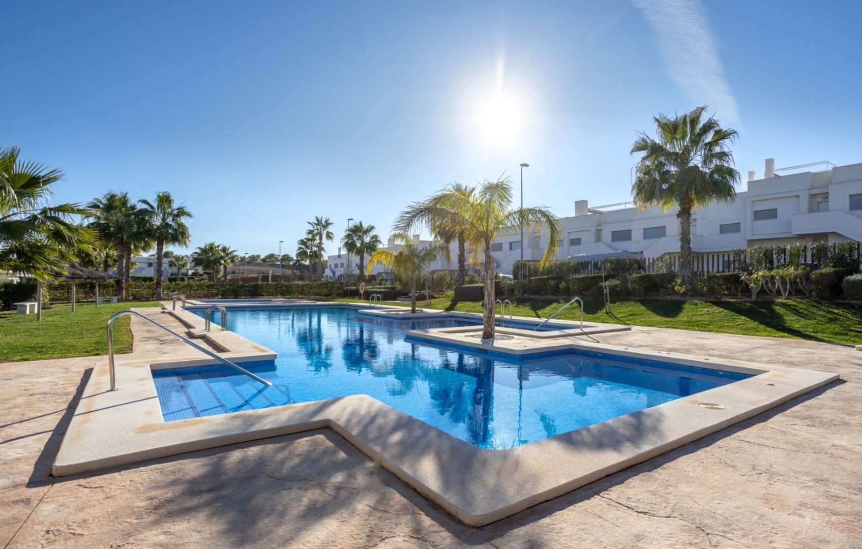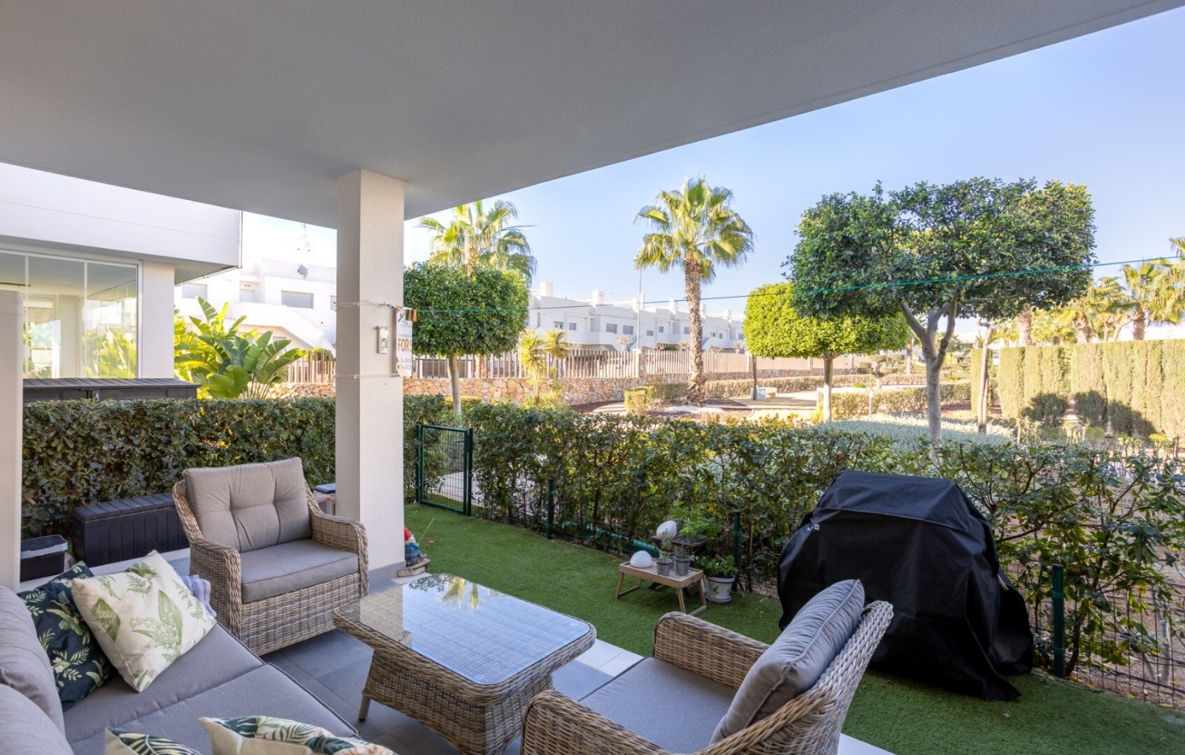 Denna lägenhet ligger bara 500 m från det kommersiella centrumet med barer, restauranger, en bankomat och ett snabbköp och 1000 m från golfbanan, engelska bowls och Padelbanor. Vistabella Golf ska mer ses som en liten Pueblo med alla bekvämligheter som bankautomat, snabbköp, olika barer och restauranger, apotek....med fördelen att det är en helt sä...ker zon med 1 ingång och utgång via en säkerhetspost där varje bils registreringsskylt registreras elektroniskt. Kostnaderna för säkerheten står helt och hållet för Vistabella Golf och arrangören själv. Härifrån går det en fast bussförbindelse varje torsdag mellan Vistabella och La Zenia Shopping Boulevard. Det finns även en fast busslinje mellan Orihuela och Torrevieja. Från Vistabella Golf kan alla kuststäder i Orihuela Costa nås på cirka 15 minuter med bil. Alicantes flygplats kan nås på cirka 40 minuter och Corvera (Murcia) på cirka en timme.