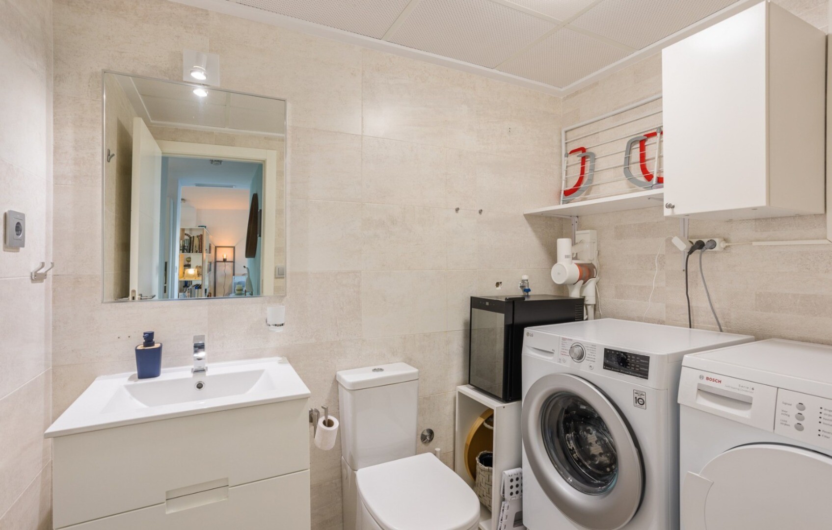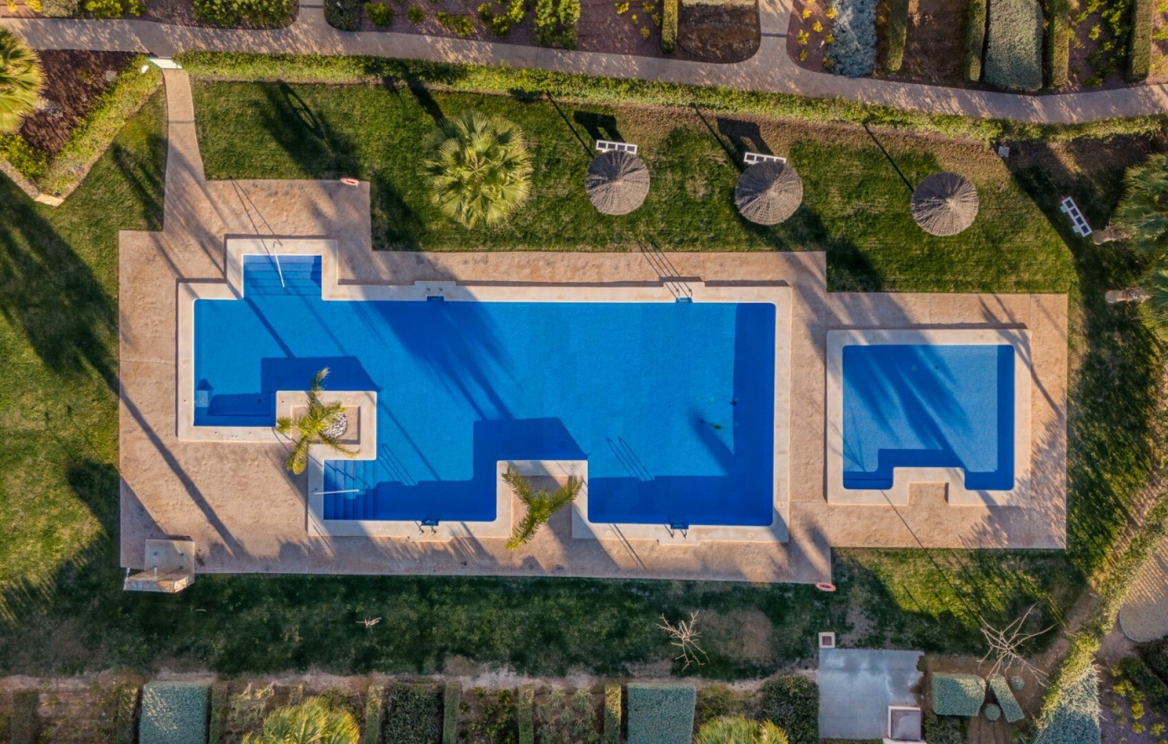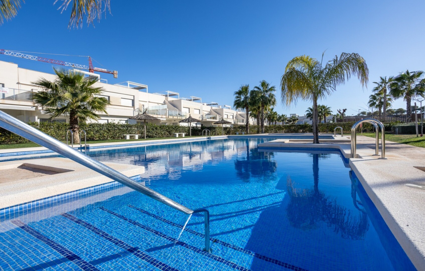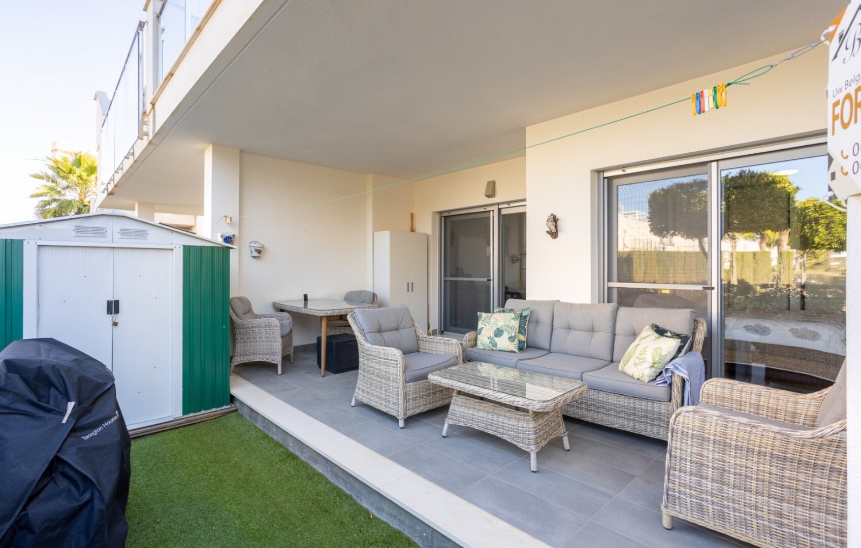 Denna lägenhet ligger bara 500 m från det kommersiella centrumet med barer, restauranger, en bankomat och ett snabbköp och 1000 m från golfbanan, engelska bowls och Padelbanor. Vistabella Golf ska mer ses som en liten Pueblo med alla bekvämligheter som bankautomat, snabbköp, olika barer och restauranger, apotek....med fördelen att det är en helt sä...ker zon med 1 ingång och utgång via en säkerhetspost där varje bils registreringsskylt registreras elektroniskt. Kostnaderna för säkerheten står helt och hållet för Vistabella Golf och arrangören själv. Härifrån går det en fast bussförbindelse varje torsdag mellan Vistabella och La Zenia Shopping Boulevard. Det finns även en fast busslinje mellan Orihuela och Torrevieja. Från Vistabella Golf kan alla kuststäder i Orihuela Costa nås på cirka 15 minuter med bil. Alicantes flygplats kan nås på cirka 40 minuter och Corvera (Murcia) på cirka en timme.