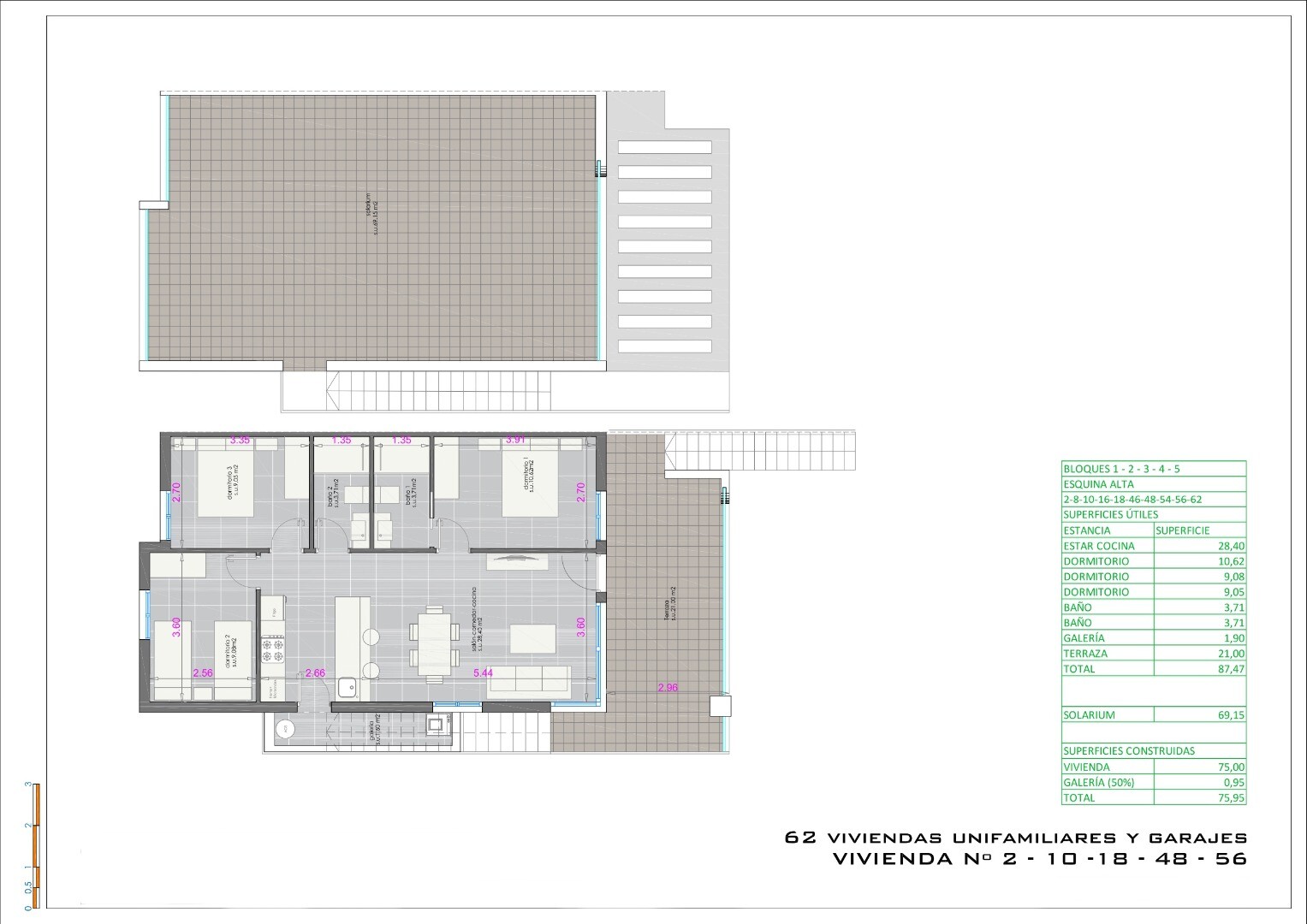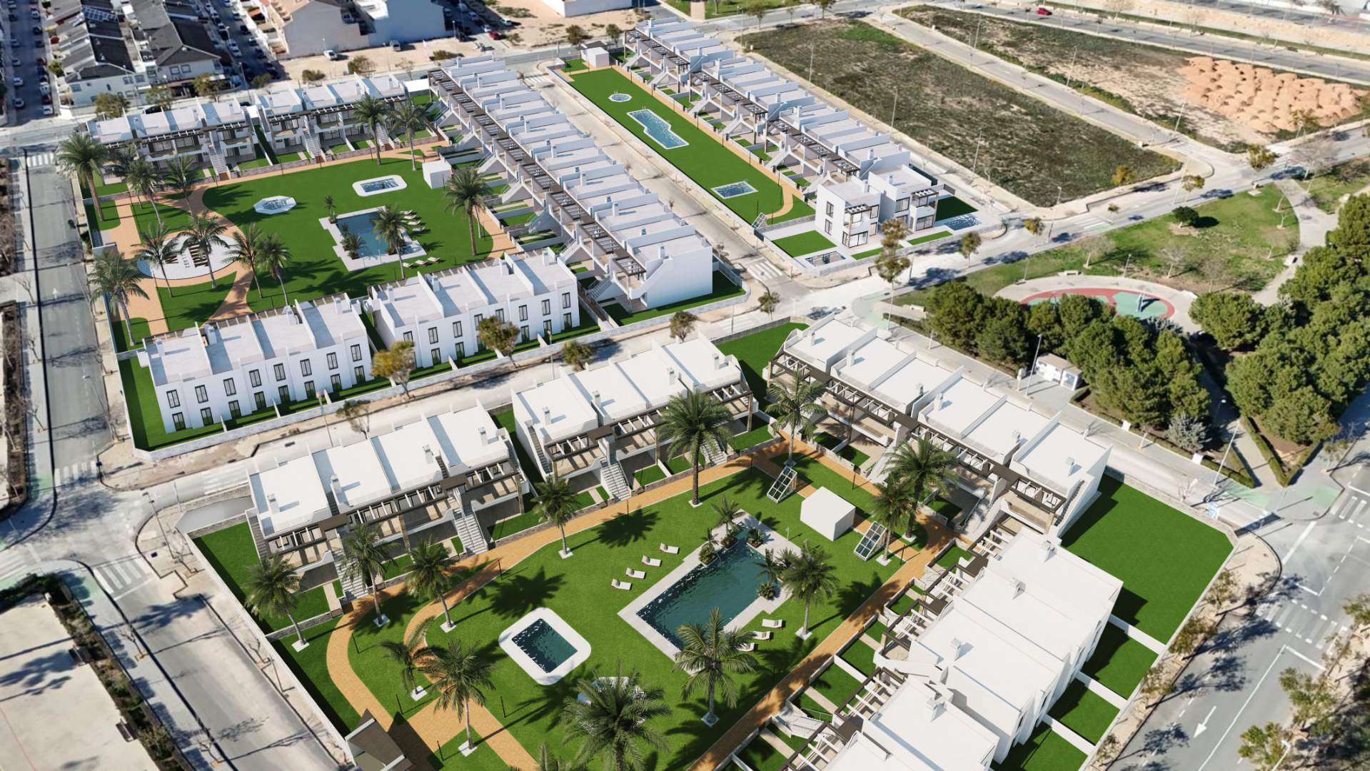 Ett bostadskomplex på fem kvarter med totalt 62 lägenheter. Bottenvåningarna har en trädgård, medan första våningen har en privat takterrass med förberedelser för ett utekök. Komplexet ståtar med en vacker gemensam trädgård och pool, och det finns också ett gym i källaren. Pilar de la Horadada är en typisk spansk stad som är livlig året runt. Alla ...