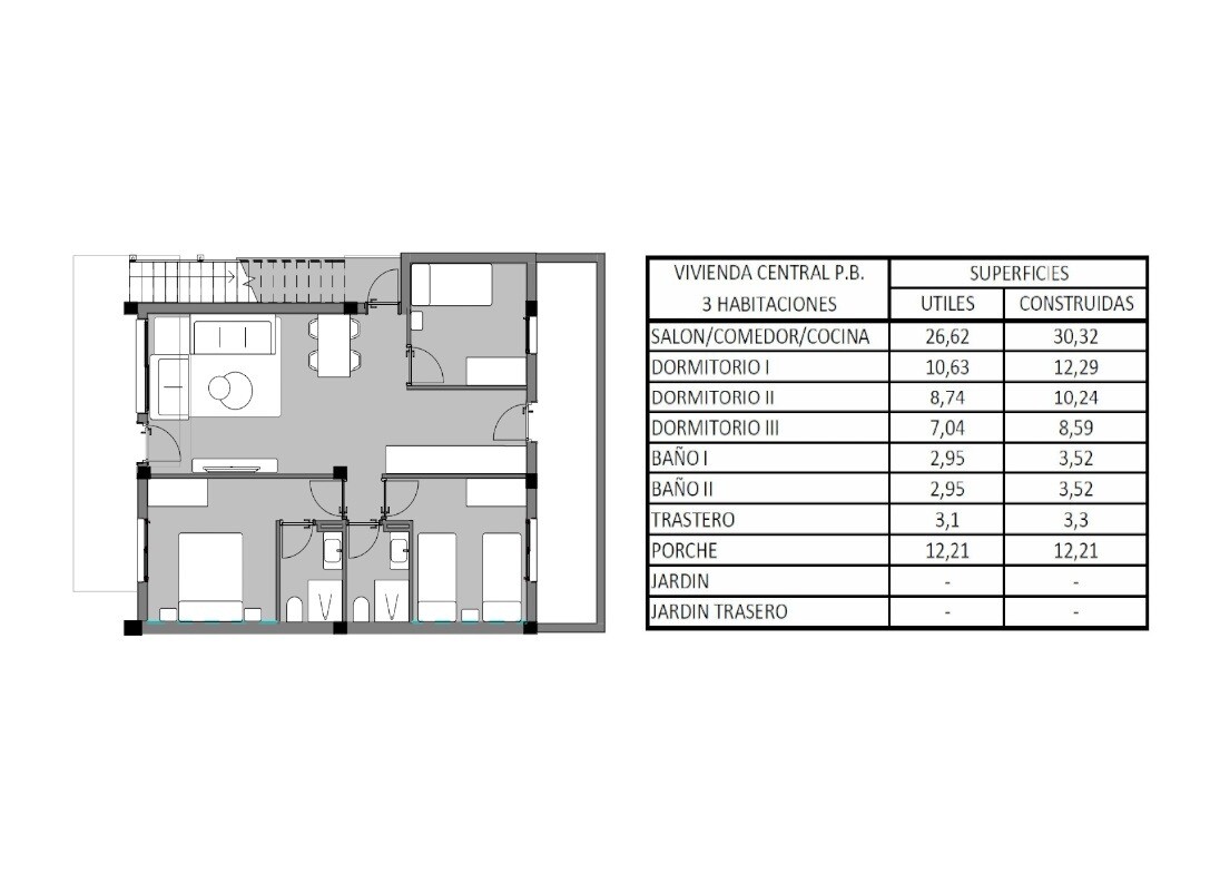 Lägenheterna på bottenvåningen kan fås som en 2- eller 3-rums planlösning. San Miguel de Salinas har god tillgång till Alicantes flygplats via AP-7. På 10 minuter med bil kan du välja mellan 5 golfbanor. Stranden och shoppingboulevarden La Zenia kan också nås på cirka 10 minuter. I San Miguel de Salinas har du alla tänkbara bekvämligheter, stormark...nader, banker, typiska spanska barer och restauranger samt internationella rätter, skolor, idrottsplatser, offentlig simhall m.m.