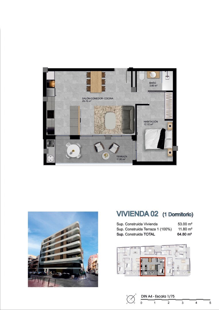 Bo i ett privilegierat klimat, året runt, i ett av de mest mångsidiga områdena på Costa Blanca, i detta bostadshus. Strategiskt beläget i hjärtat av Santa Pola, inbjuder detta bostadshus dig att njuta av en väl uppkopplad livsstil, på en av stadens mest centrala gator, bara 500 meter från stranden och hamnen. Byggnaden består av 15 bostäder i olika... stilar, så att du kan välja det som bäst passar dina behov. Välj mellan lägenheter och takvåningar upp till 121 m², alla med 2 sovrum och 2 badrum. Lägenheter med 1 och 3 sovrum finns också tillgängliga. Alla bostäder har rymliga vardagsrum och matsalar med öppen planlösning, integrerade med ett fullt utrustat kök. För extra bekvämlighet och förvaringsutrymme finns ytterligare förråd tillgängliga. Varje hem är utformat för att maximera naturligt ljus och medelhavsklimatet, med direkt tillgång till stora terrasser från 10 till 16 m². Dessa utomhusutrymmen utgör en förlängning av hemmet och är perfekta för avkoppling, måltider utomhus eller helt enkelt njutning av havsbrisen i en privat och bekväm miljö. Dessutom har takvåningarna ett stort solarium, vilket gör det möjligt för de boende att anpassa sitt utomhusutrymme med alternativ som grill, dusch, handfat, plats för ett kompakt kylskåp och exklusiva trädgårdsmöbler. Bostadsbyggnaden ligger 500 meter från hamnen och Santa Pola-stranden, vilket ger de boende möjlighet att njuta av livet vid havet till fullo. Med sina fina sandstränder är området perfekt för avkoppling i solen eller för att utöva vattensporter som vindsurfing, parasailing, kajakpaddling och dykning. För naturälskare ligger naturparken Las Salinas de Santa Pola bara 15 minuters bilresa bort. Det är ett verkligt reservat för biologisk mångfald med arter som rosa flamingo. Detta område är perfekt för vandring och utomhusaktiviteter. Alicantes flygplats ligger cirka 15 minuter bort.