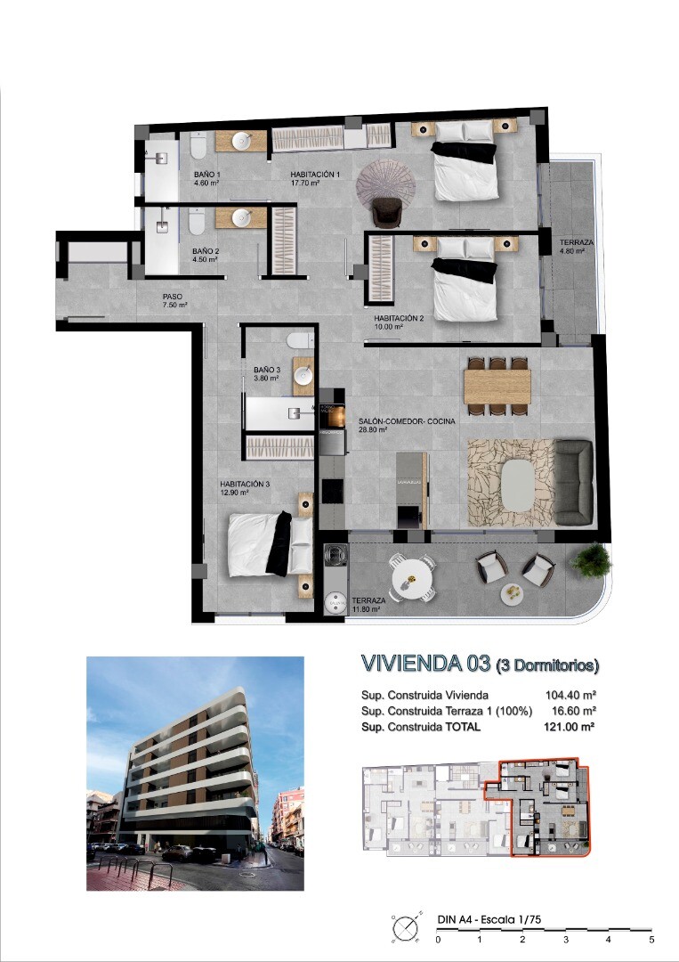 Bo i ett privilegierat klimat, året runt, i ett av de mest mångsidiga områdena på Costa Blanca, i detta bostadshus. Strategiskt beläget i hjärtat av Santa Pola, inbjuder detta bostadshus dig att njuta av en väl uppkopplad livsstil, på en av stadens mest centrala gator, bara 500 meter från stranden och hamnen. Byggnaden består av 15 bostäder i olika... stilar, så att du kan välja det som bäst passar dina behov. Välj mellan lägenheter och takvåningar upp till 121 m², alla med 2 sovrum och 2 badrum. Lägenheter med 1 och 3 sovrum finns också tillgängliga. Alla bostäder har rymliga vardagsrum och matsalar med öppen planlösning, integrerade med ett fullt utrustat kök. För extra bekvämlighet och förvaringsutrymme finns ytterligare förråd tillgängliga. Varje hem är utformat för att maximera naturligt ljus och medelhavsklimatet, med direkt tillgång till stora terrasser från 10 till 16 m². Dessa utomhusutrymmen utgör en förlängning av hemmet och är perfekta för avkoppling, måltider utomhus eller helt enkelt njutning av havsbrisen i en privat och bekväm miljö. Dessutom har takvåningarna ett stort solarium, vilket gör det möjligt för de boende att anpassa sitt utomhusutrymme med alternativ som grill, dusch, handfat, plats för ett kompakt kylskåp och exklusiva trädgårdsmöbler. Bostadsbyggnaden ligger 500 meter från hamnen och Santa Pola-stranden, vilket ger de boende möjlighet att njuta av livet vid havet till fullo. Med sina fina sandstränder är området perfekt för avkoppling i solen eller för att utöva vattensporter som vindsurfing, parasailing, kajakpaddling och dykning. För naturälskare ligger naturparken Las Salinas de Santa Pola bara 15 minuters bilresa bort. Det är ett verkligt reservat för biologisk mångfald med arter som rosa flamingo. Detta område är perfekt för vandring och utomhusaktiviteter. Alicantes flygplats ligger cirka 15 minuter bort.
