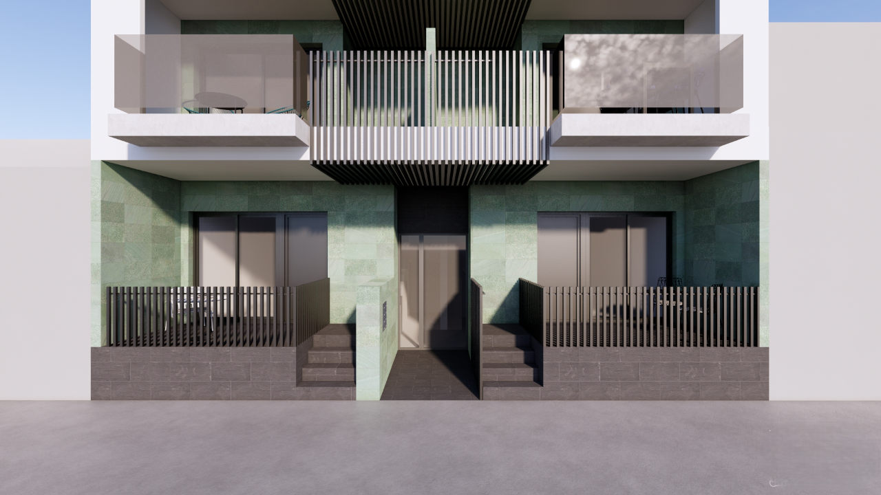 Småskaligt bostadskomplex med 6 lägenheter 100 m från havet i Torre de la Horadada. Lägenheterna har fullt utrustade badrum, kök med keramikhäll, köksfläkt och ugn samt förinstallerad luftkonditionering. Den gemensamma takterrassen har en gemensam pool och ett utekök med två elektriska grillar.