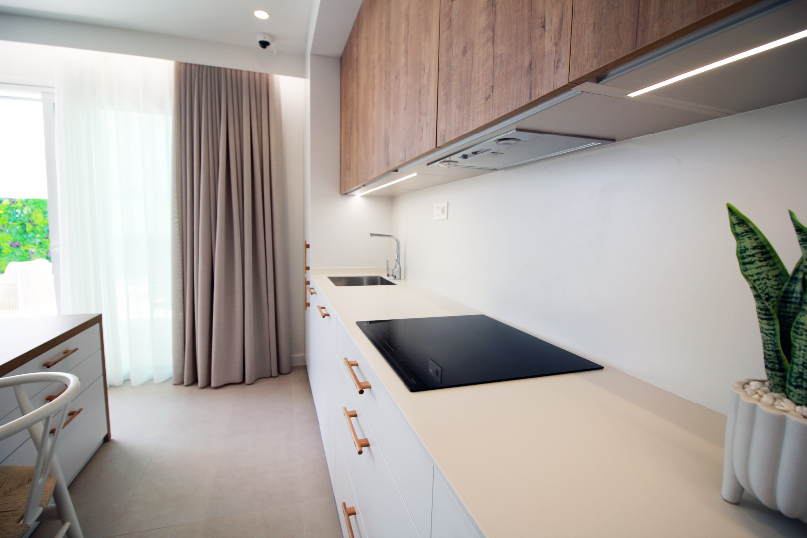 Detta residens "Portomarina Higuericas" ligger bara 400 meter från stranden. Om du vill bo 400 meter från den populäraste stranden i Orihuela Costa, utnyttja denna möjlighet eftersom det bara finns 2 kvar, med leveransdatum sommaren 2025. Alla hus har en privat pool, köksmaskiner (induktionshäll, köksfläkt, ugn, mikrovågsugn, kyl-frys och tvättmask...in), fullt utrustade badrum med duschväggar, handfat med spegel och golvvärme, förinstallation av luftkonditionering med luftkanaler, inomhus och utomhus LED-belysning, varmvattendusch på terrass. Bostäderna har energiklass A, eftersom de använder dubbla Climalit-glas och en solpanel. Torre de la Horadadas centrum, med sina många barer och restauranger, ligger cirka 1 800 meter bort. Murcias och Alicantes flygplatser kan nås på cirka 35 minuter för Murcia respektive 45 minuter för Alicante.