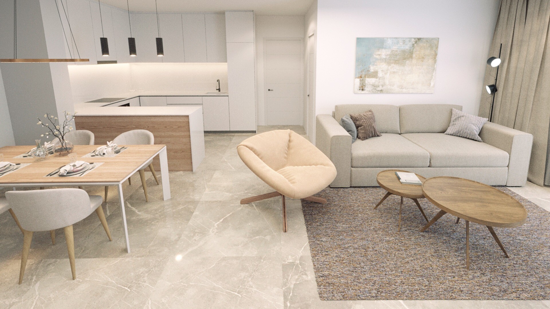Denna moderna nybyggda lägenhet ligger på bottenvåningen i en samtida byggnad, endast 250 meter från Playa del Cura i Torrevieja.