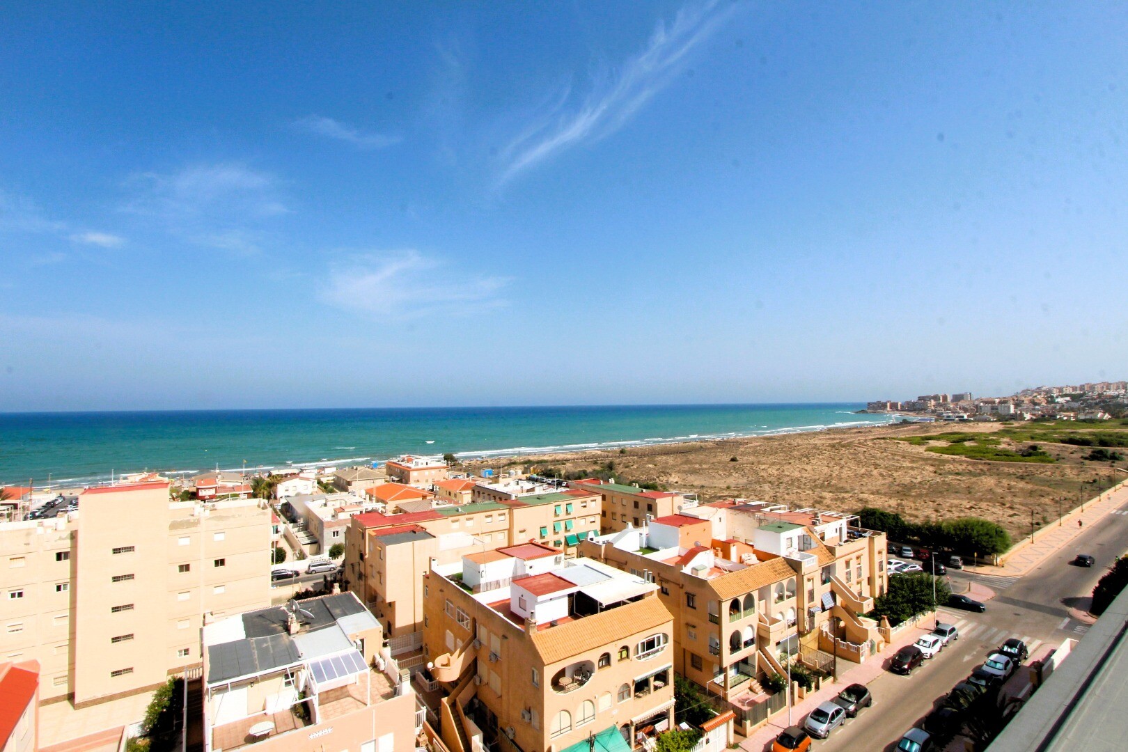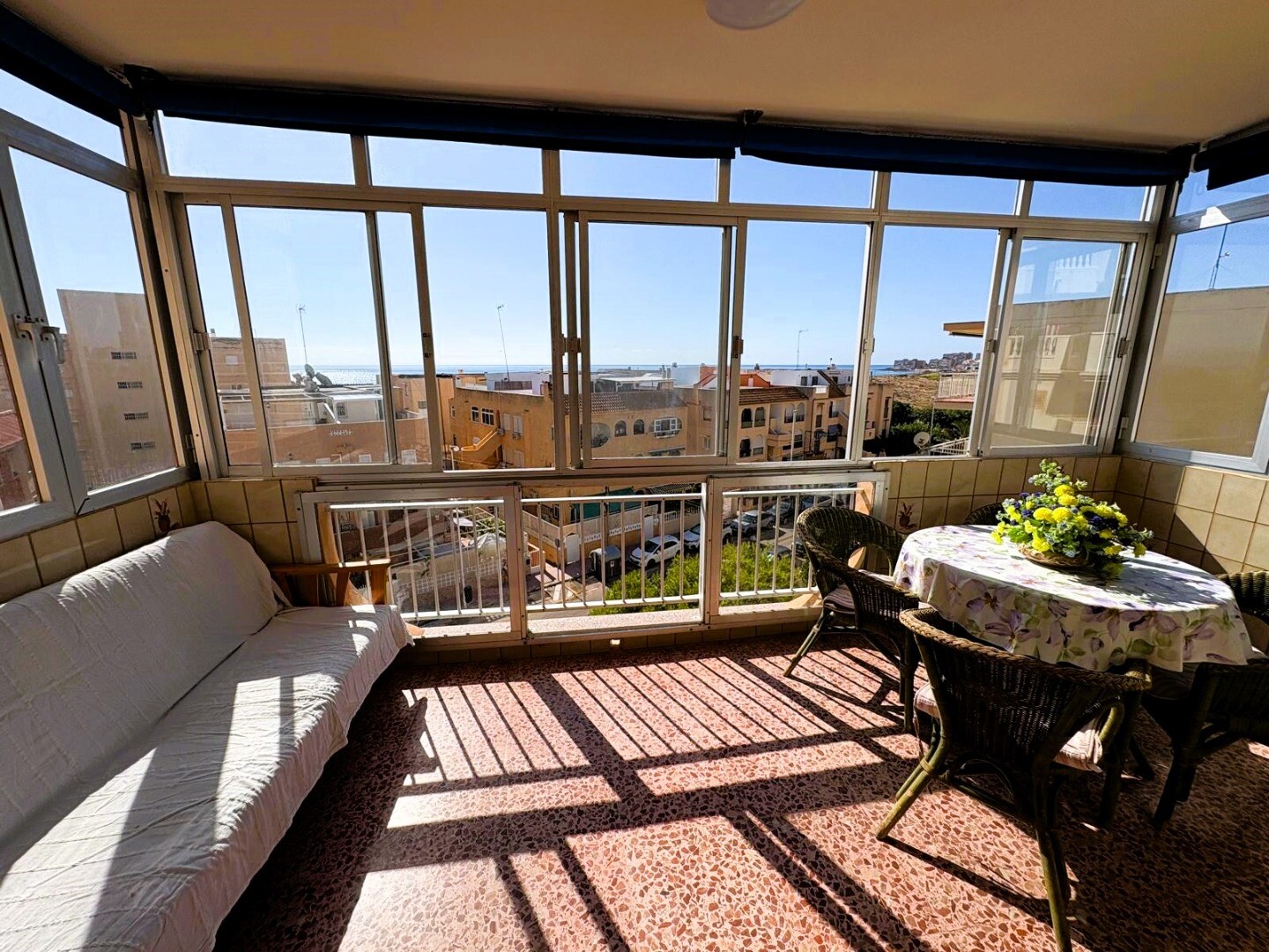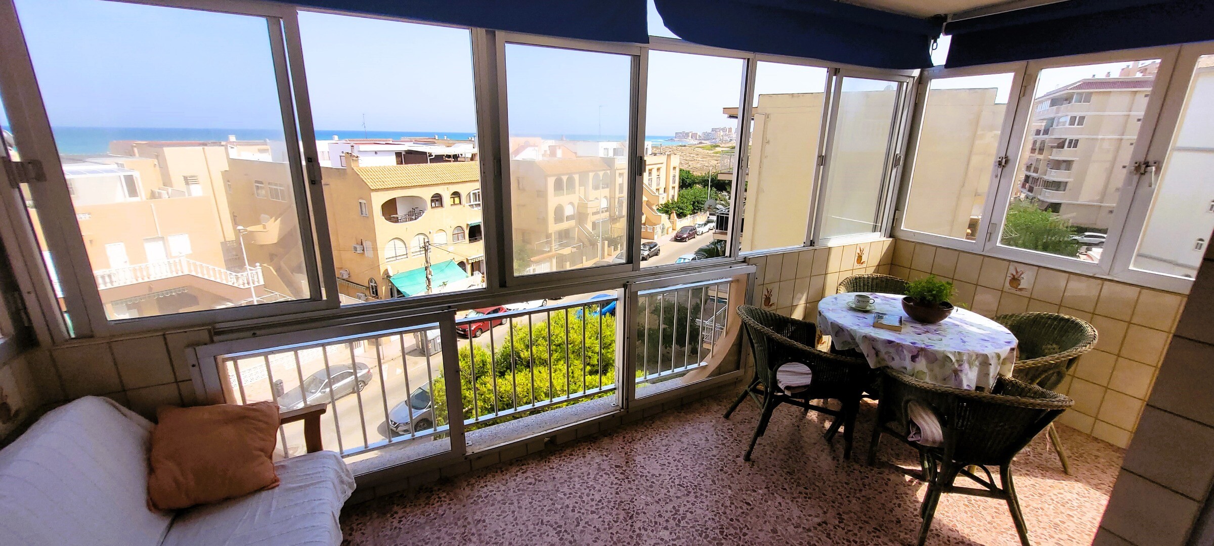 Kan du tänka dig att vakna varje morgon med havsbrisen och njuta av din kaffe på en rymlig terrass med fri utsikt över havet? Vi erbjuder dig denna fastighet belägen i La Mata, ett av de mest eftertraktade områdena i Torrevieja, känt för sina fina sandstränder, sin lugna atmosfär och alla bekvämligheter inom räckhåll. Lägenheten har 2 dubbelrum, 1 ...badrum, separat kök med tvättstuga och vardagsrum med utgång till en inglasad terrass med utsikt över havet och Parque del Molino. Lägenheten har sydöstlig orientering, perfekt för att koppla av eller njuta av solnedgången. Byggnaden har hiss, parkering och gemensamt förråd. Dessutom har du från terrassen på översta våningen en spektakulär panoramautsikt över havet och omgivningarna. Allt detta bara 250 meter från Playa de La Mata, restauranger, stormarknader, kollektivtrafik och grönområden. Fastigheten är idealisk som permanentbostad, semesterbostad eller investering. Kontakta oss för mer information och för att boka en visning.