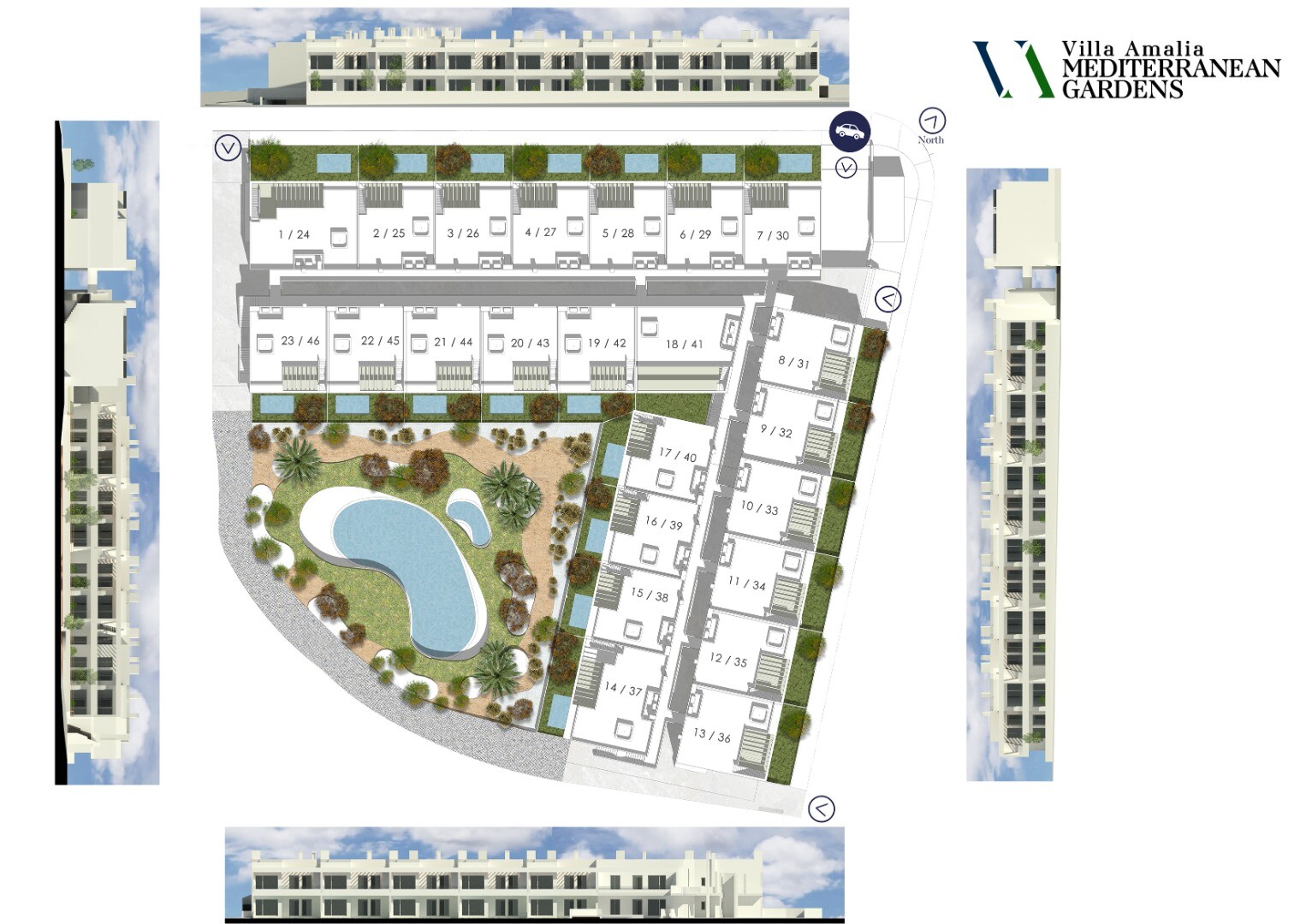 Rymliga lägenheter med trädgård på bottenvåningen och taksolarium på första våningen. Alla lägenheter har fullt fungerande A/C för varm och kall luft, badrum med installerade duschväggar och golvvärme och alla har en underjordisk parkeringsplats. Som tillval kan parkeringsplatserna förses med laddstationer för elbilar. Inom gångavstånd till alla ty...per av bekvämligheter. Supermarket Aldi ligger bara 300 meter bort. Marinan i Torrevieja ligger bara 3,5 km från detta boende där du kan njuta av många aktiviteter som att hyra en motorbåt, vattenskoter, sportfiske, barer och restaurang vid hamnen vars Niki Beach Club är den mest kända.