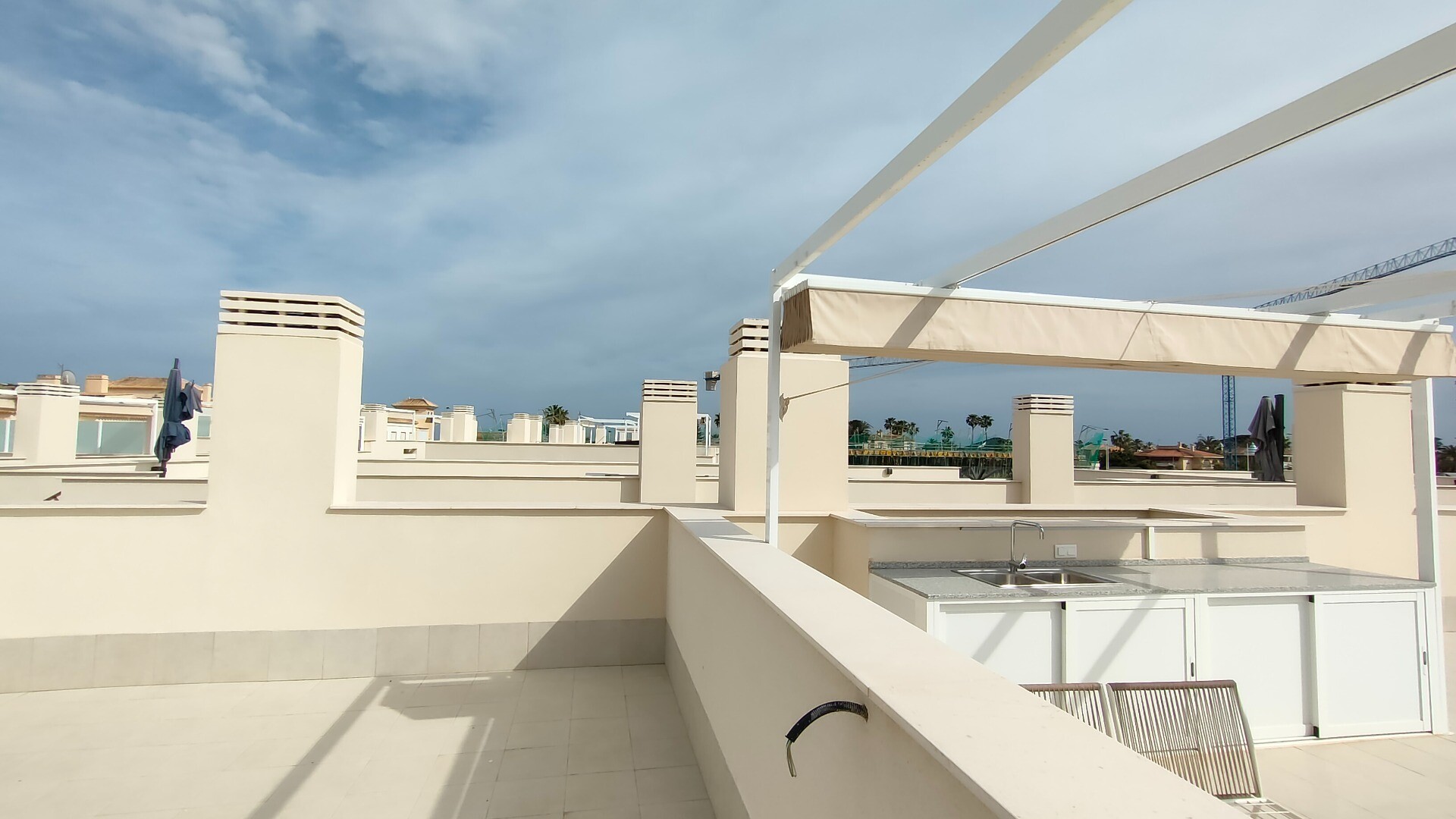 Lägenheten har en boyta på 68m2 och en terrass på 20m2 och ett solarium på 72m2 med möjlighet att installera en jacuzzi. Lägenheten har fullt fungerande luftkonditionering för varm och kall luft, badrum med installerade duschväggar och golvvärme och har en underjordisk parkeringsplats. Det är gångavstånd till alla typer av bekvämligheter. Supermark...et Aldi ligger bara 300 meter bort. Torreviejas yachthamn ligger bara 3,5 km från detta boende, där det finns många aktiviteter som att hyra en motorbåt, vattenskoter, sportfiske, barer och restauranger i hamnen där Niki Beach Club är den mest kända. Alicantes flygplats kan nås på cirka 45 minuter via AP-7 och N332.