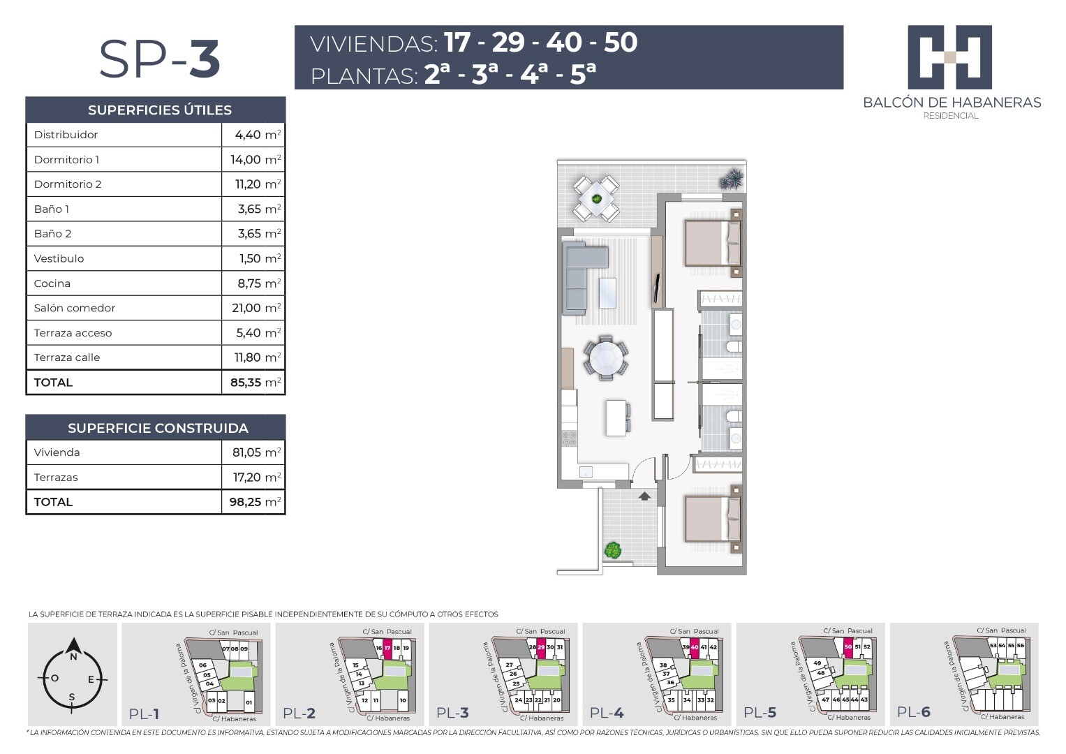 Balcón de Habaneras är ett exklusivt komplex beläget på huvudgatan "Habaneras", i Torrevieja. Med ett privilegierat läge 300 meters promenad från några av de bästa stränderna och nära till alla bekvämligheter: restauranger, kaféer, stormarknader och Habaneras köpcentrum. Endast 5 minuters promenad till busstationen och centrum av Torrevieja. Detta ...är ett unikt och oslagbart läge som gör det till en av de bästa platserna att bo eller investera med en framtidsvision, eftersom Habaneras är en av huvudvägarna som förbinder Torreviejas stadskärna med stränderna. Denna aveny kommer att bli fotgängare, vilket innebär att du kan gå längs hela Torreviejas kust, andas frisk luft. Av alla dessa skäl är Balcón de Habaneras-komplexet en idealisk plats att bo året runt, njuta av lugnet på stränderna och samtidigt alla bekvämligheter som den stora staden Torrevieja erbjuder. Balcón de Habaneras består av 56 lägenheter med 1, 2 och 3 sovrum med 2 badrum och ett brett utbud av olika typer av bostäder, duplex, takvåningar med solarier med stora terrasser och imponerande panoramautsikt över havet eller en privat terrass i fallet med marken mark med direkt tillgång till de gemensamma ytorna. Alicantes flygplats är tillgänglig med kollektivtrafik med direktanslutning från busstationen till flygplatsen. Med bil på cirka 45 minuter.