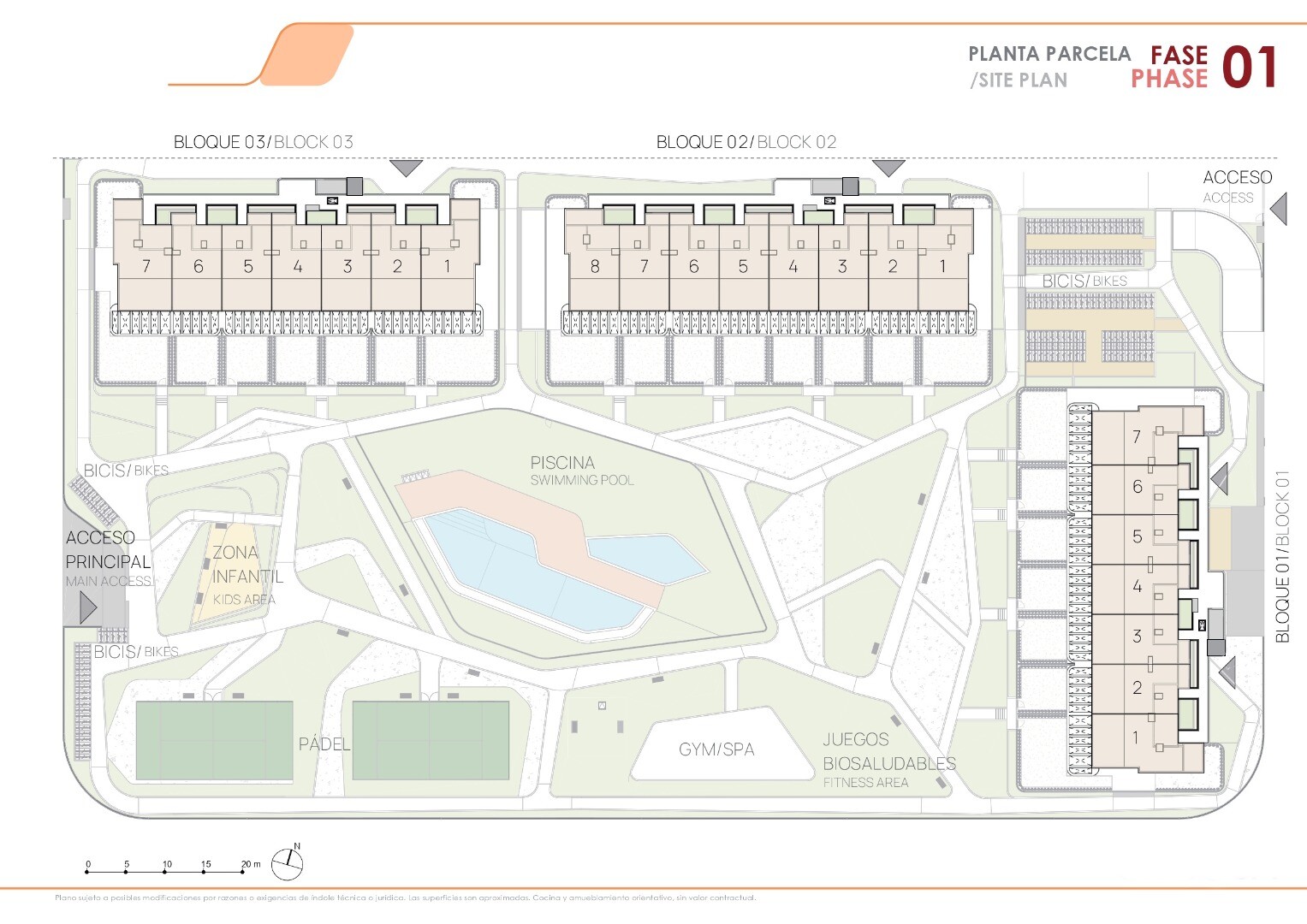 Utveckling av ett bostadskomplex med 172 bostäder i La Hoya - Torrevieja, fördelat på 6 kvarter. Bostäderna har 2 eller 3 sovrum, alla med 2 badrum, och vetter mot söder eller väster. Blocken är utformade med utsikt över de stora gemensamma utrymmena. Bostäderna på bottenvåningen har privata trädgårdar, lägenheterna på mellanvåningen har rymliga te...