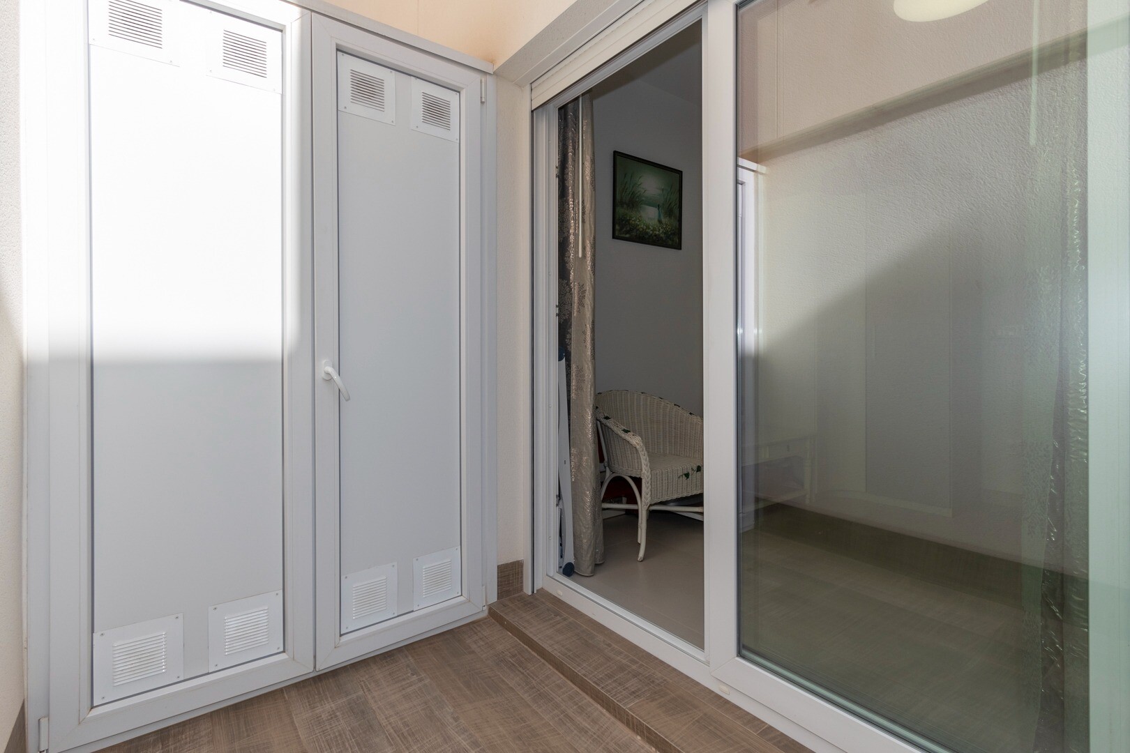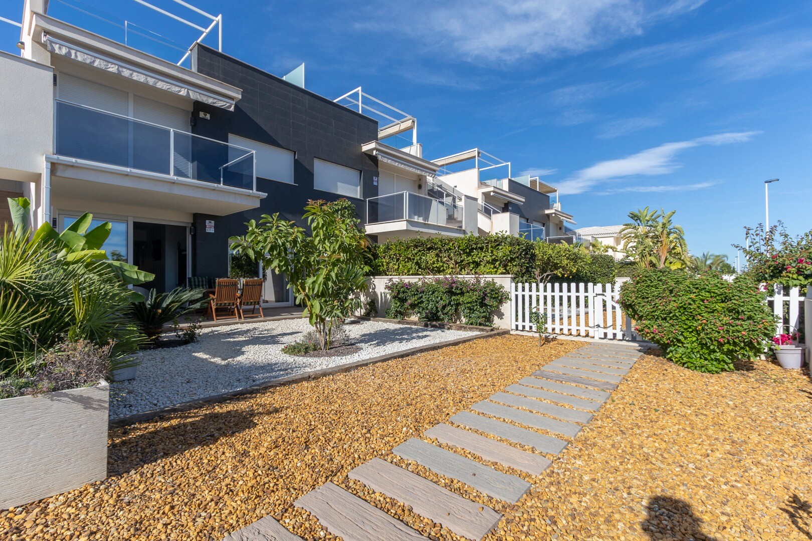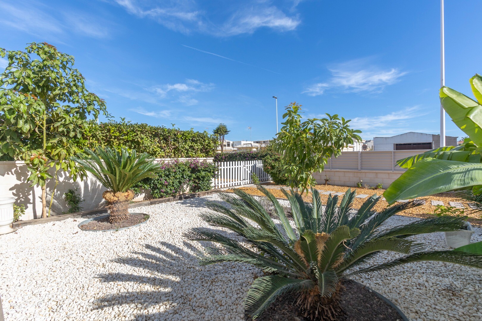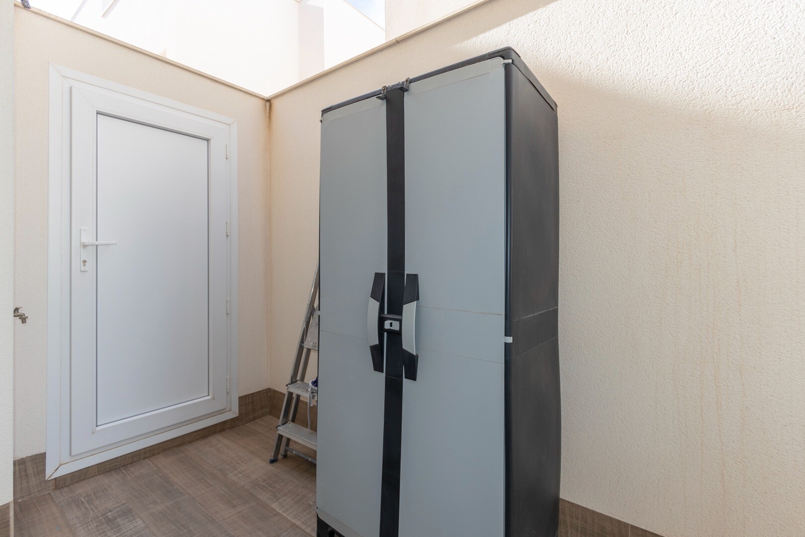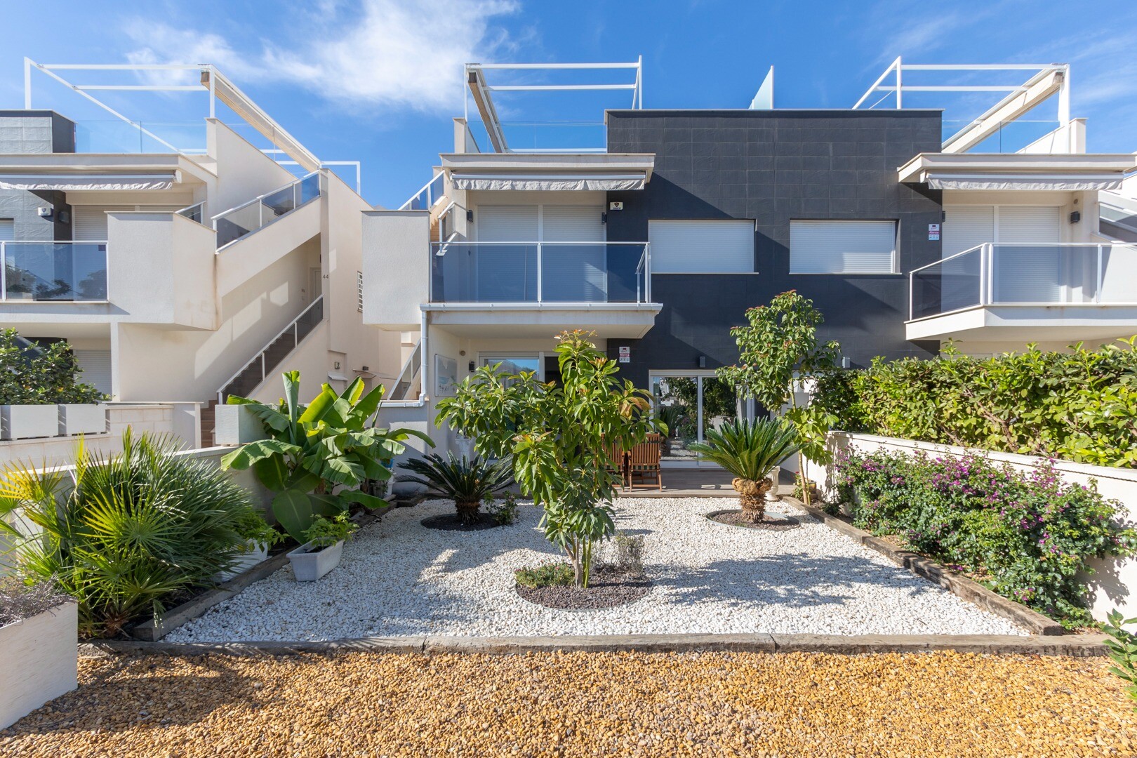Lägenheten har inbyggd luftkonditionering i alla rum och golvvärme. Bakom lägenheten finns även en stor uteplats på 10m2, detta är ett utrymme på baksidan som kan användas som förvaring och ger naturligt ljus. Framsidan består av en stor terrass och en välskött trädgård med olika växter och ett bananträd.